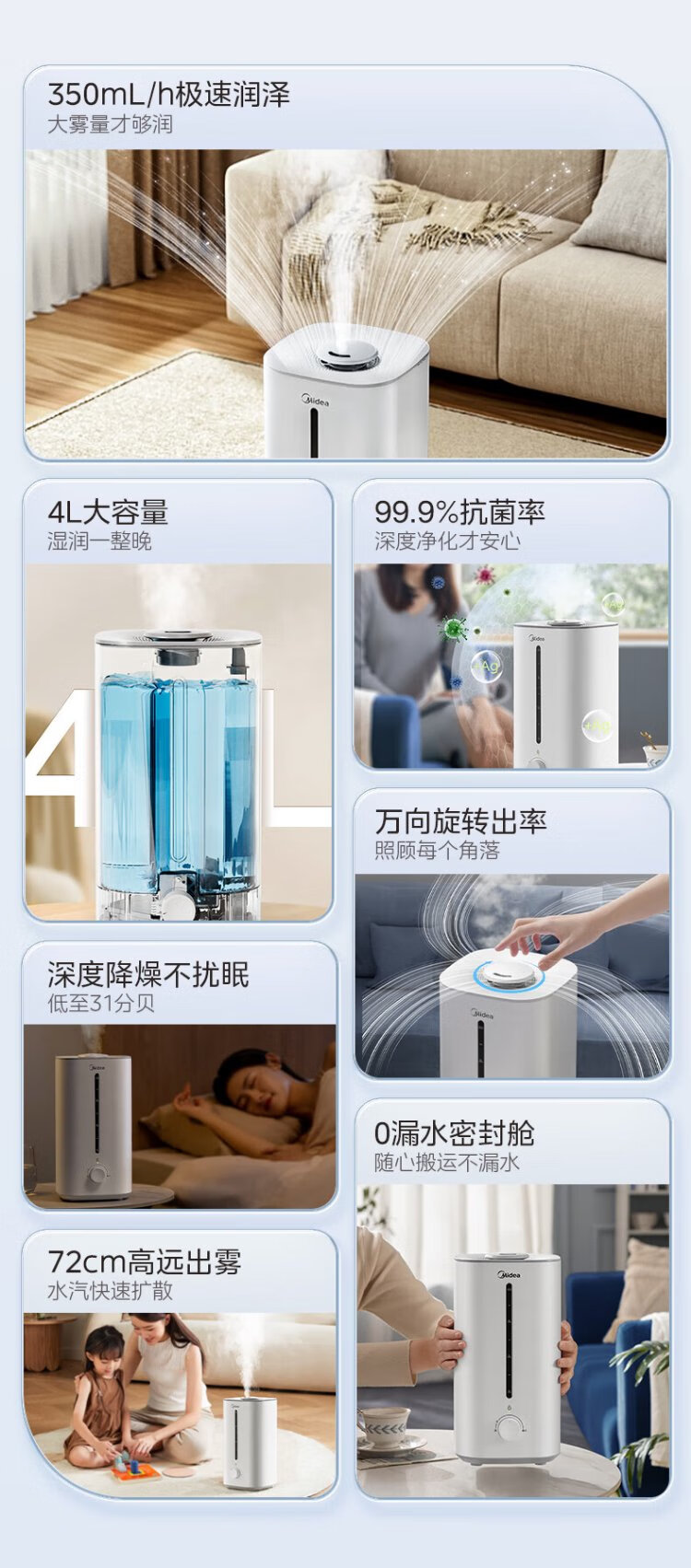 Midea humidifier air purifier integrated rhinitis home bedroom living room pregnant women infants and young children silent sterilization spray desktop small industrial mini atomizer SC-3G40S