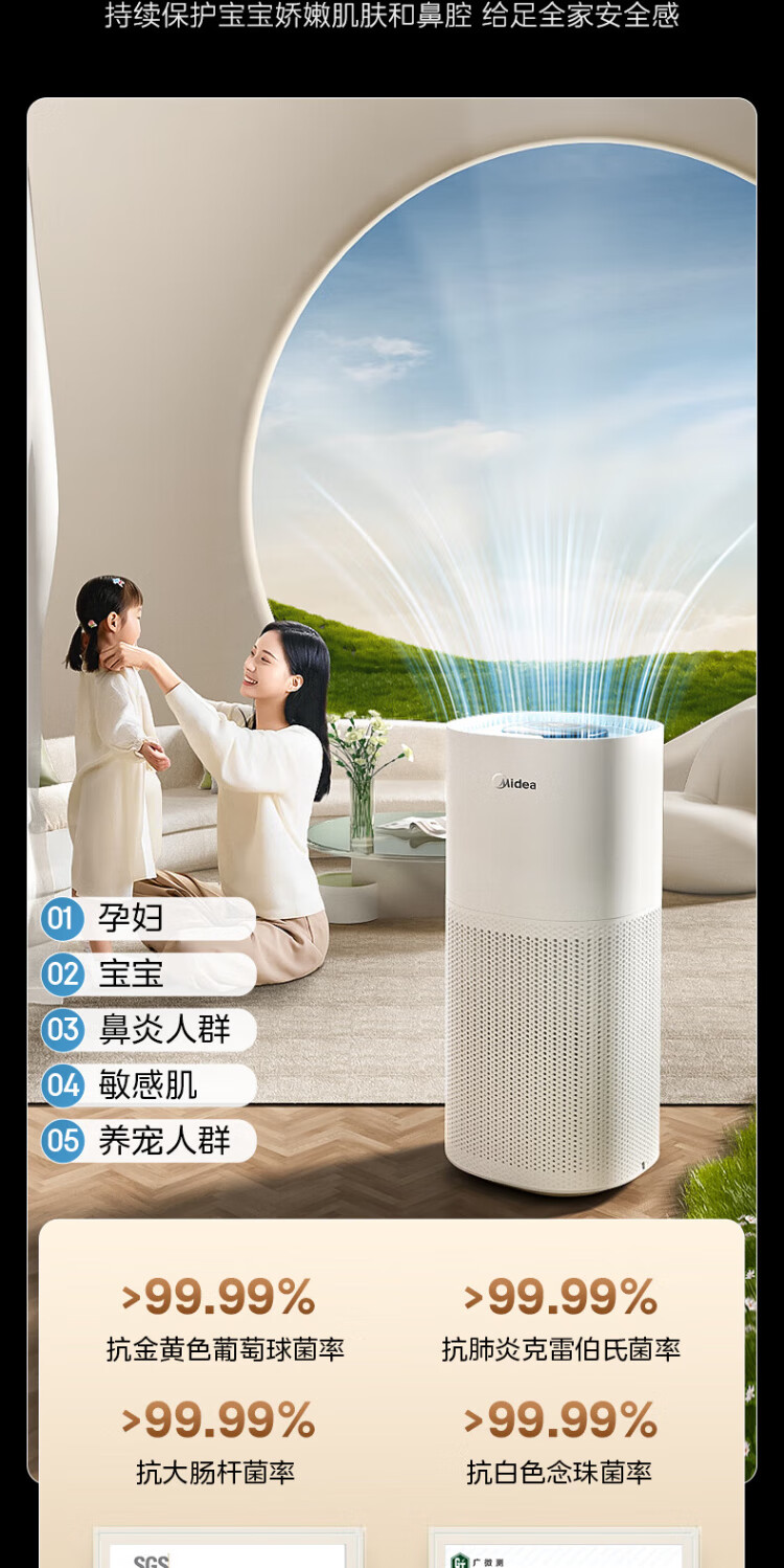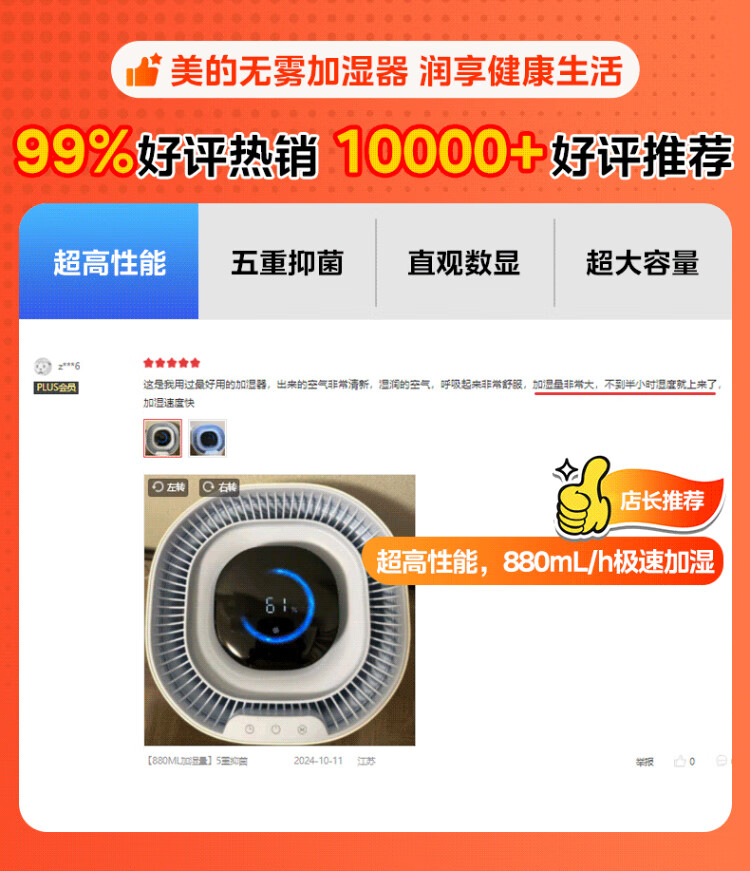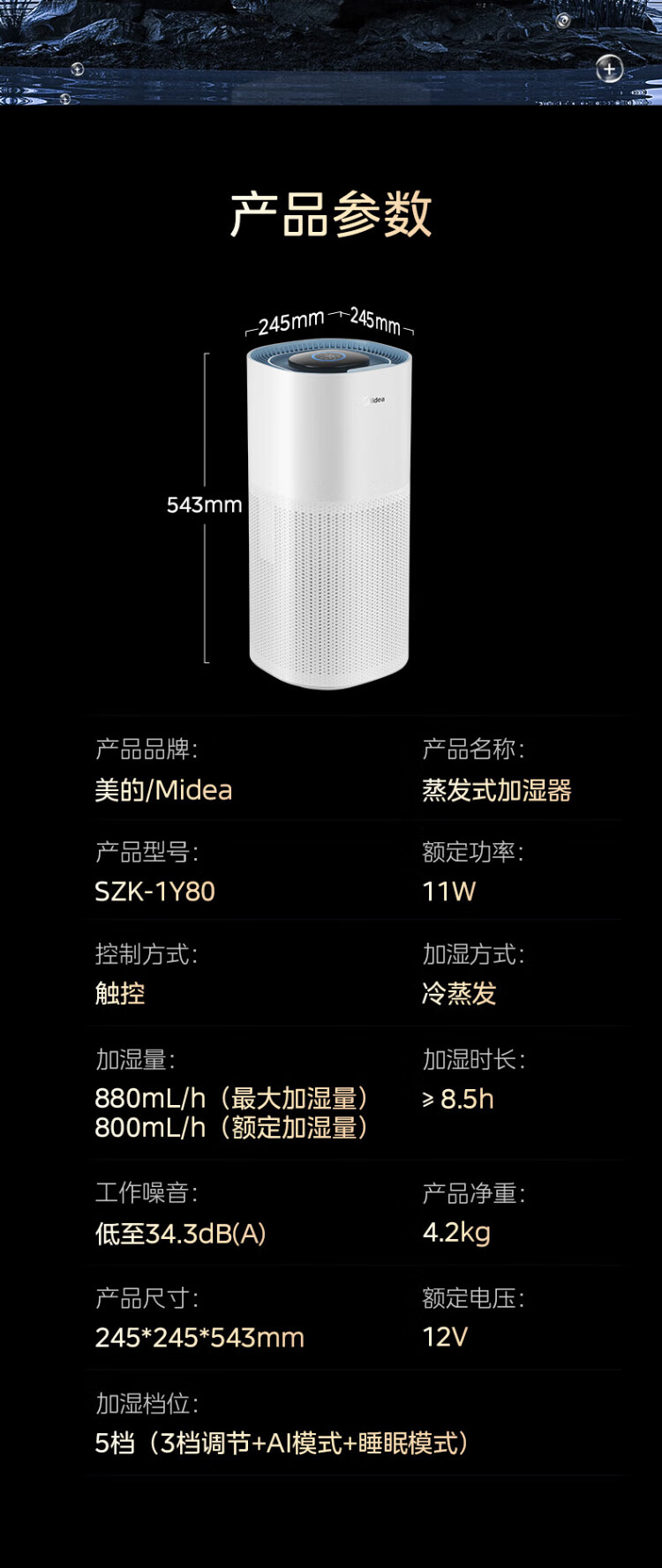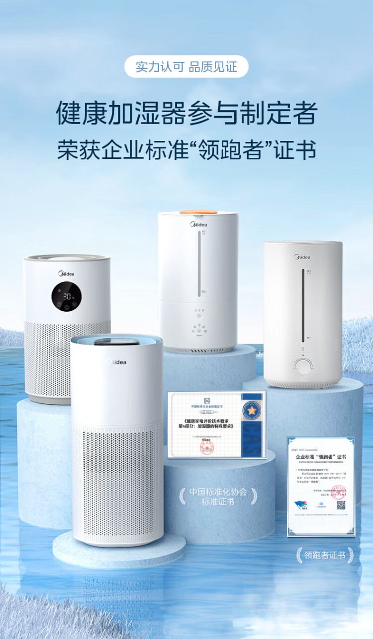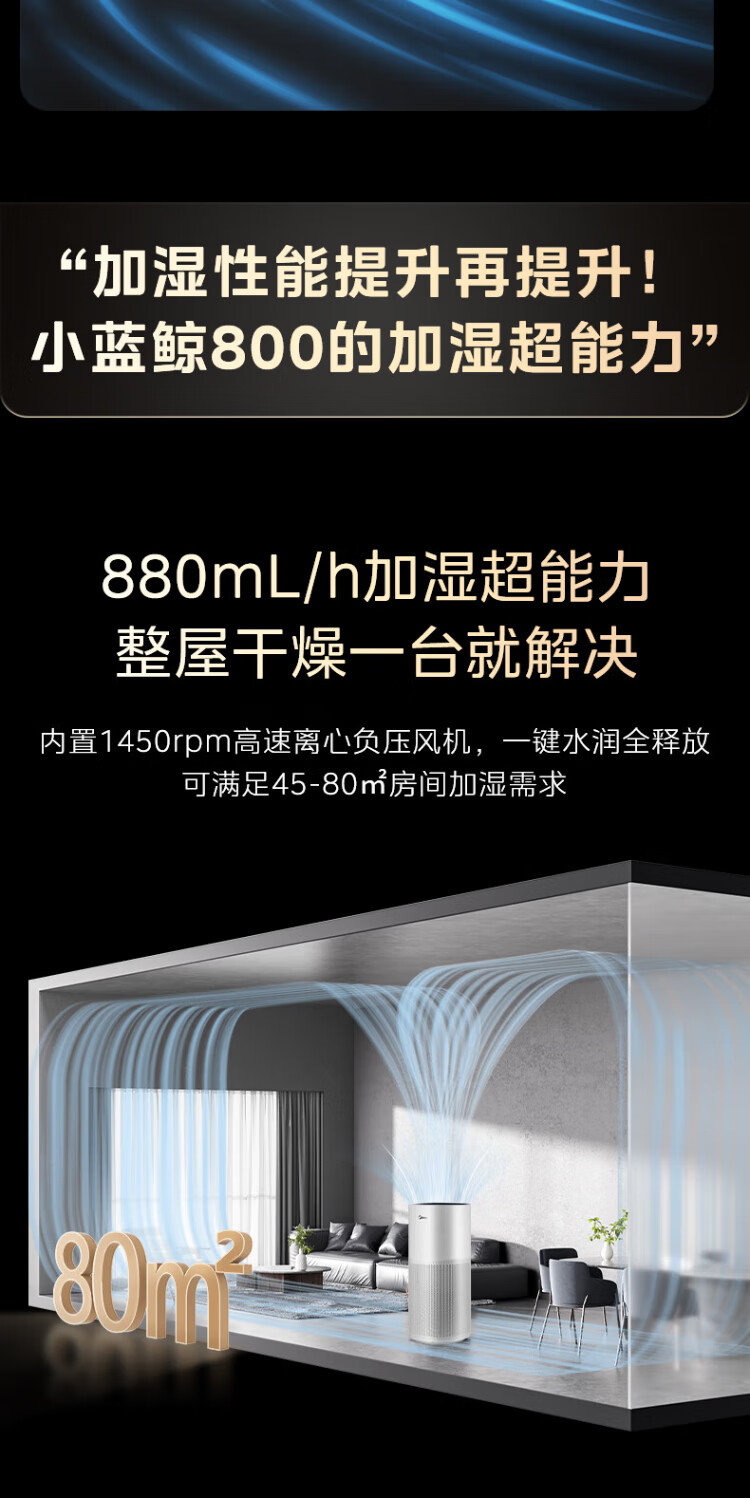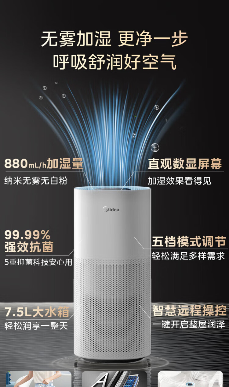 Midea Little Blue Whale 800 Air Fog-free Humidifier Purifier Pregnant Women and Infants Home Bedroom Heating and Sterilization Small Industrial Atomizer Gift National Subsidy SZK-1Y80