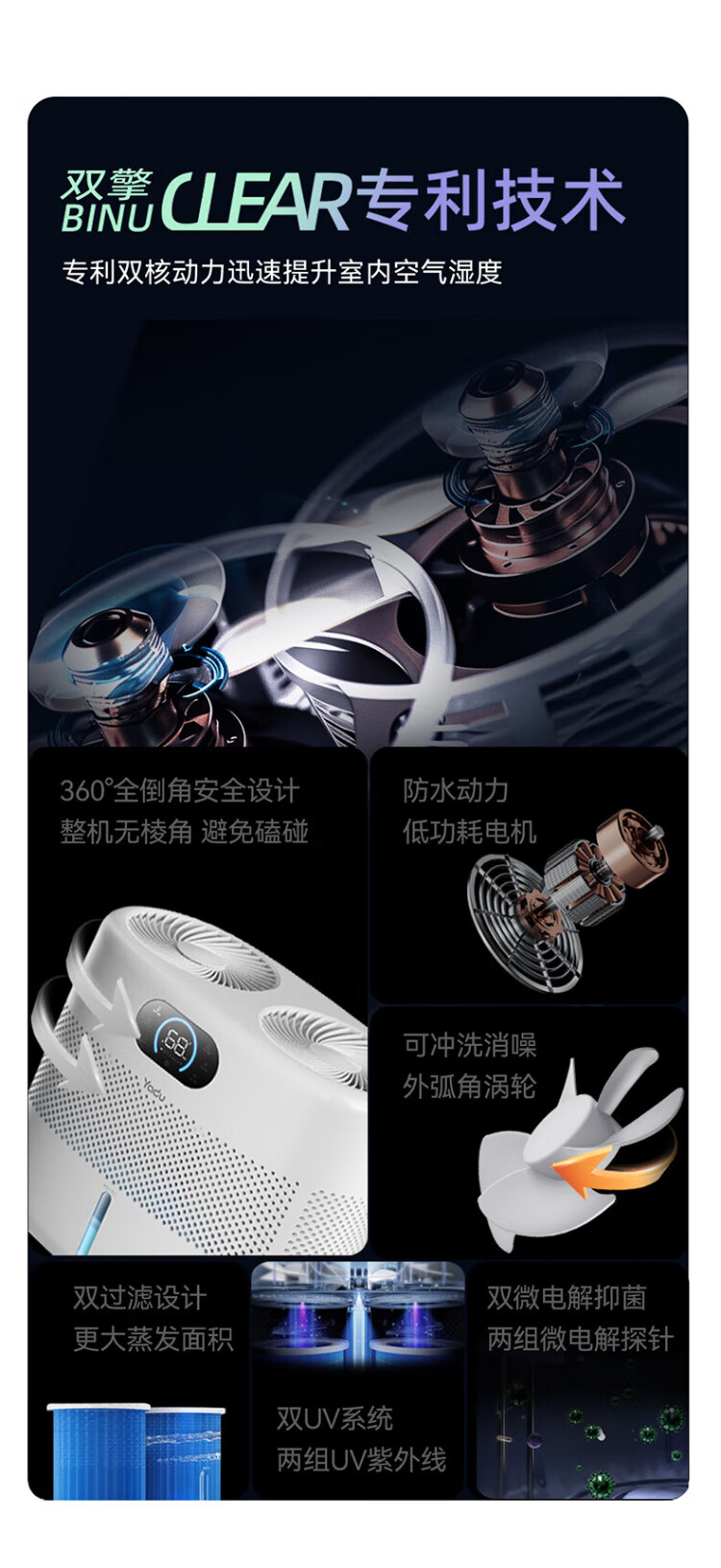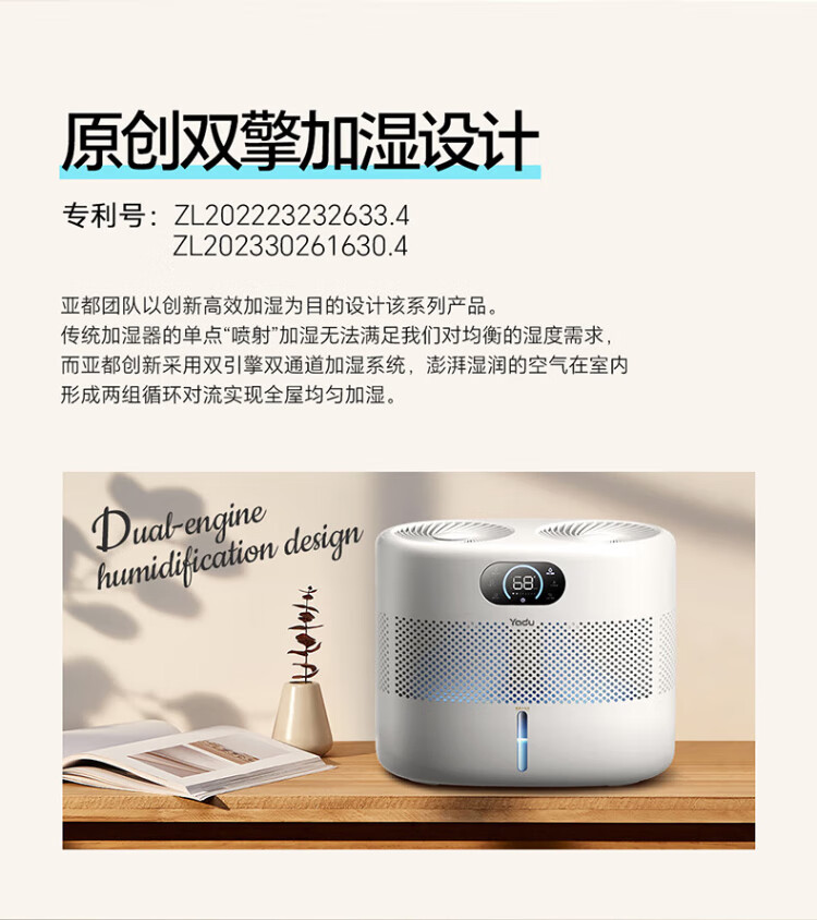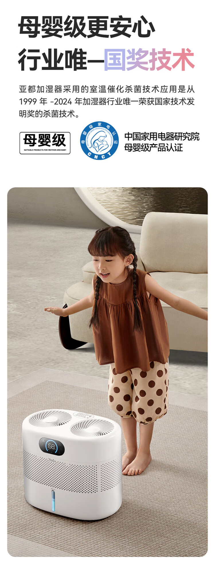 亚都(YADU)双擎无雾加湿器卧室母婴家用办公室蒸发式800ml/h空气净化大容量上加水空调伴侣SZ750-TJK800(Hi)