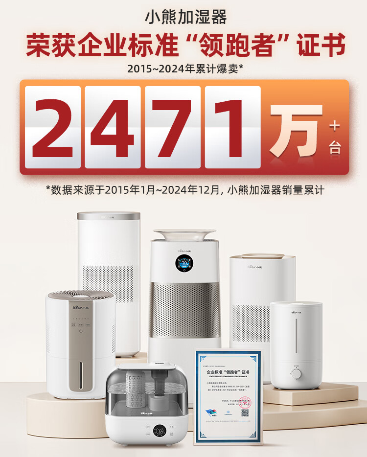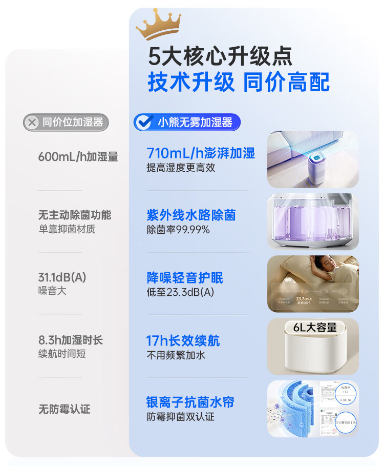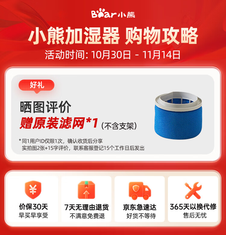 小熊(Bear)【紫外线除菌】无雾加湿器 母婴专用卧室空气净化空调加湿器 家用落地式大容量冷蒸发JSQ-H60L2