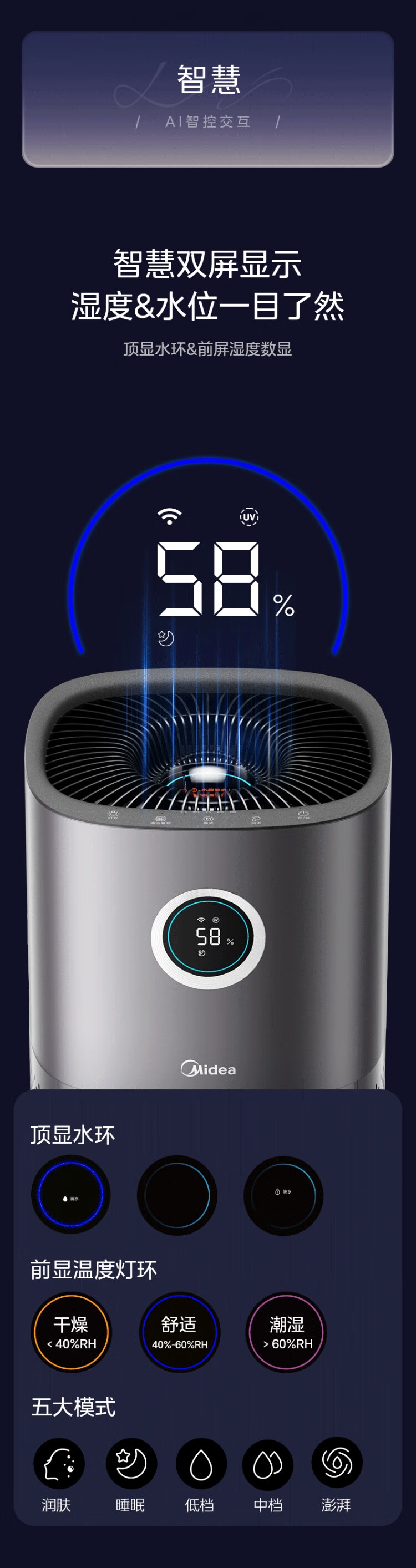 美的(Midea)无雾加湿器空气净化器一体机鼻炎家用卧室客厅小型雾化器孕妇母婴幼取暖补水礼物国家补贴SZK-U15