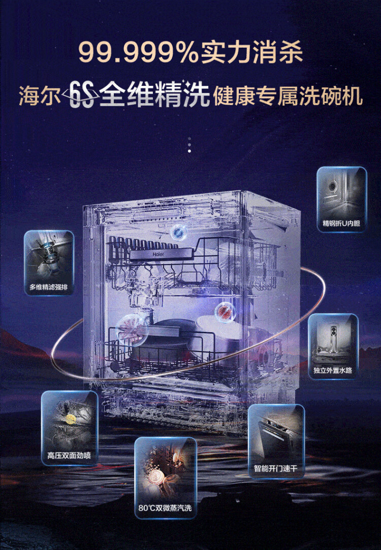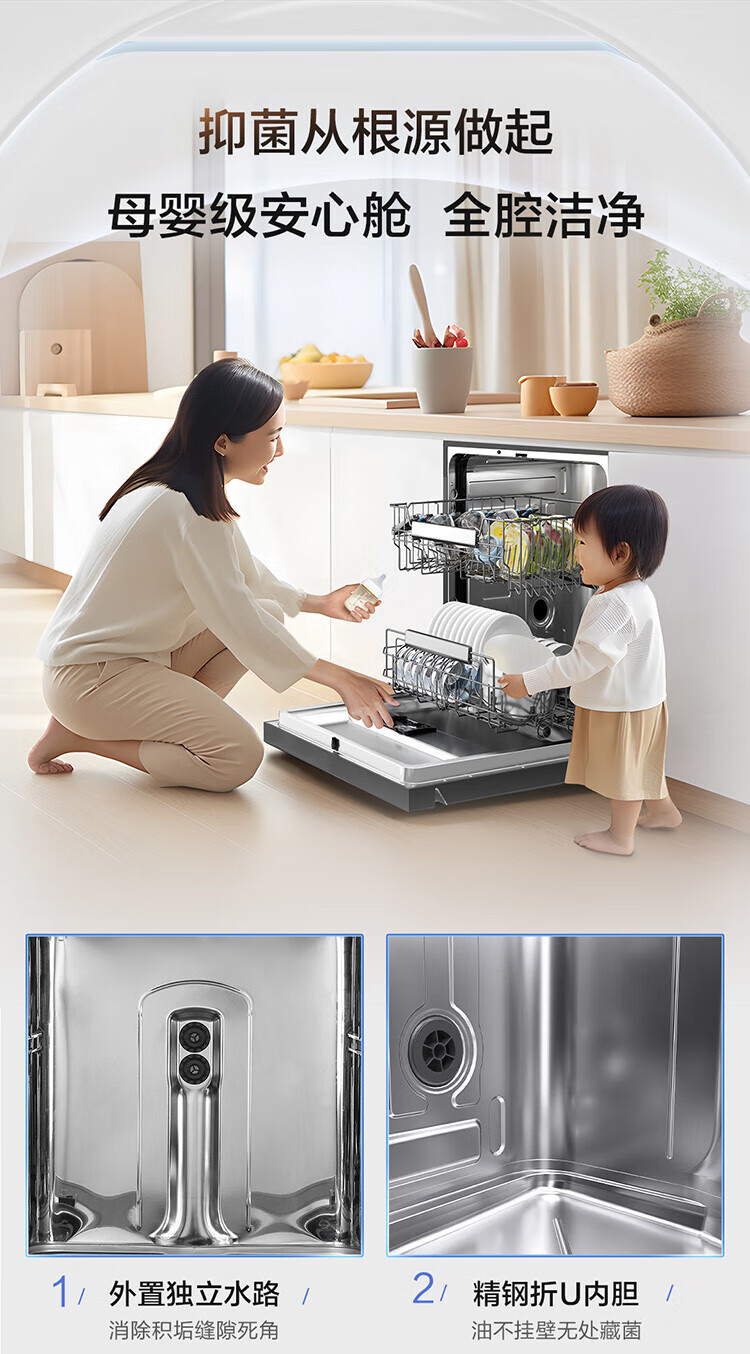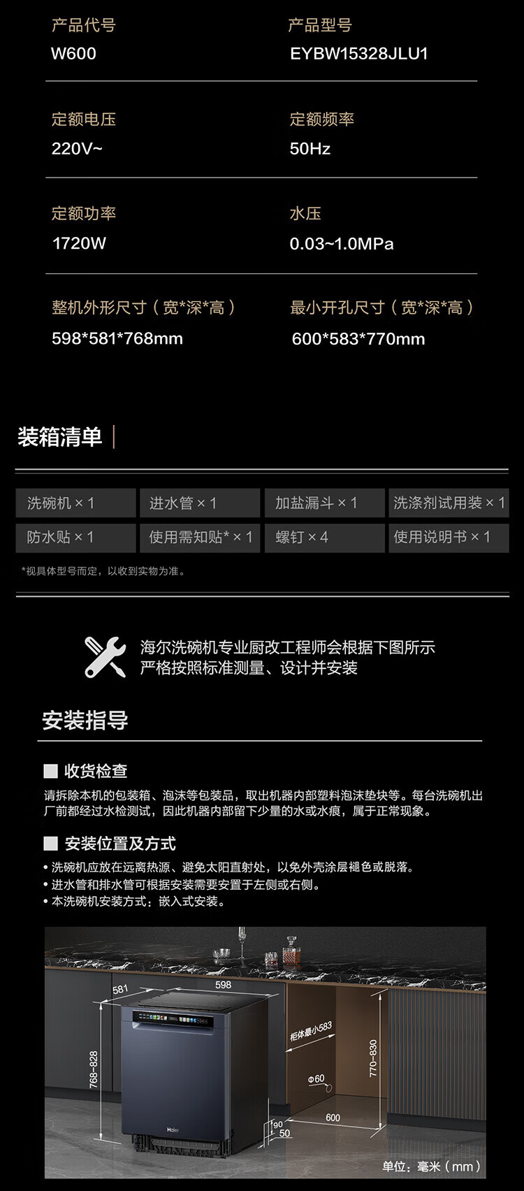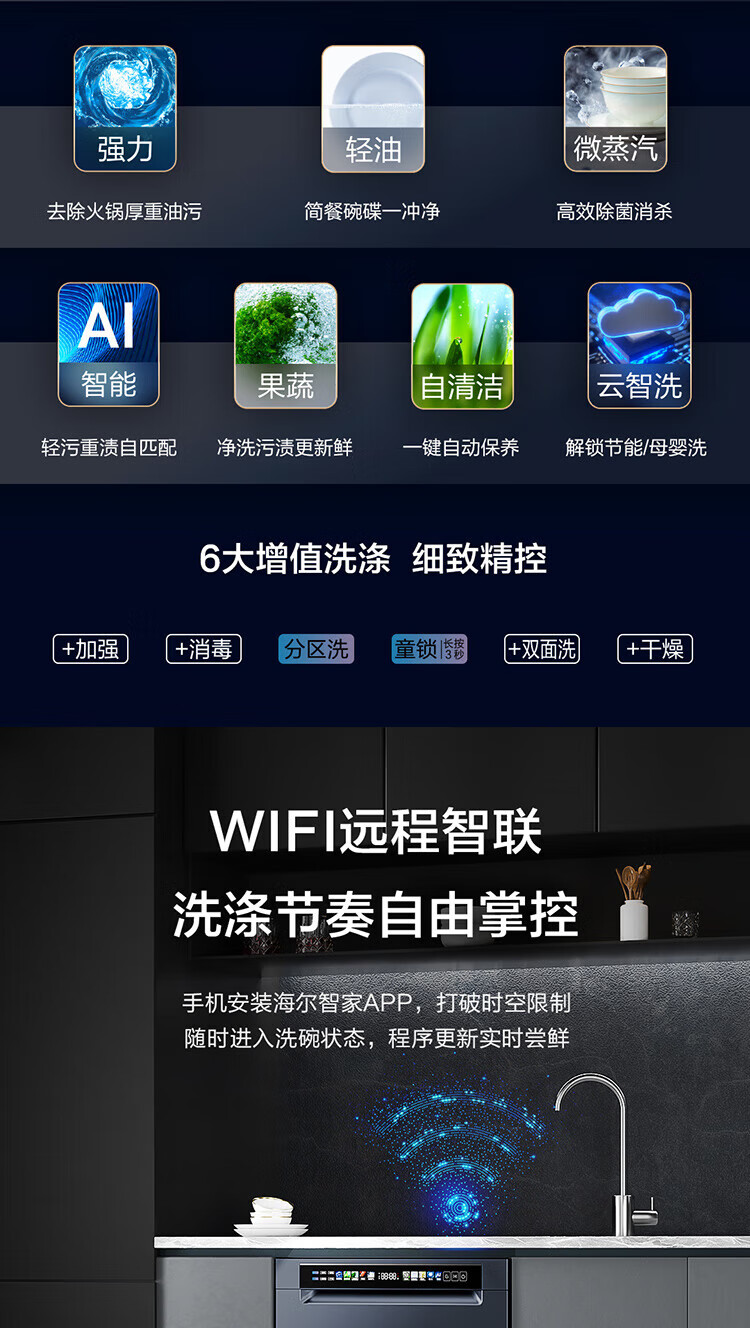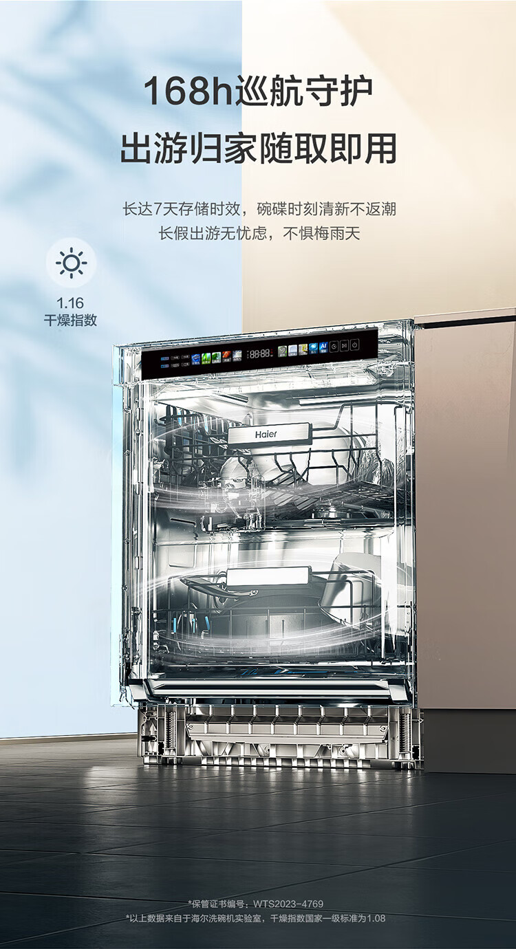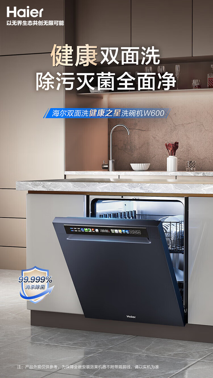 Haier Double-sided Washing W600 National Subsidy 20% Dishwasher Embedded 15 Sets of Frequency Converter Dual-Level Water Efficiency Triple Clean Intelligent Door Opening and Quick Drying EYBW15328JLU1