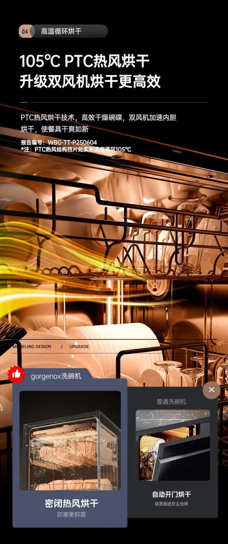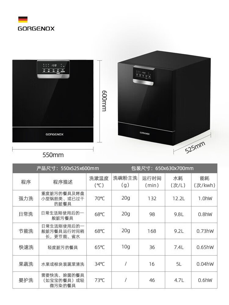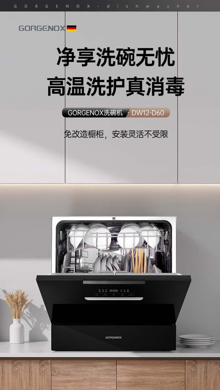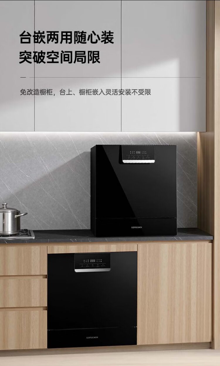 GORGENOX 12 sets of desktop embedded dual-purpose dishwasher large capacity first-class water efficiency hot air drying UV sterilization washable pot DW12-D60 black