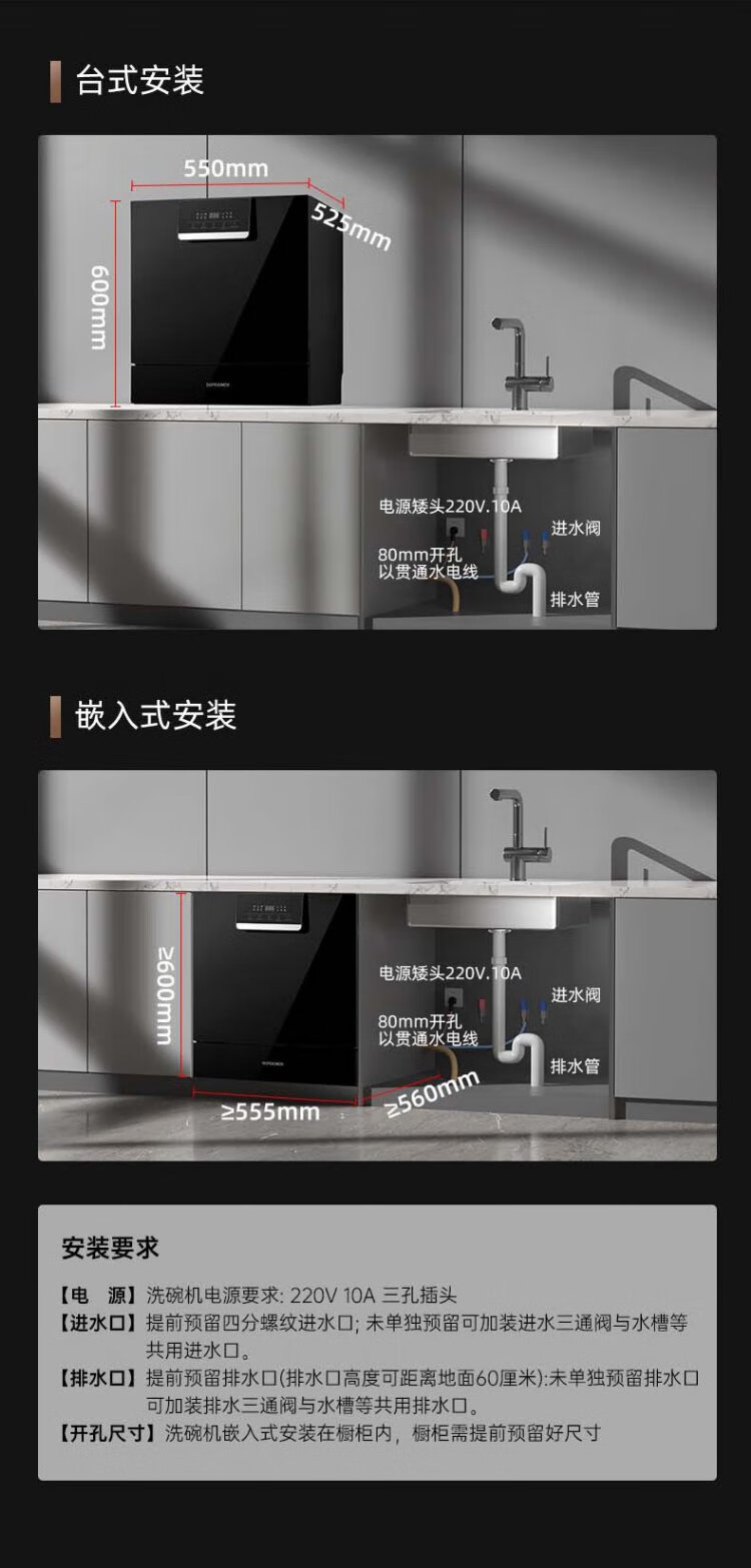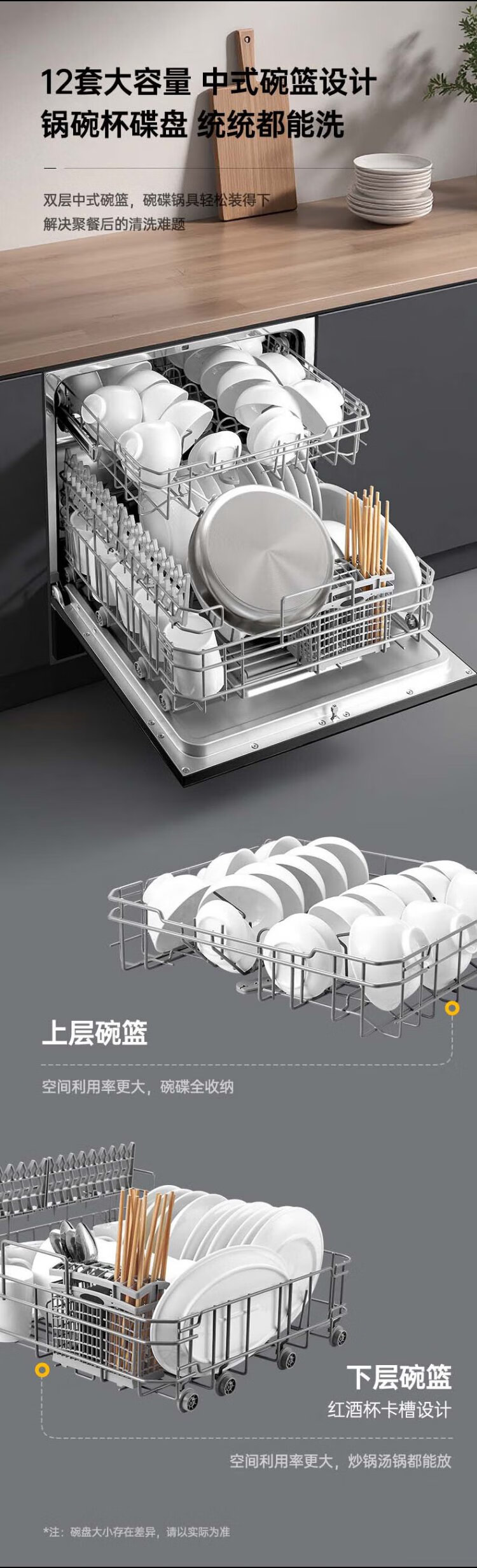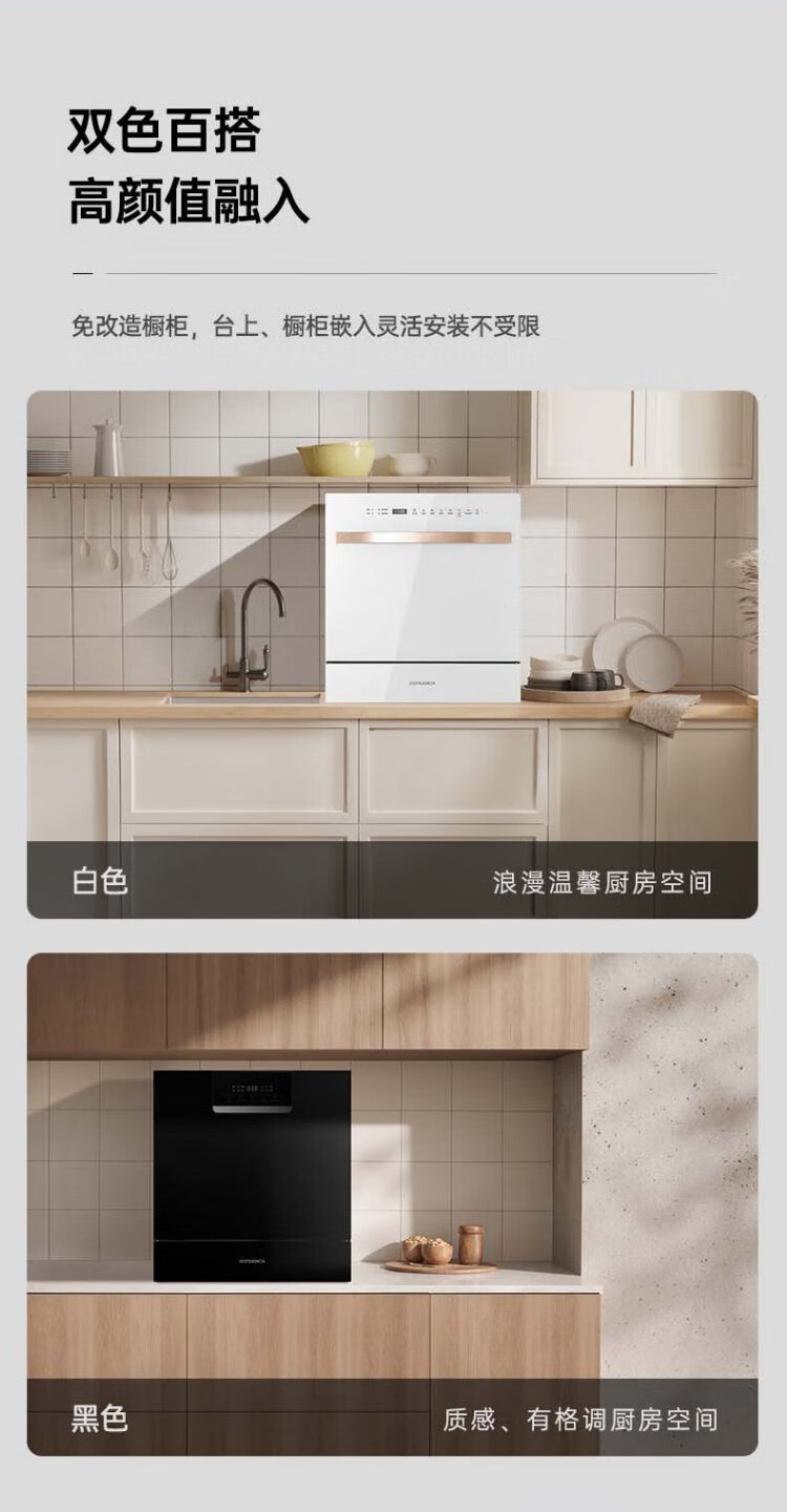 GORGENOX 12 sets of desktop embedded dual-purpose dishwasher large capacity first-class water efficiency hot air drying UV sterilization washable pot DW12-D60 black