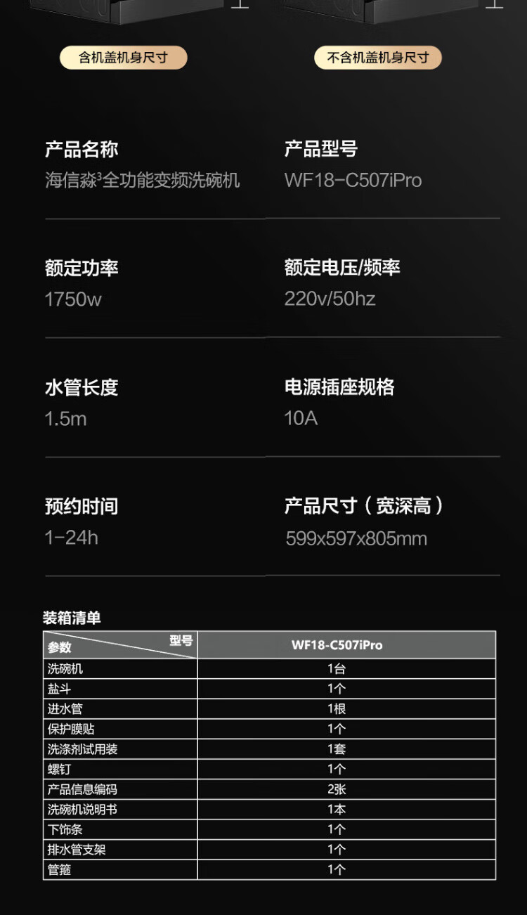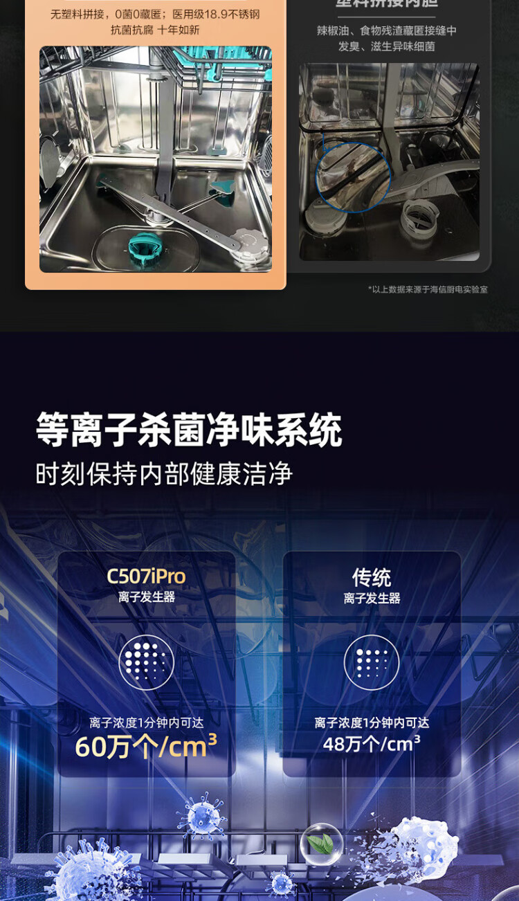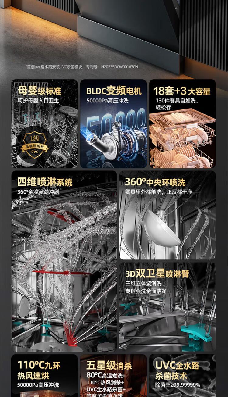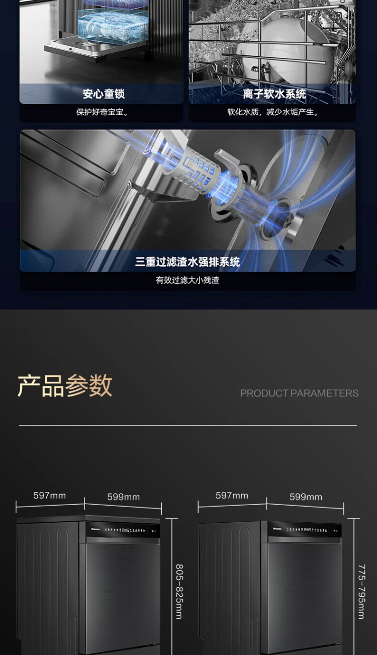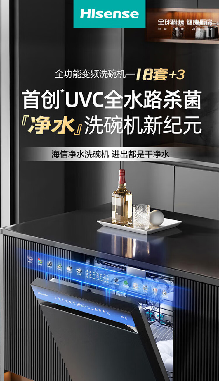 Hisense Big Mint Zero Bacteria Dishwasher Embedded 18 Sets Frequency Converter UVC Mother and Baby Five-Star Disinfection 110 Hot Air Drying First-Level Storage WF18-C507iPro National Subsidy 20%