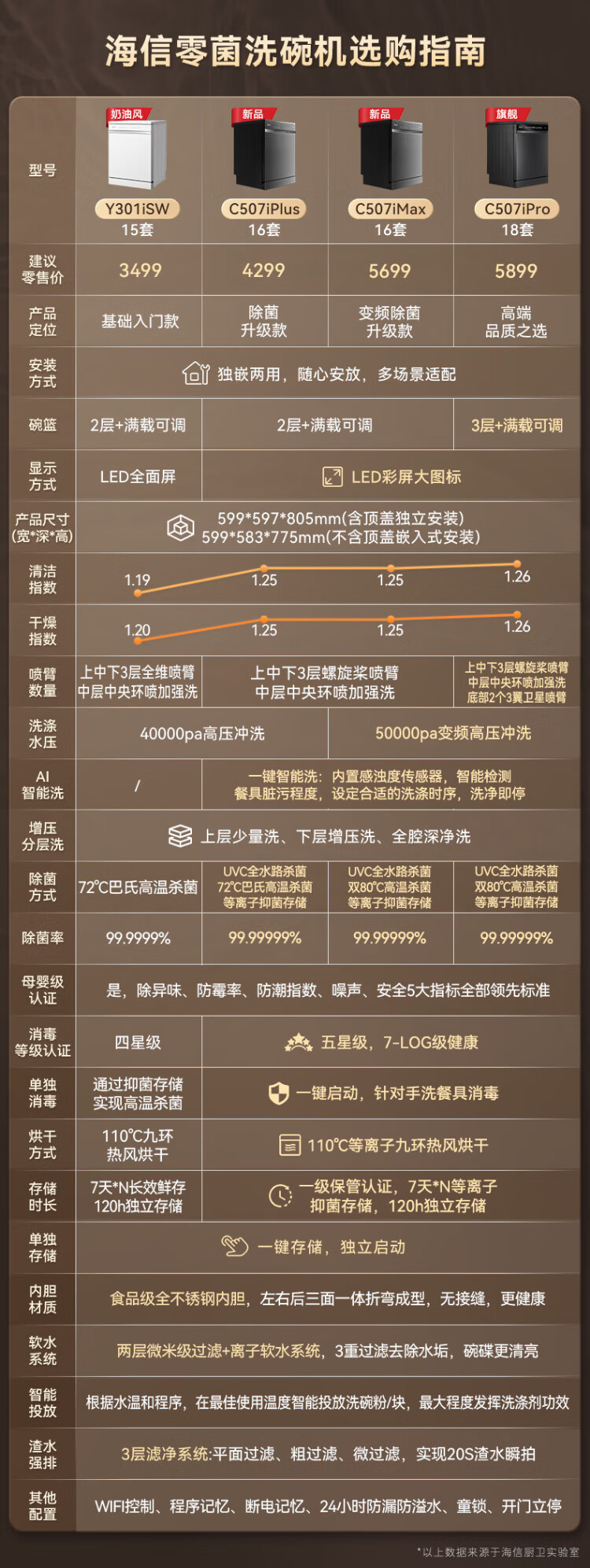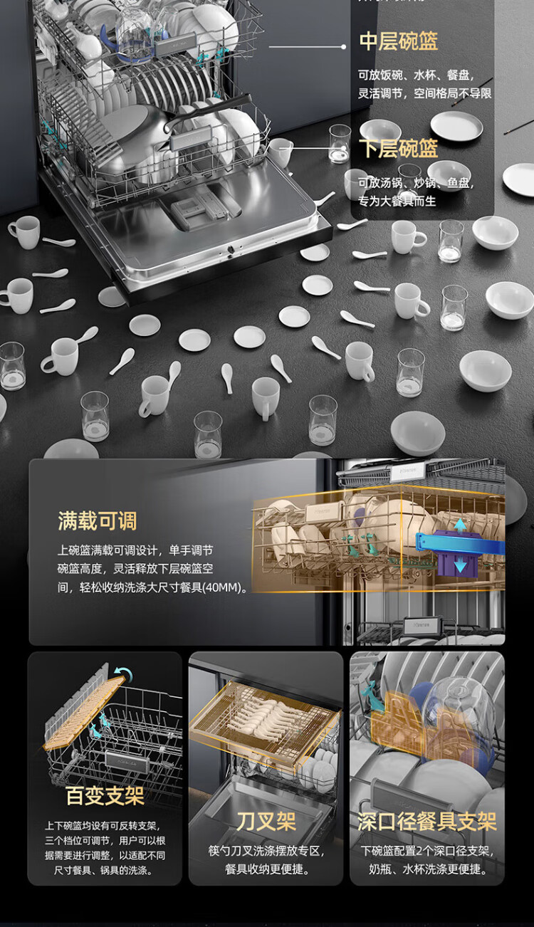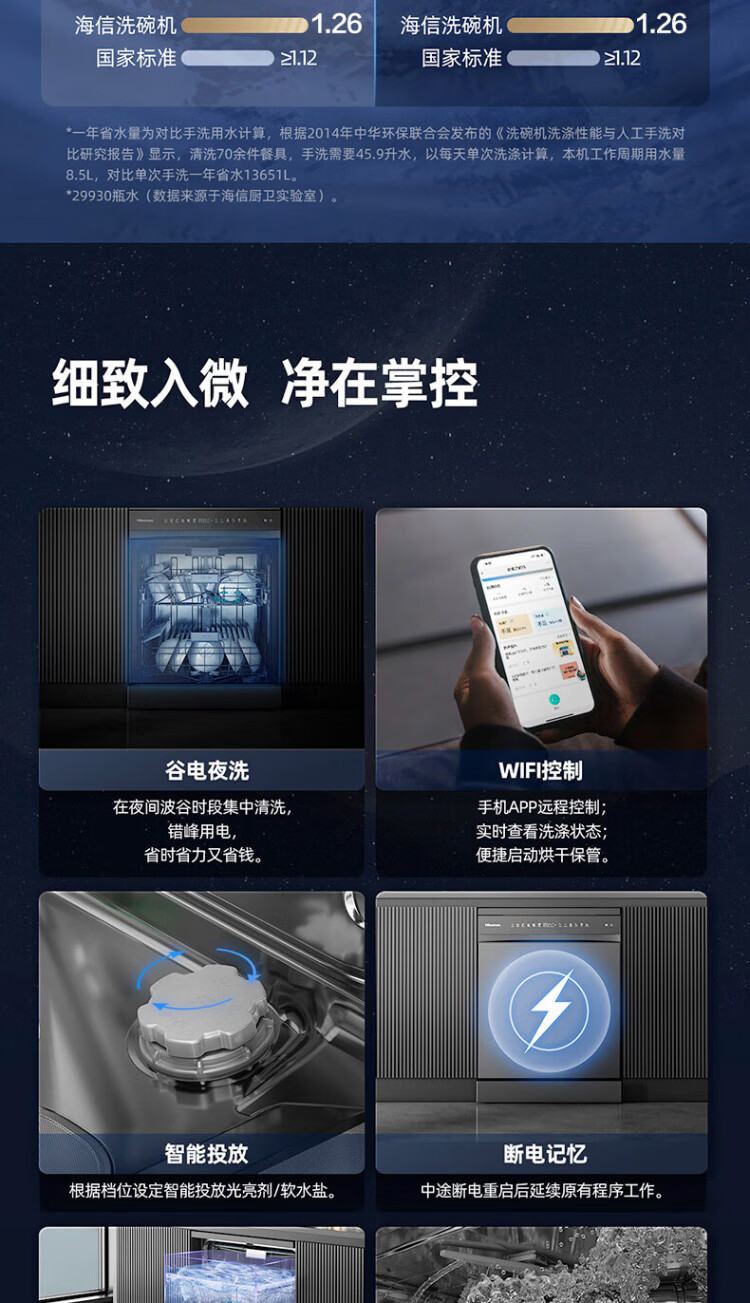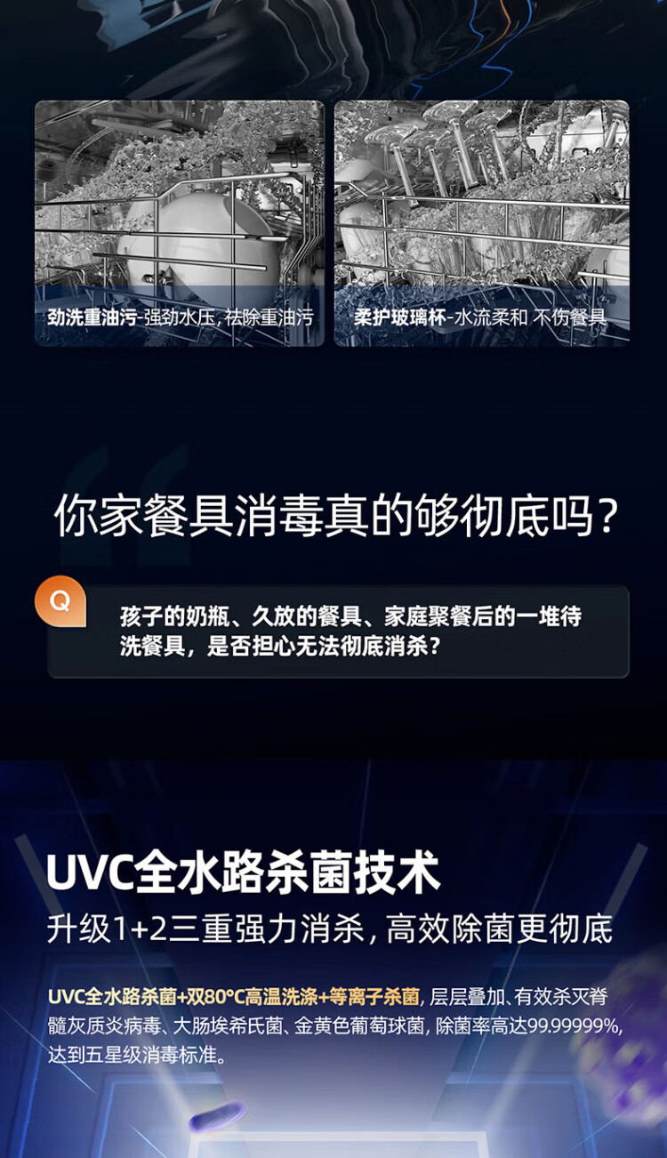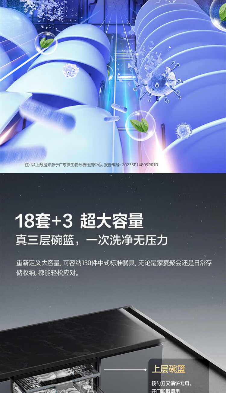 Hisense Big Mint Zero Bacteria Dishwasher Embedded 18 Sets Frequency Converter UVC Mother and Baby Five-Star Disinfection 110 Hot Air Drying First-Level Storage WF18-C507iPro National Subsidy 20%