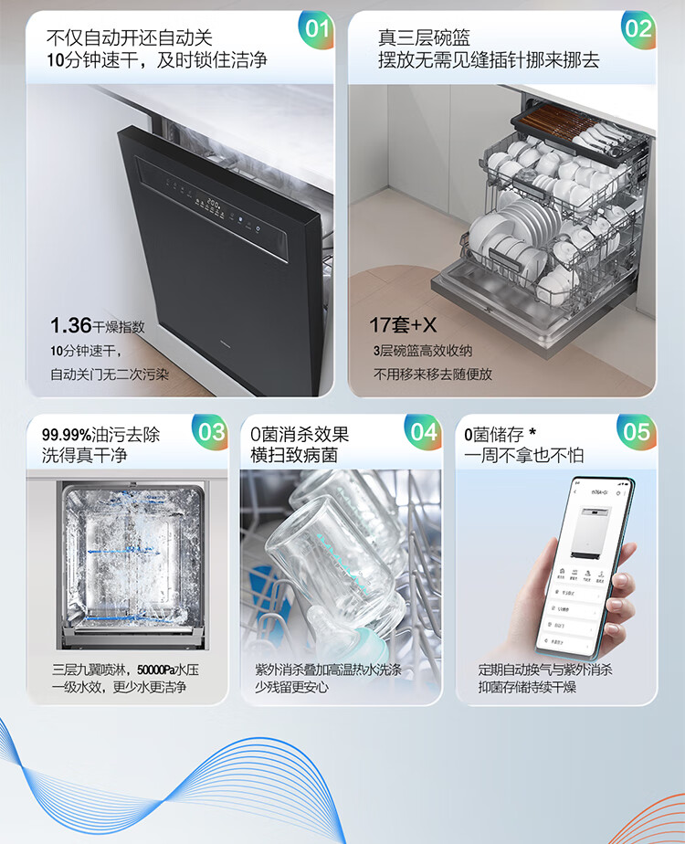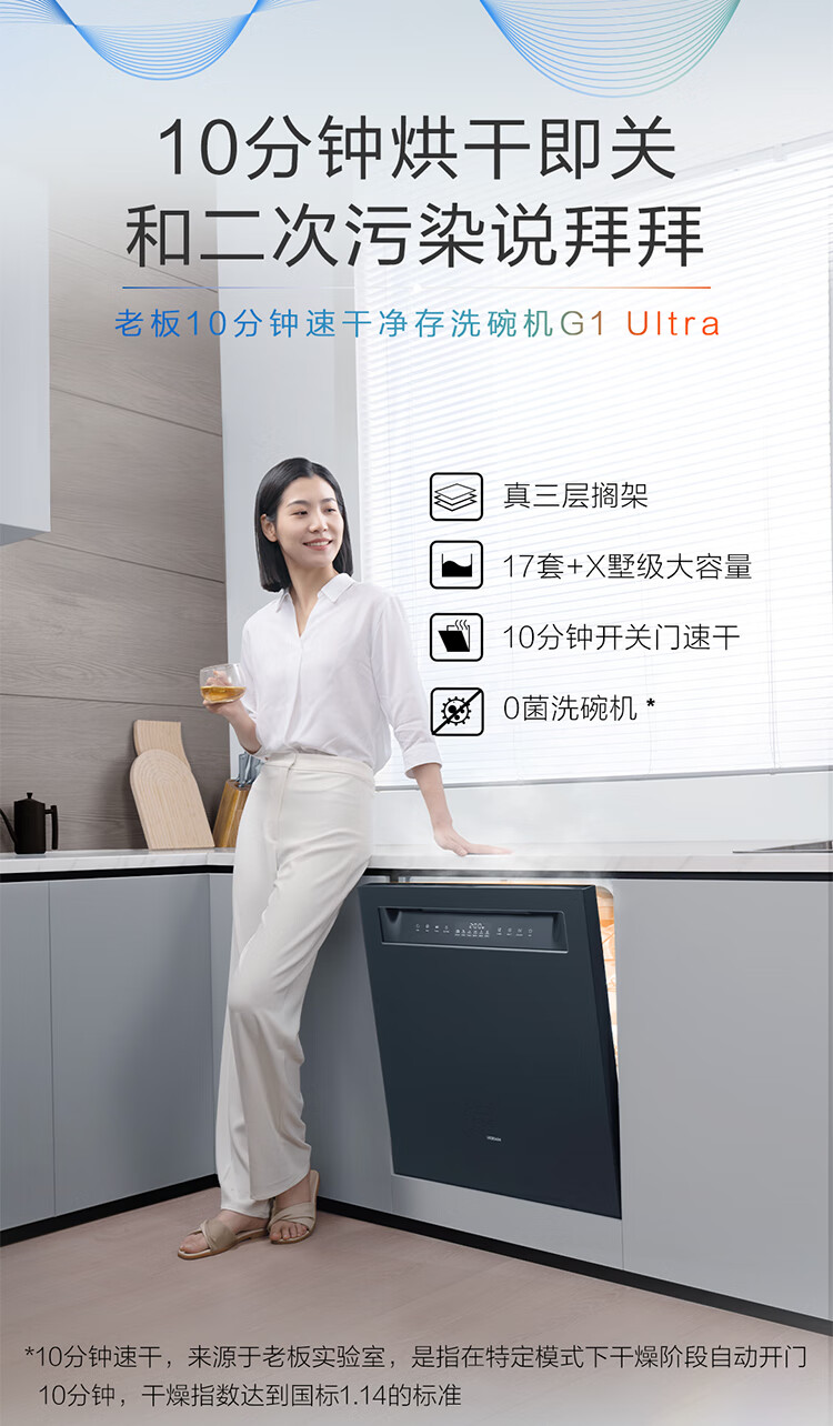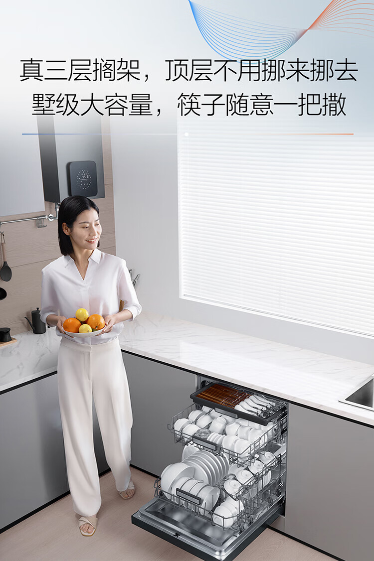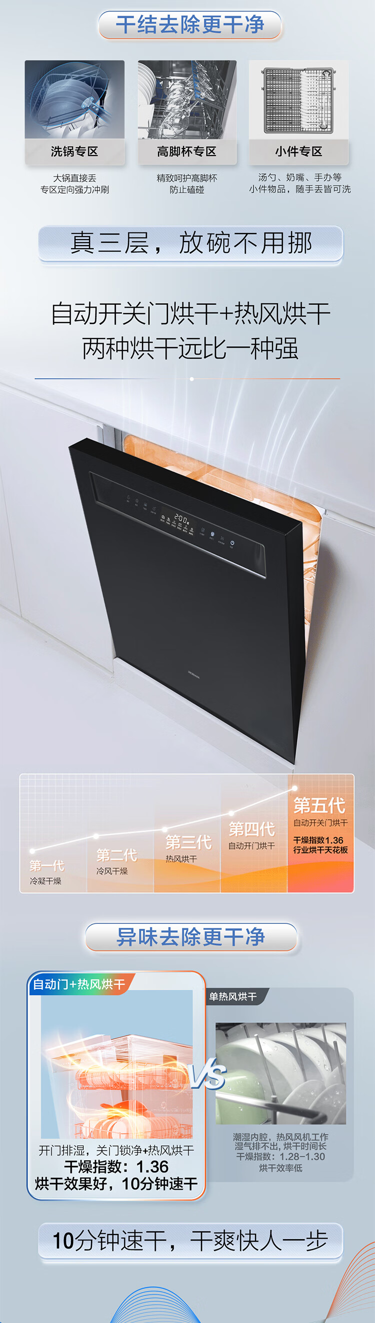Robam automatic door opening and closing salt series W76D-G1 Ultra volcanic salt black built-in dishwasher home appliances national subsidy 17 sets + 3 hot air drying UV disinfection
