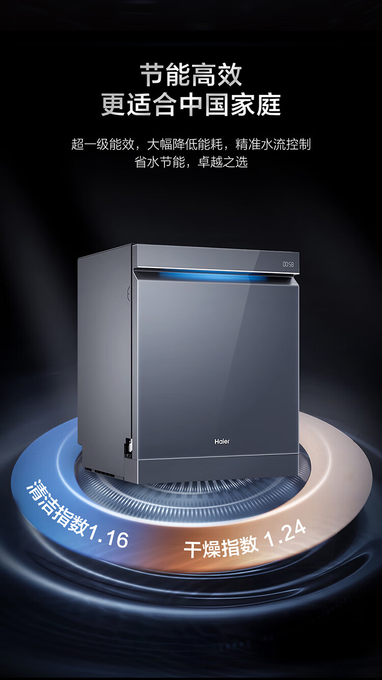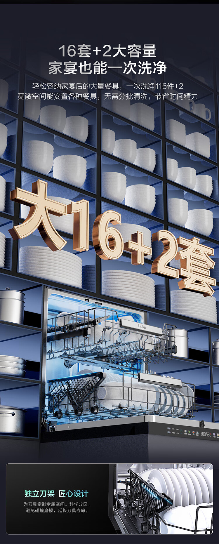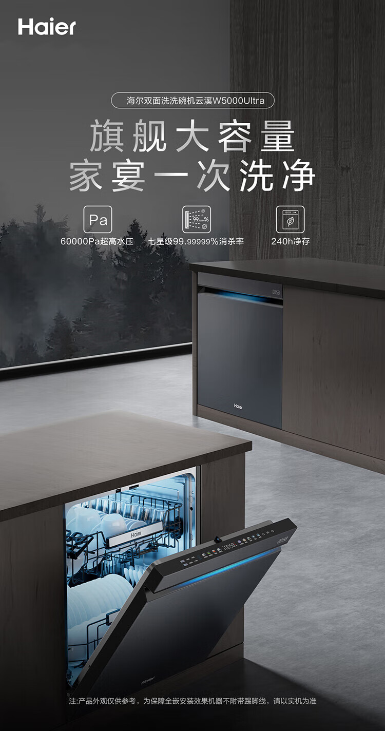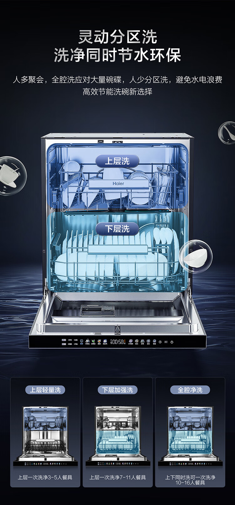 Haier double-sided washing W5000Ultra national subsidy 20% dishwasher built-in large 16+2 sets UV double sterilization smart switch door quick drying EYBW163296JHU1
