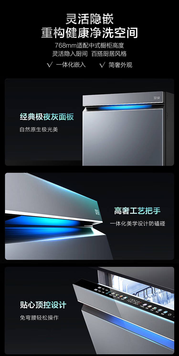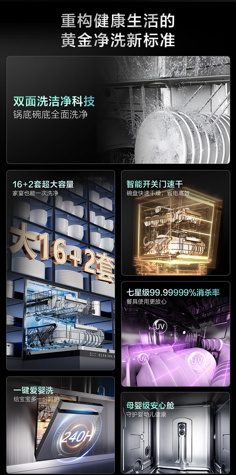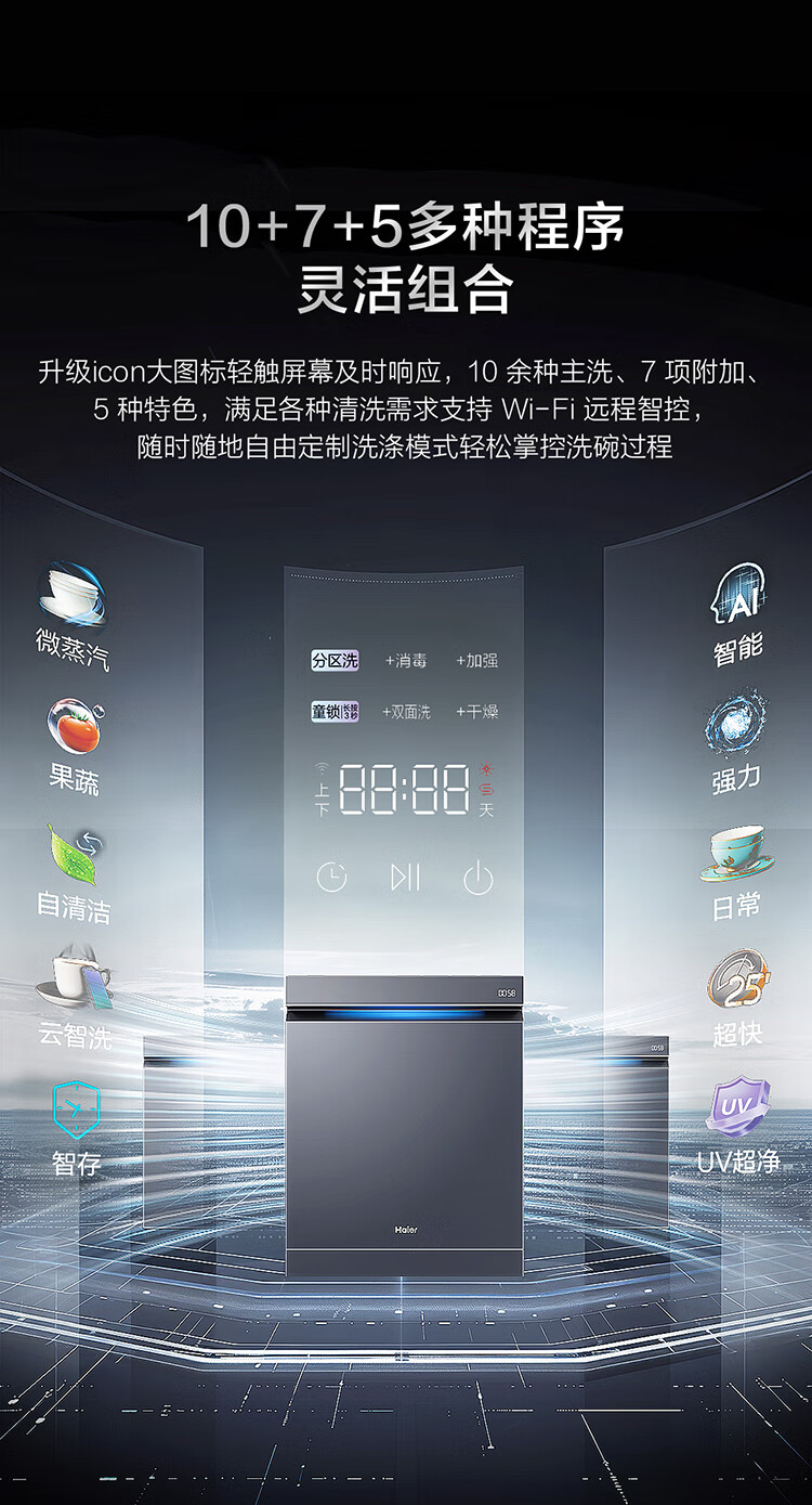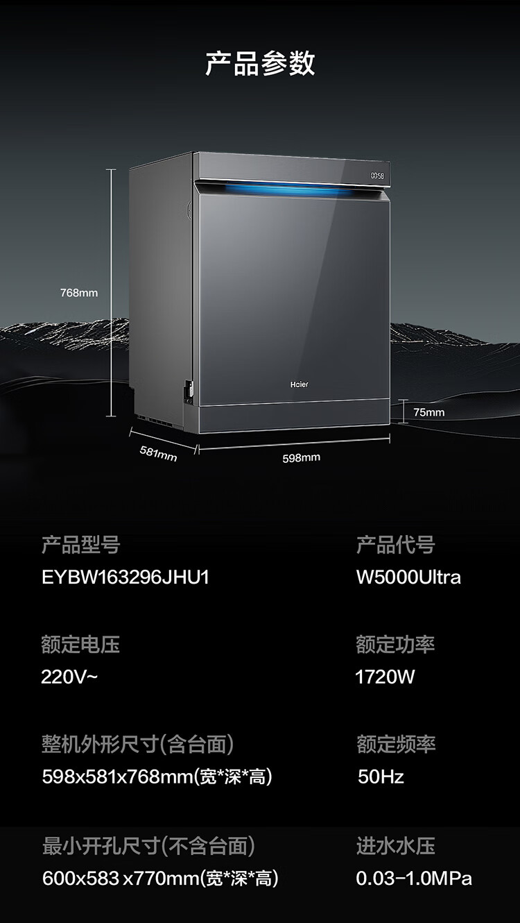 Haier double-sided washing W5000Ultra national subsidy 20% dishwasher built-in large 16+2 sets UV double sterilization smart switch door quick drying EYBW163296JHU1