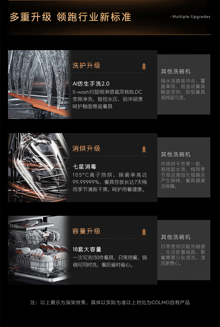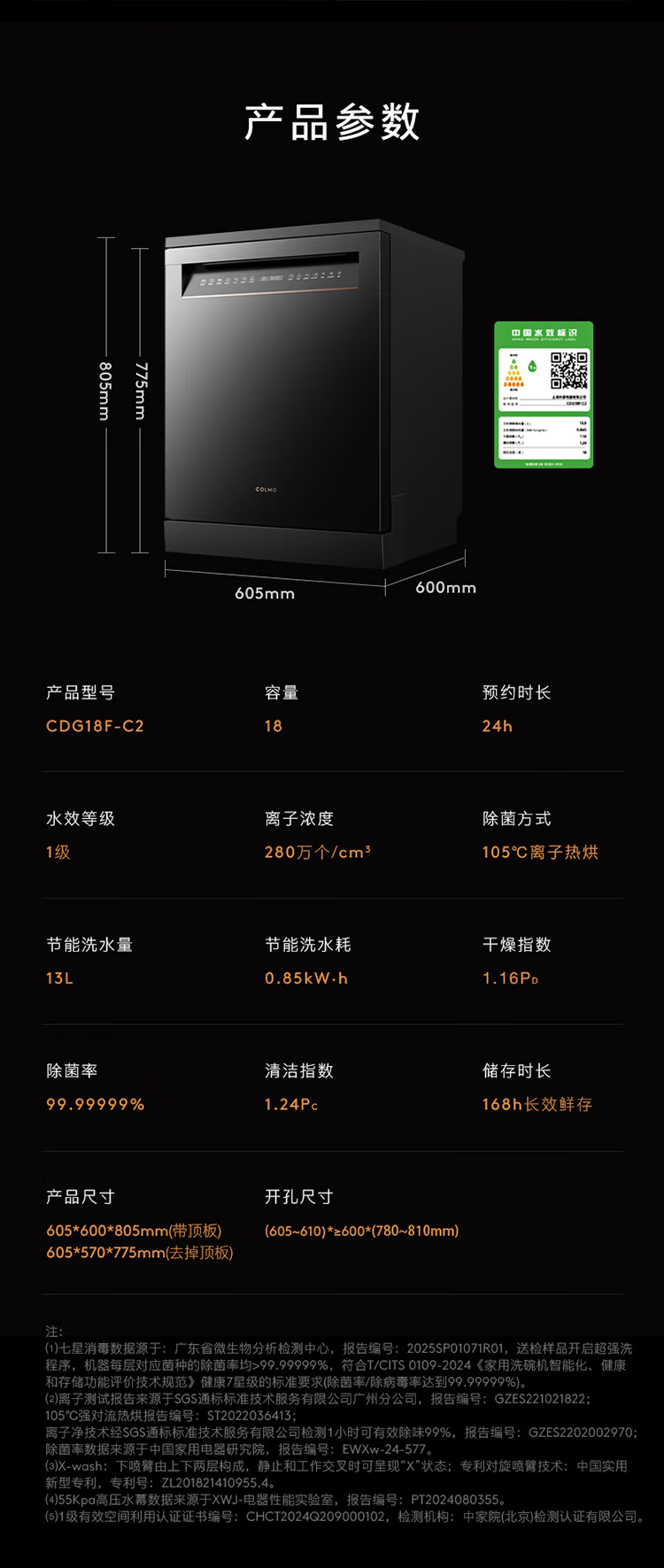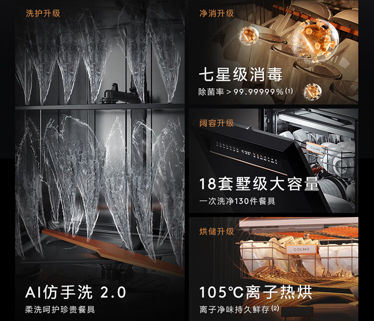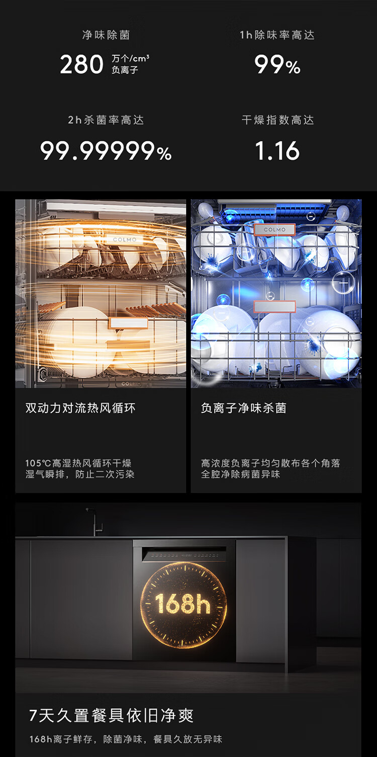 COLMO Black Pearl Dishwasher C2 Embedded CDG18F-C2 National Subsidy Home Appliances Level 1 Water Efficiency 18 Sets Capacity Bionic Hand Washing Single Disinfection Single Embedded Dual-use