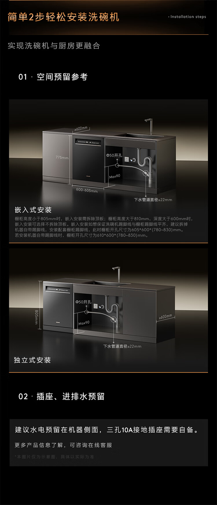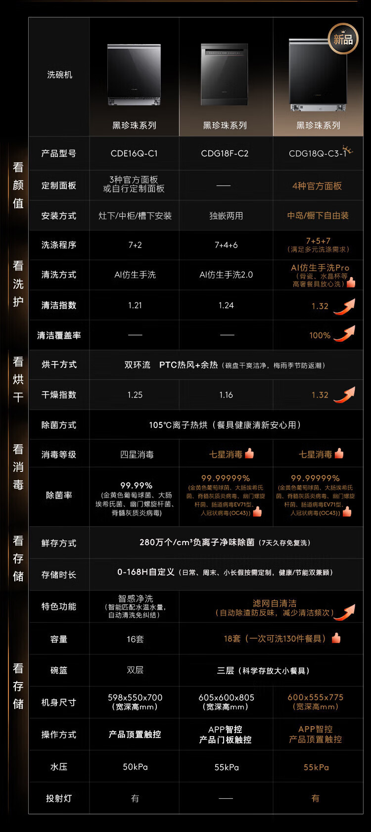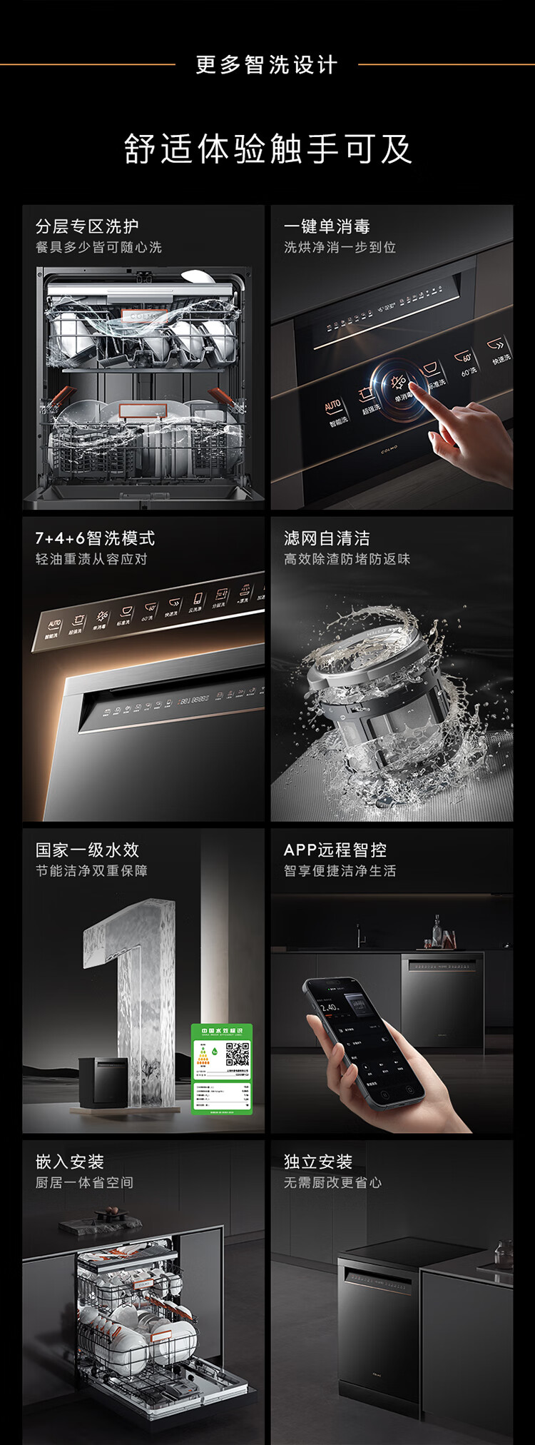 COLMO Black Pearl Dishwasher C2 Embedded CDG18F-C2 National Subsidy Home Appliances Level 1 Water Efficiency 18 Sets Capacity Bionic Hand Washing Single Disinfection Single Embedded Dual-use