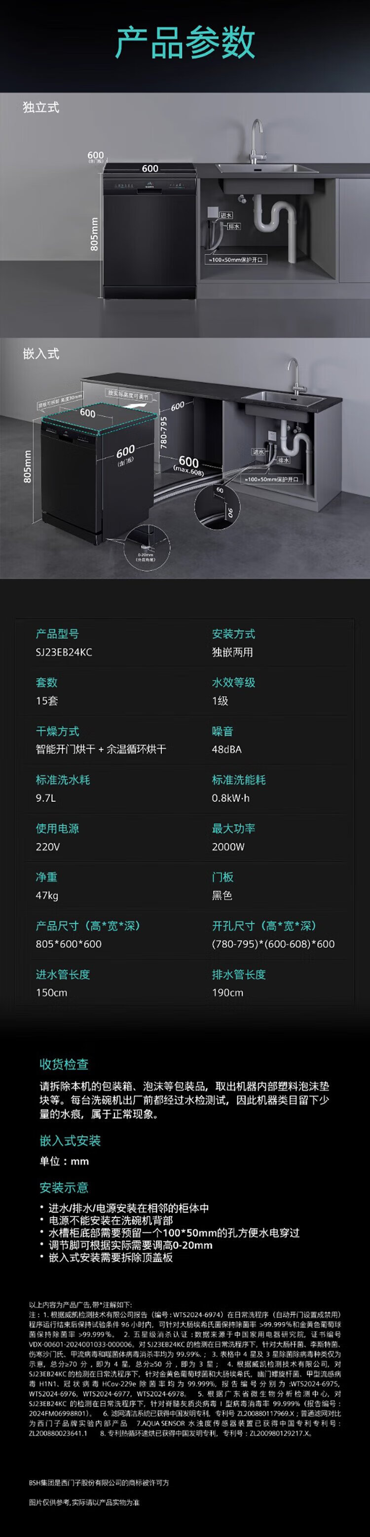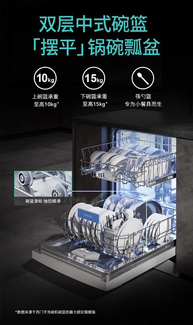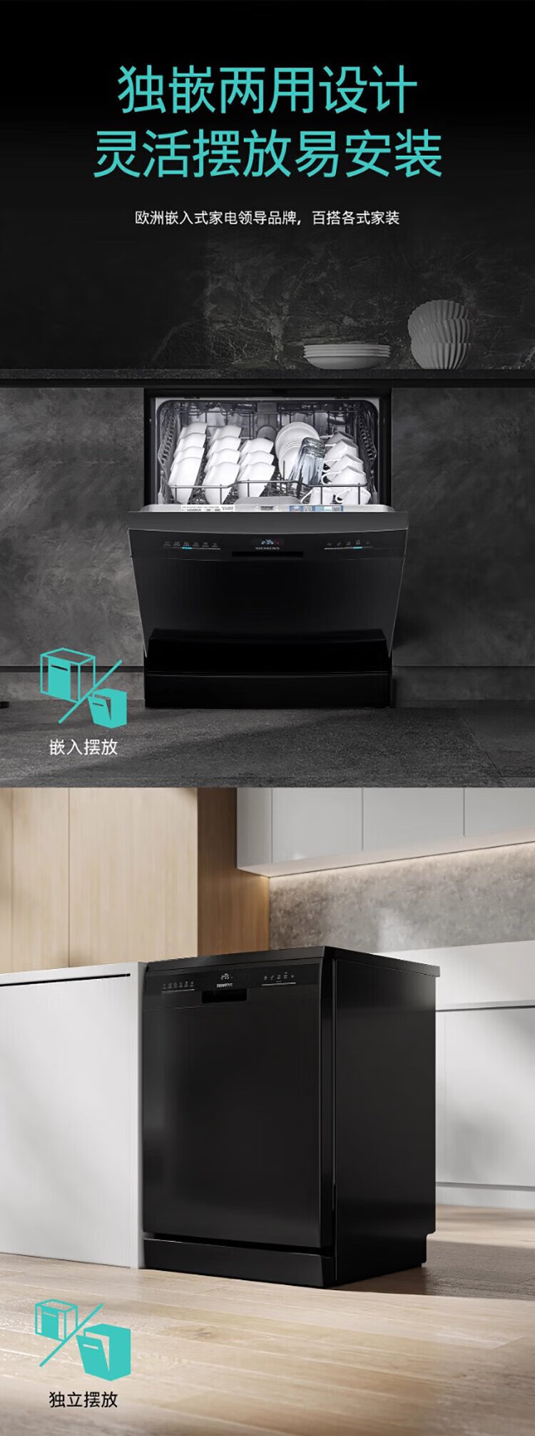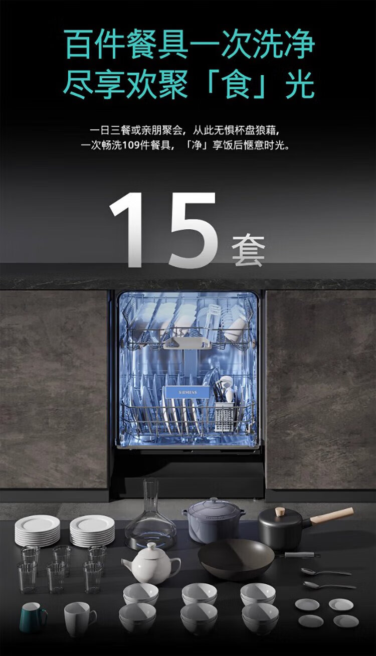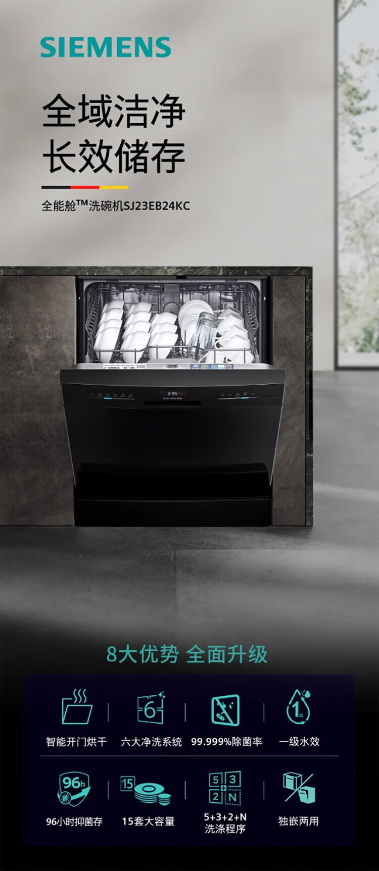 SIEMENS 15+2 sets of large-capacity independent embedded intelligent door-opening drying five-star sterilization, sterilization and disinfection dishwasher with first-class water efficiency SJ23EB24KC