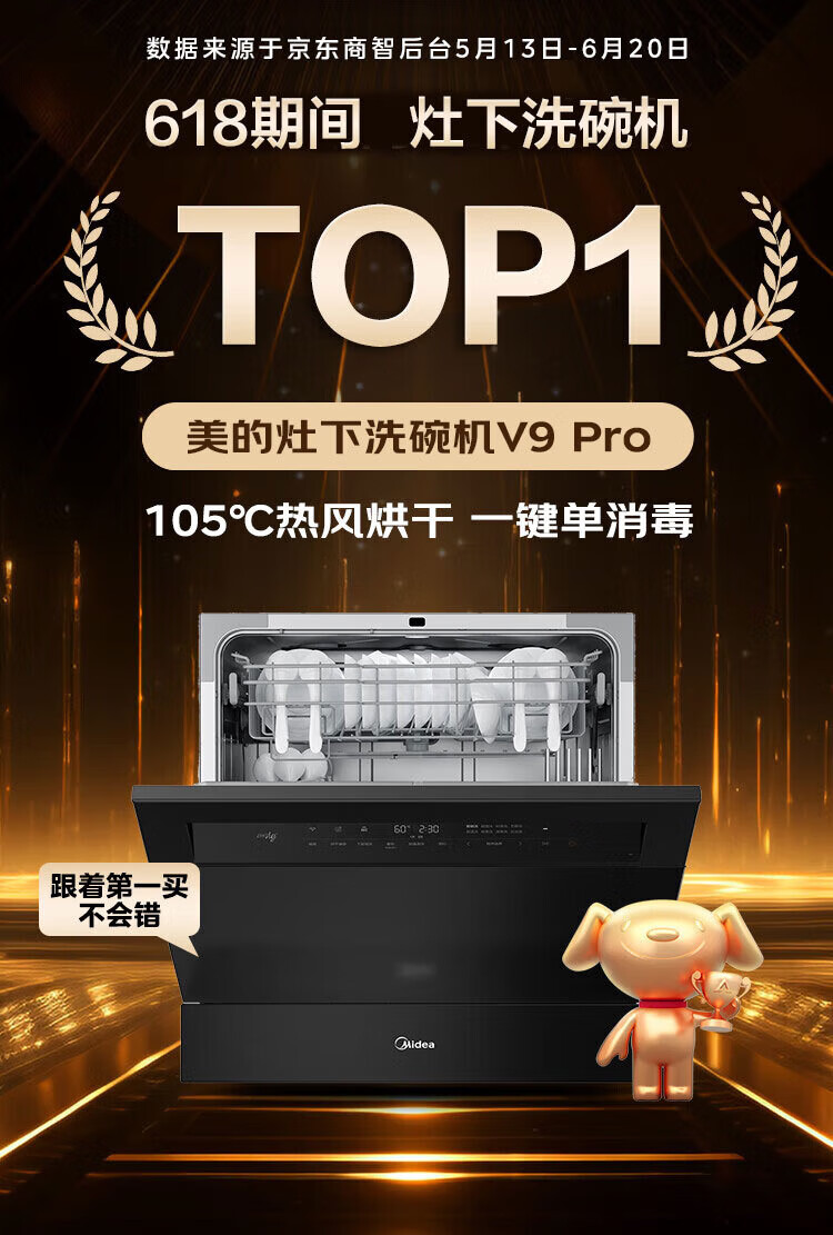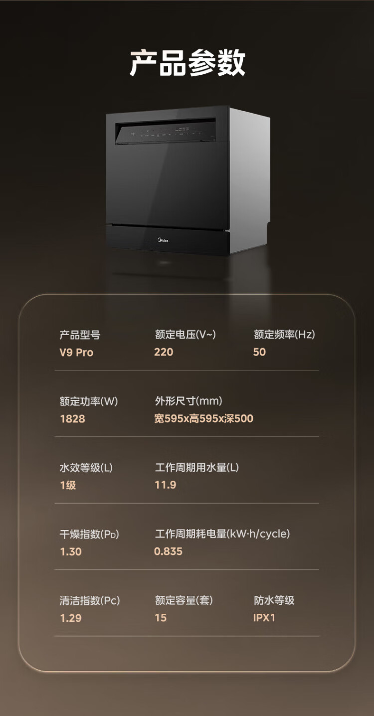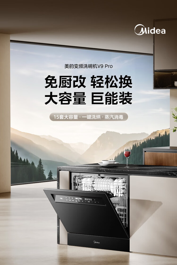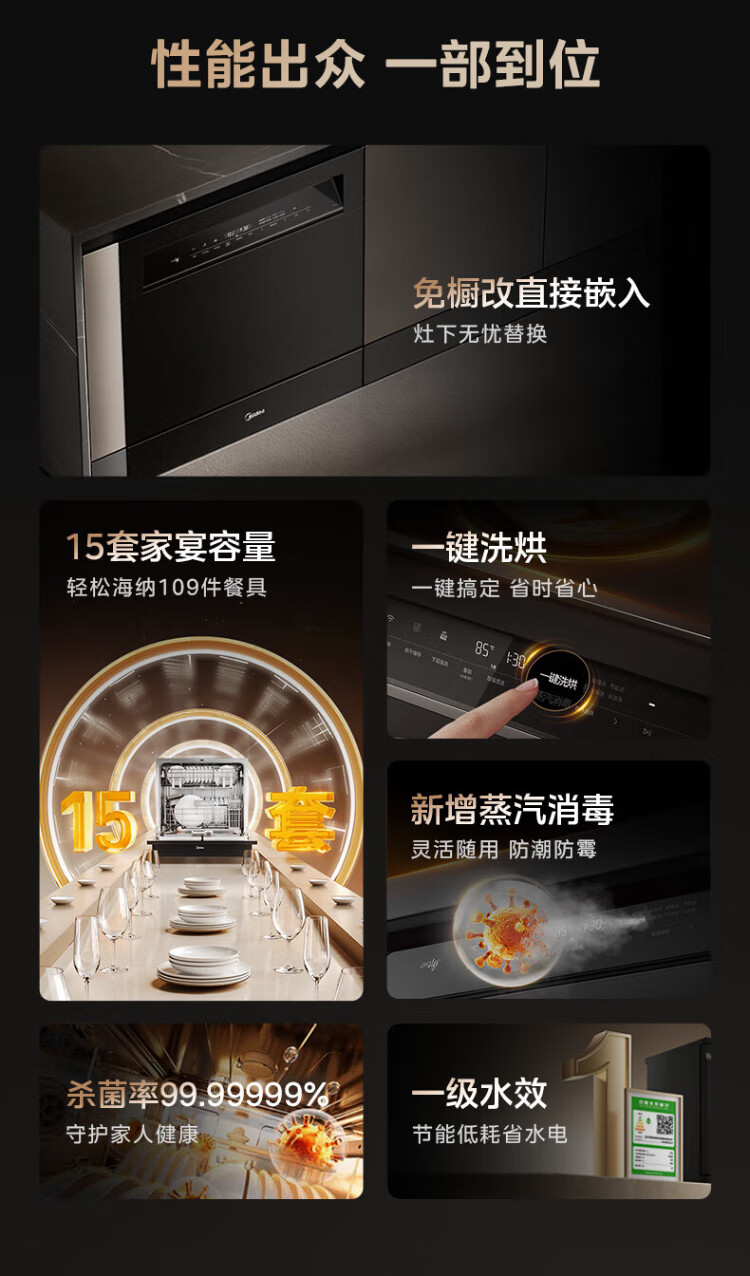 Midea V9 Pro dishwasher built-in household stove under the stove 15 sets upgraded one-click washing and drying steam single disinfection seven-star disinfecting 105 thermal drying, washing and disinfecting all-in-one machine