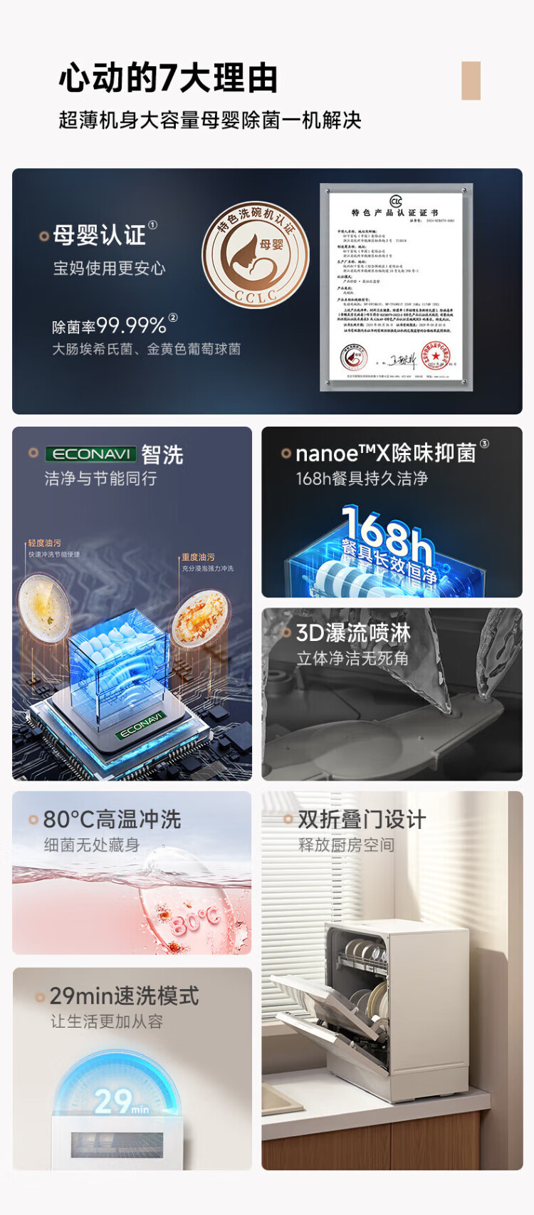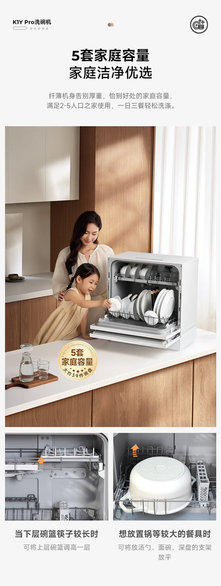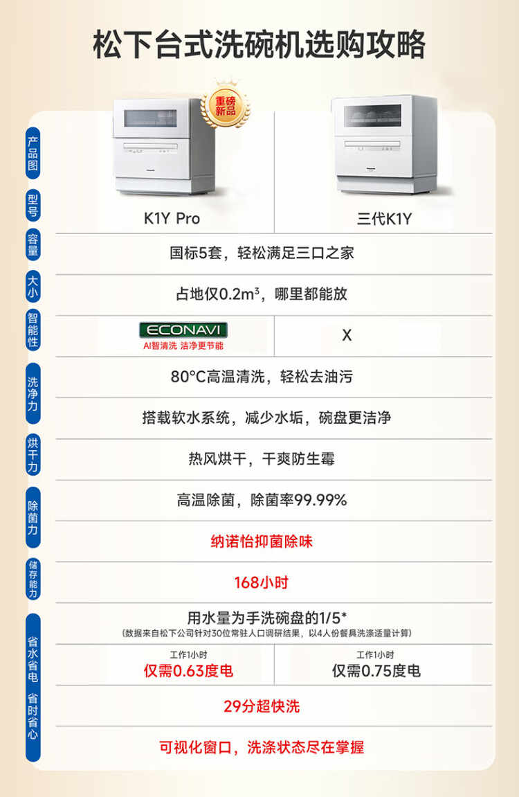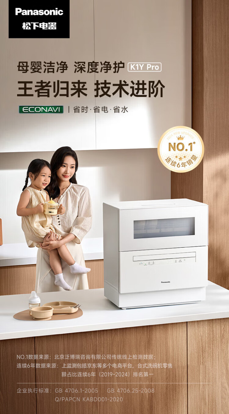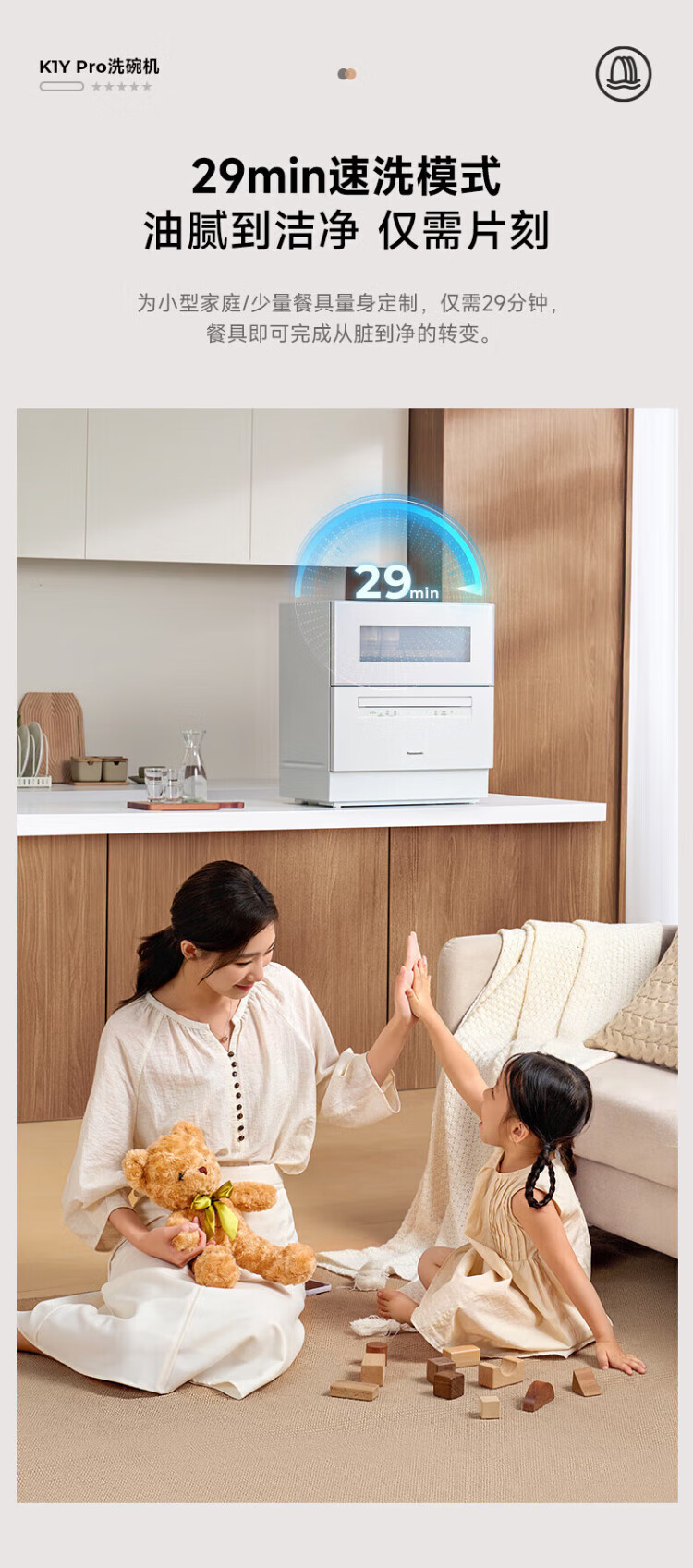 Panasonic (Panasonic) desktop dishwasher third generation upgraded model smart washing 80 high temperature sterilization mother and baby household independent drying 5 sets NP-UW5BK3Y second-level water efficiency