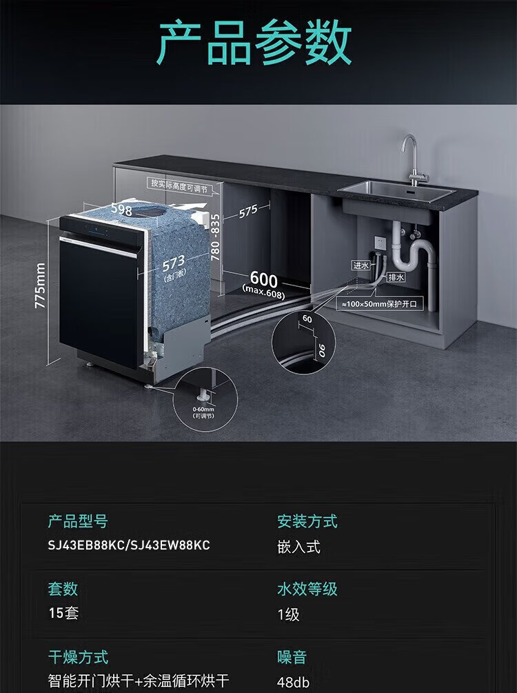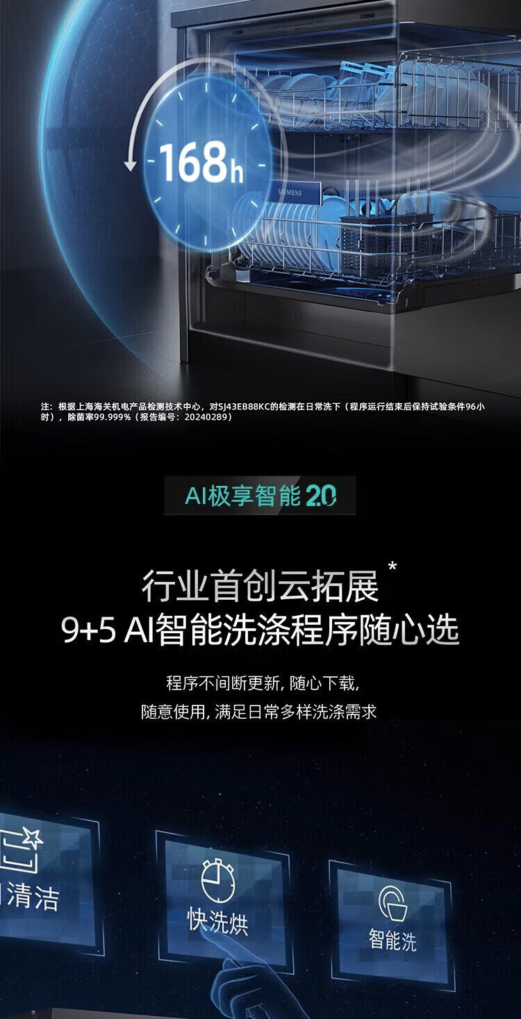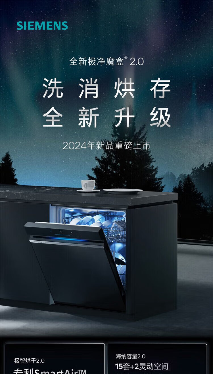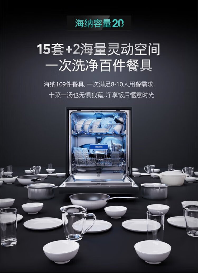 SIEMENS Ultra-Purifying Magic Box 2.0 15 sets + 2 large-capacity built-in dishwasher disinfection and sterilization first-level water efficiency SJ43EW88KC