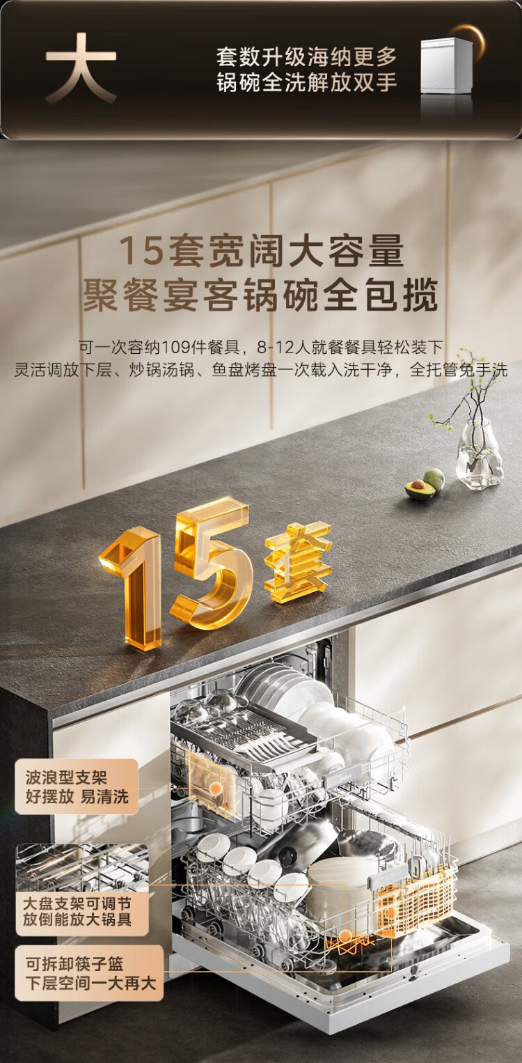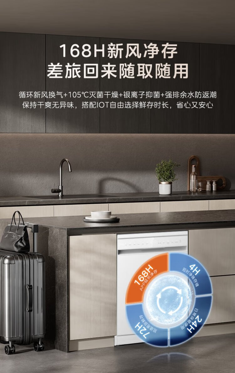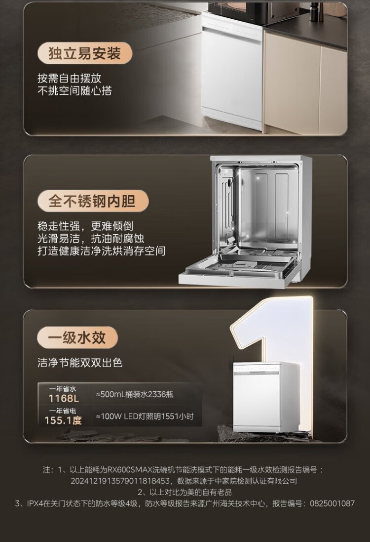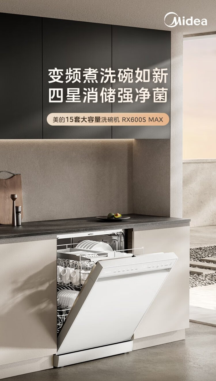 Midea RX600S Max white 15-set built-in dishwasher, variable frequency cleaning, four-star disinfection, independent built-in dual-use 105, hot air drying 168H antibacterial storage new model