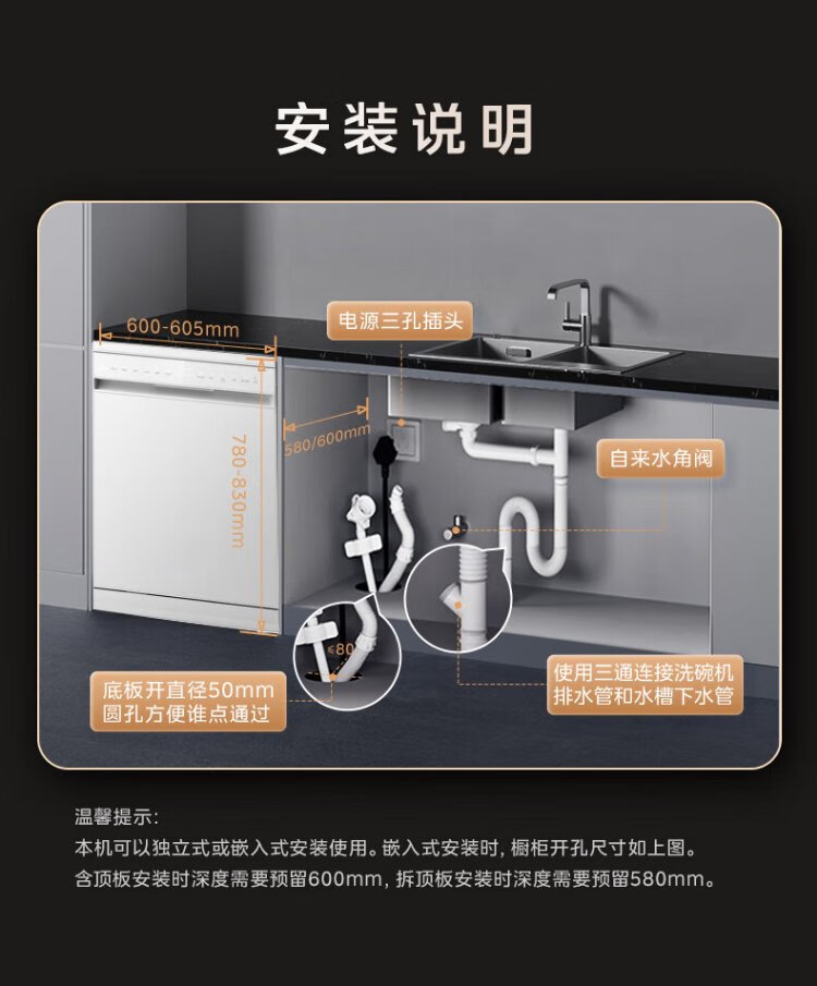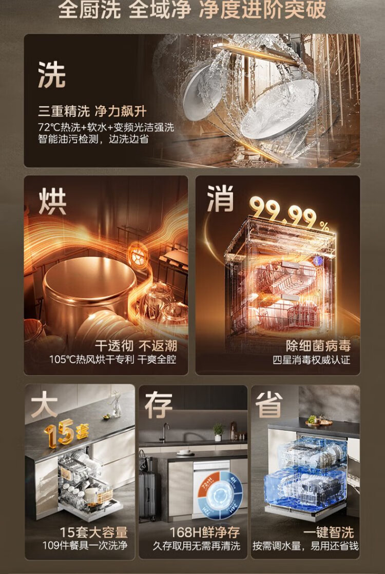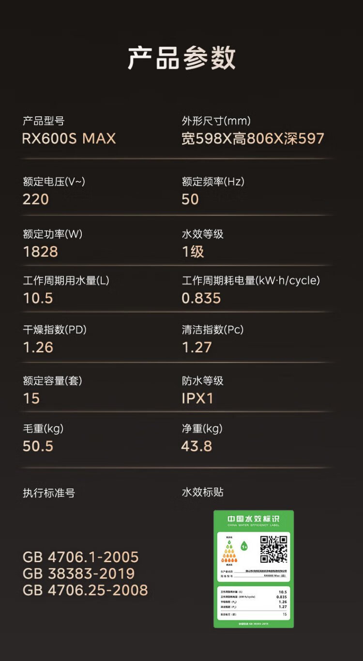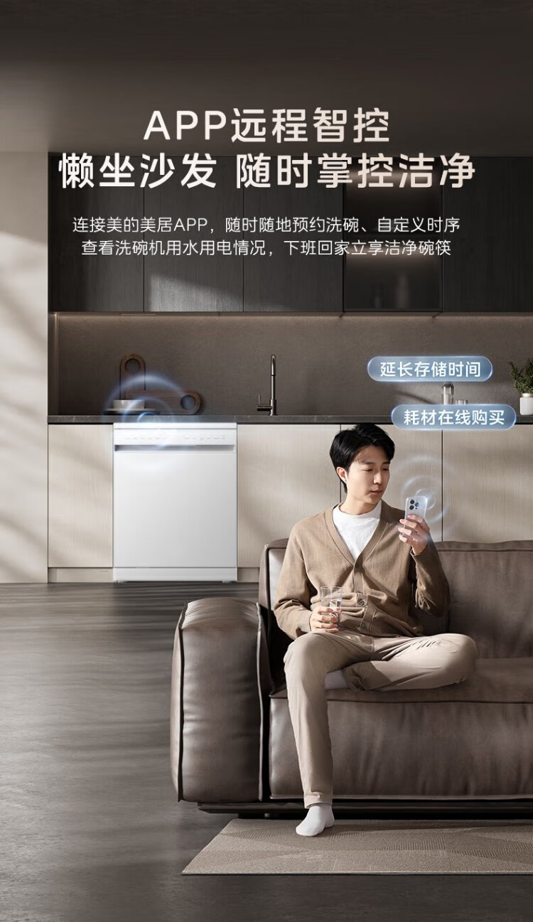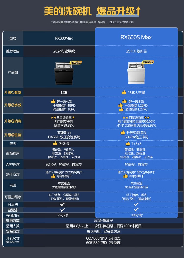 Midea RX600S Max white 15-set built-in dishwasher, variable frequency cleaning, four-star disinfection, independent built-in dual-use 105, hot air drying 168H antibacterial storage new model