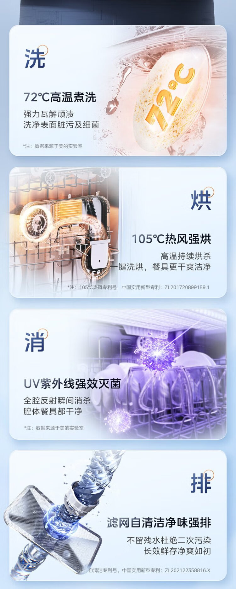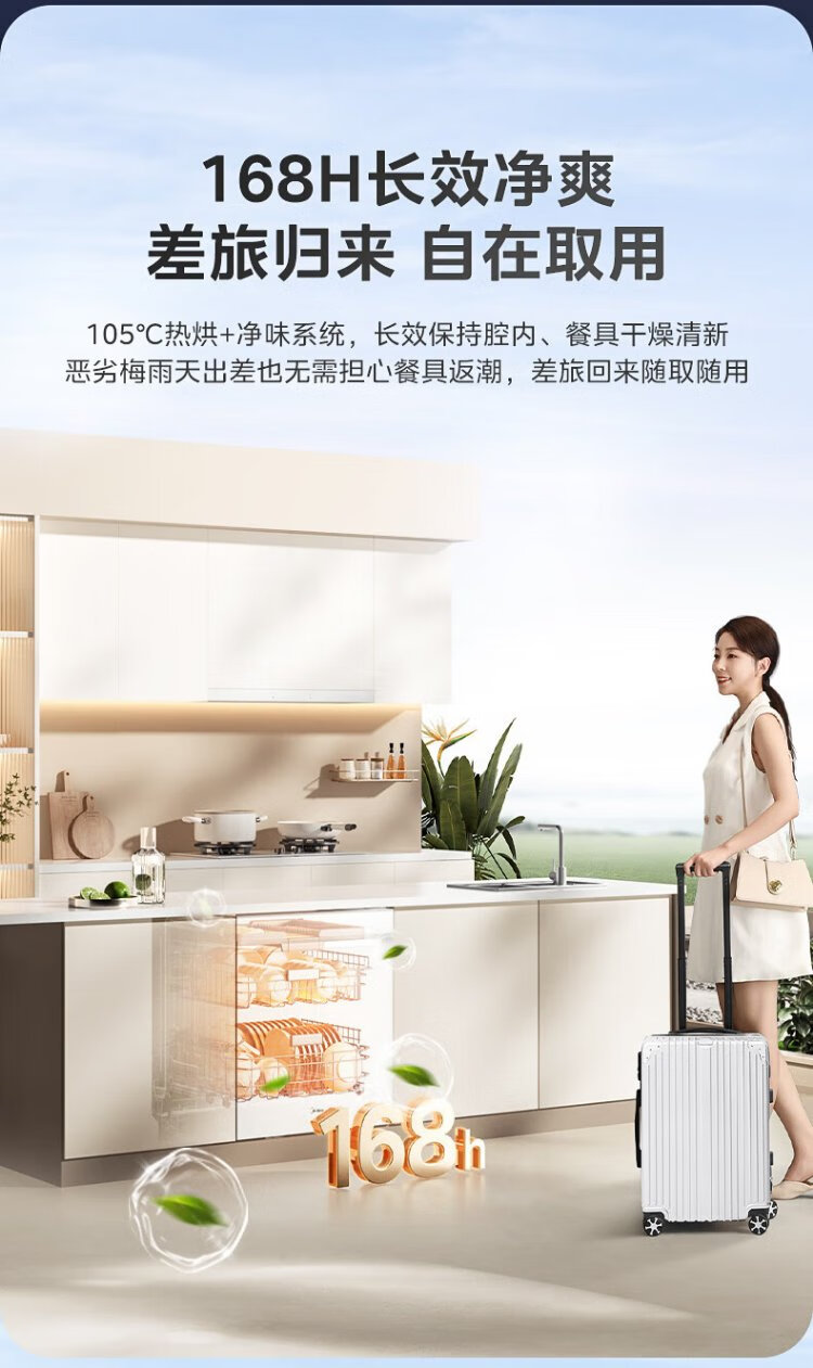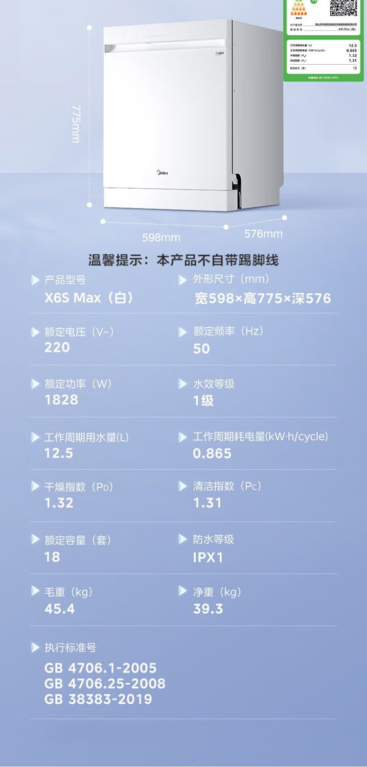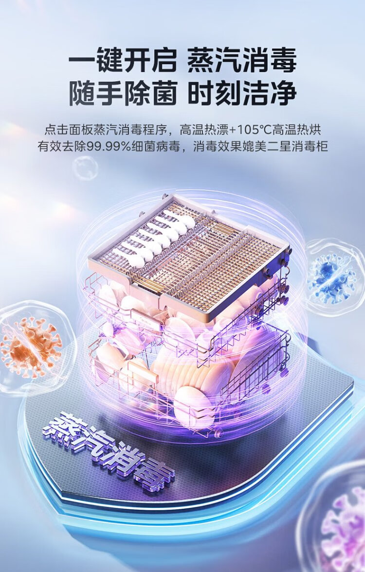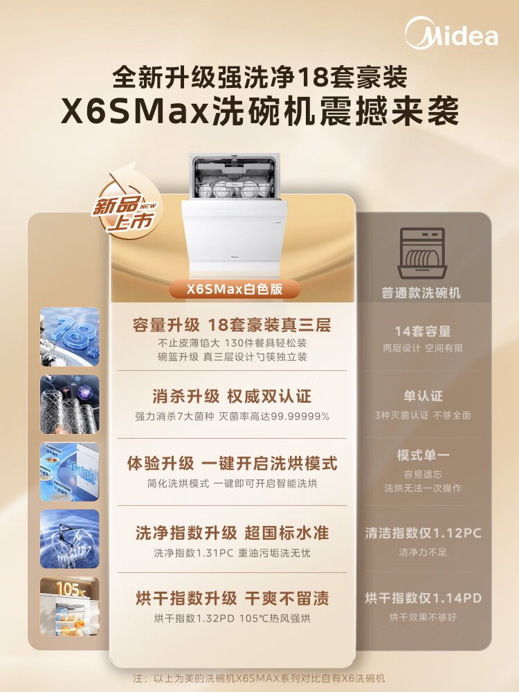 Midea Wanxiang X6S Max (white) dishwasher built-in upgrade 18 sets of seven-star disinfection, four-star disinfection, one-touch washing and drying, steam single disinfection, UV sterilization 105, thermal drying