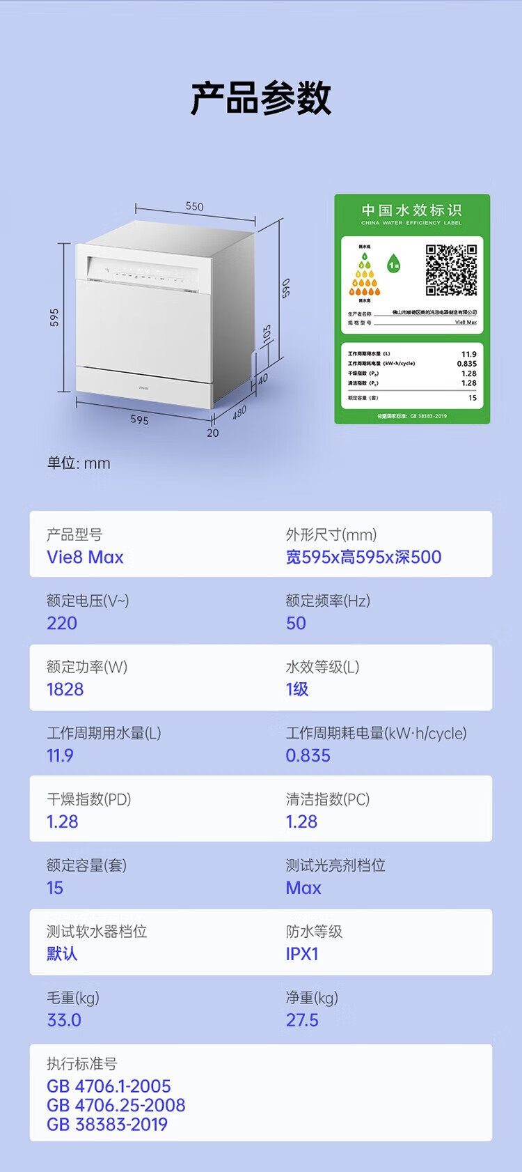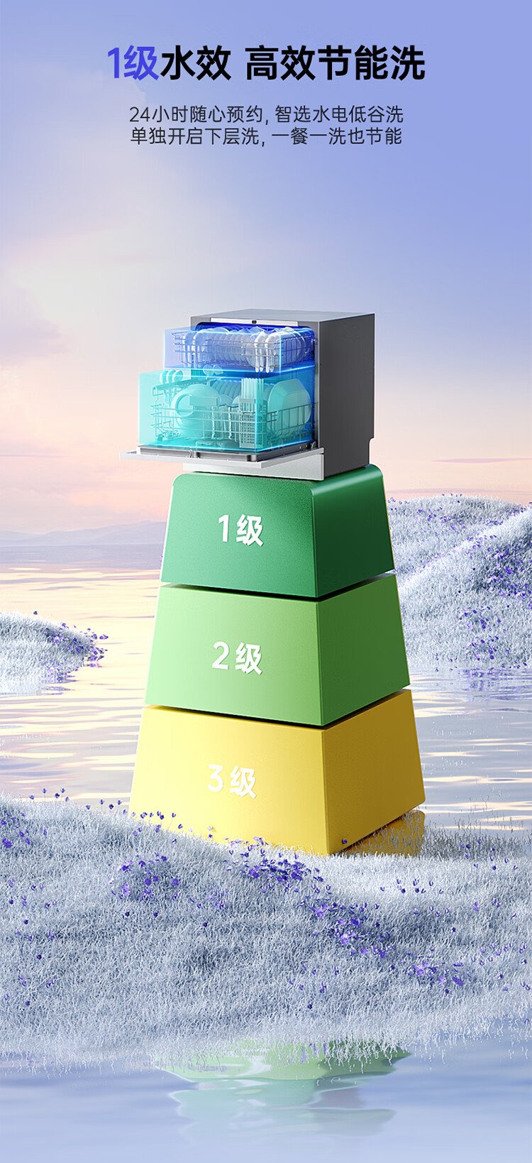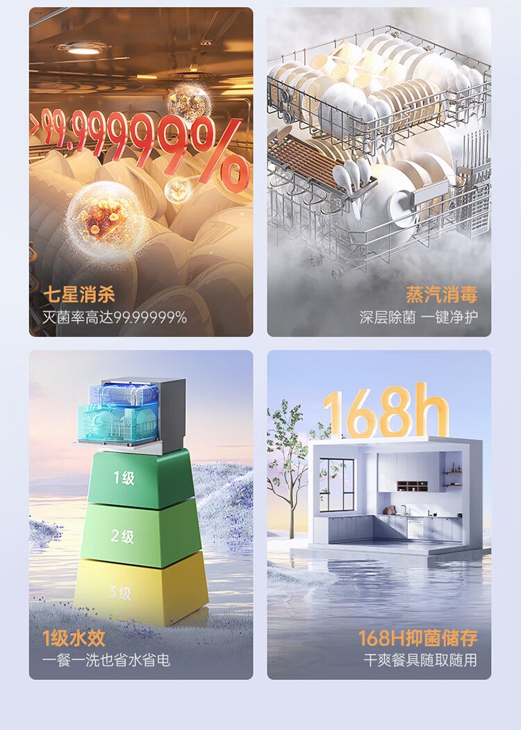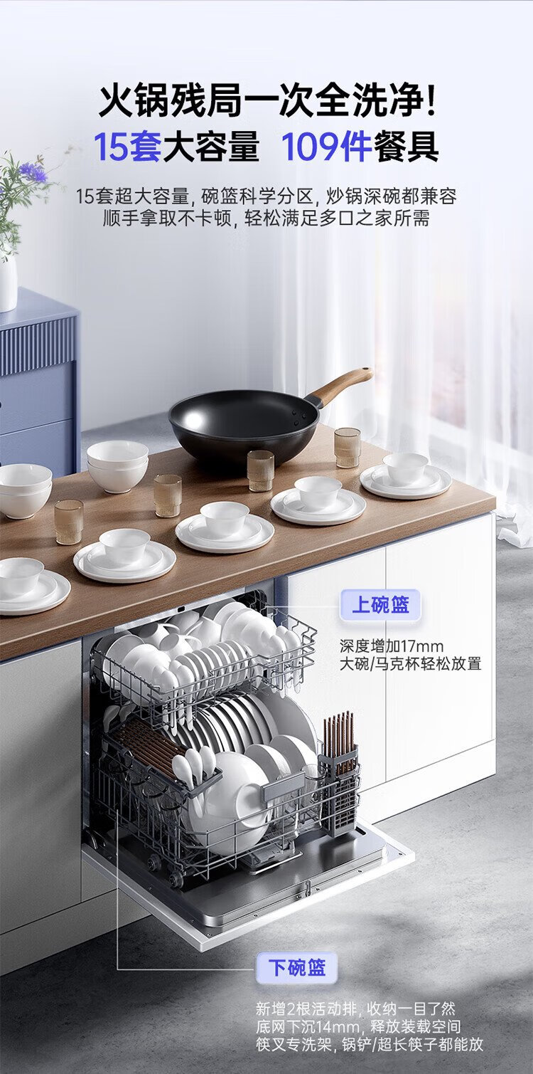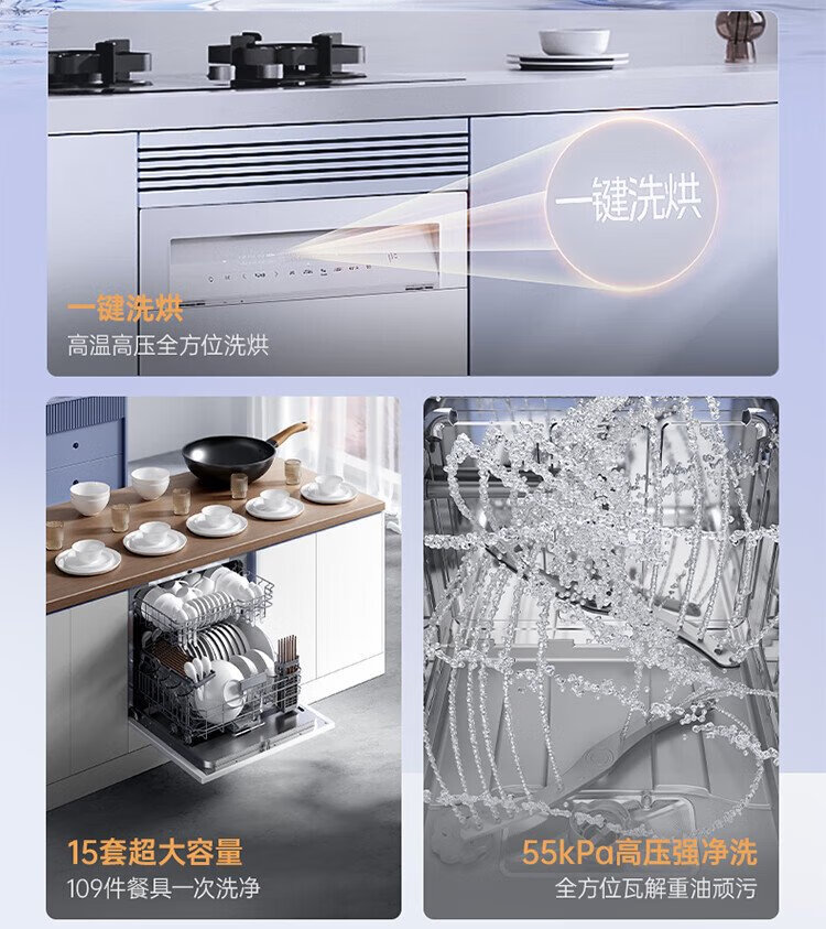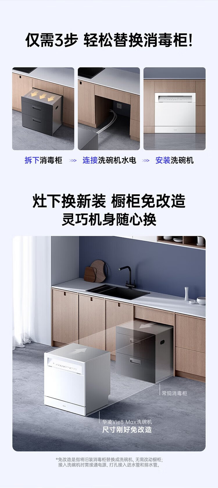 Hualing Magic Machine Vie8 Max produced by Midea, 15 sets of dishwashers under the stove, 55kPa water pressure, one-touch washing and drying, first-class water efficiency, 105 hot air drying, same style as in stores