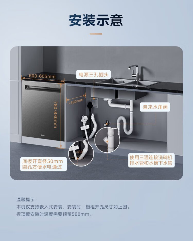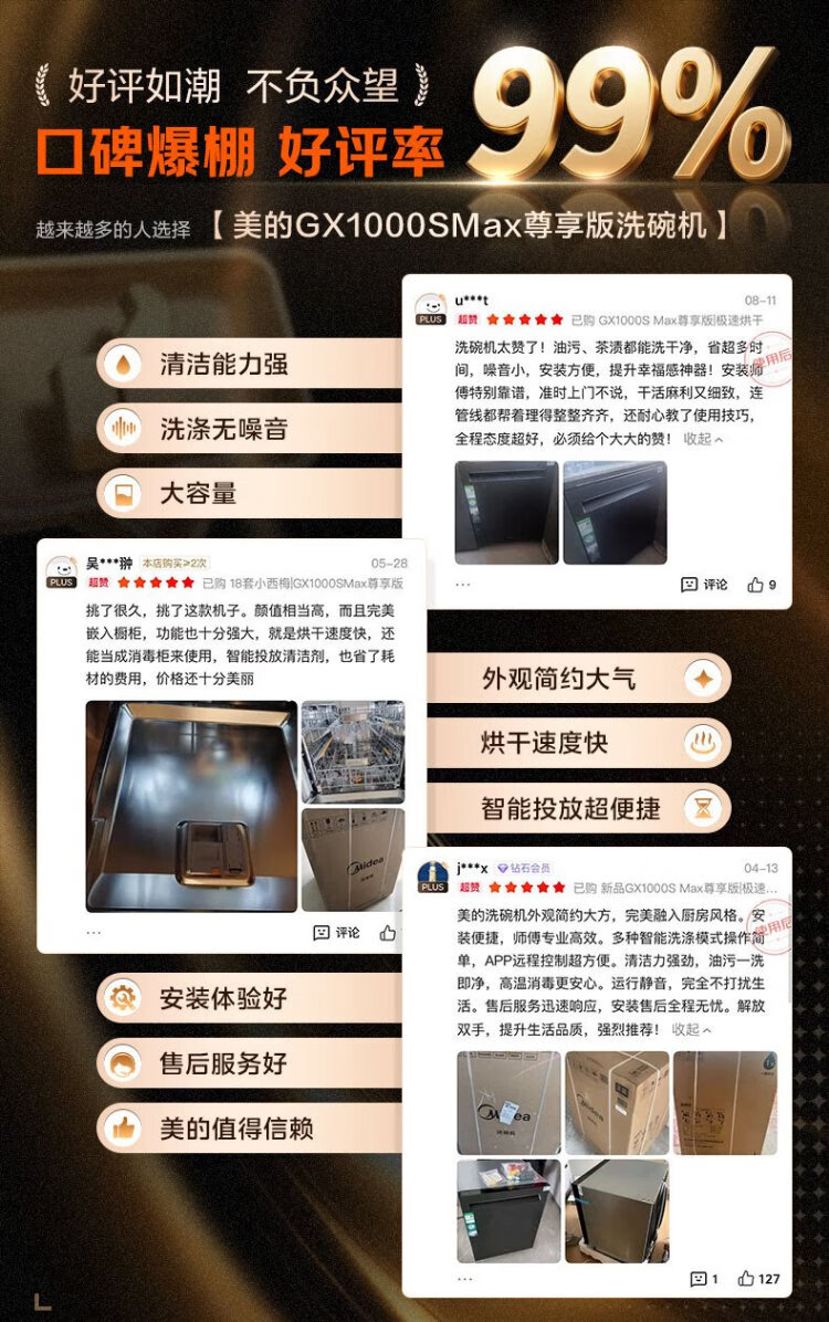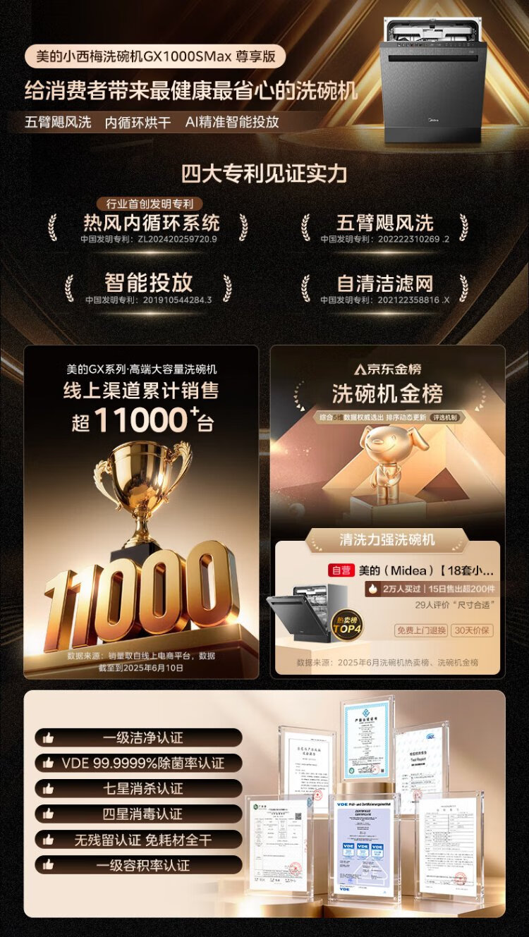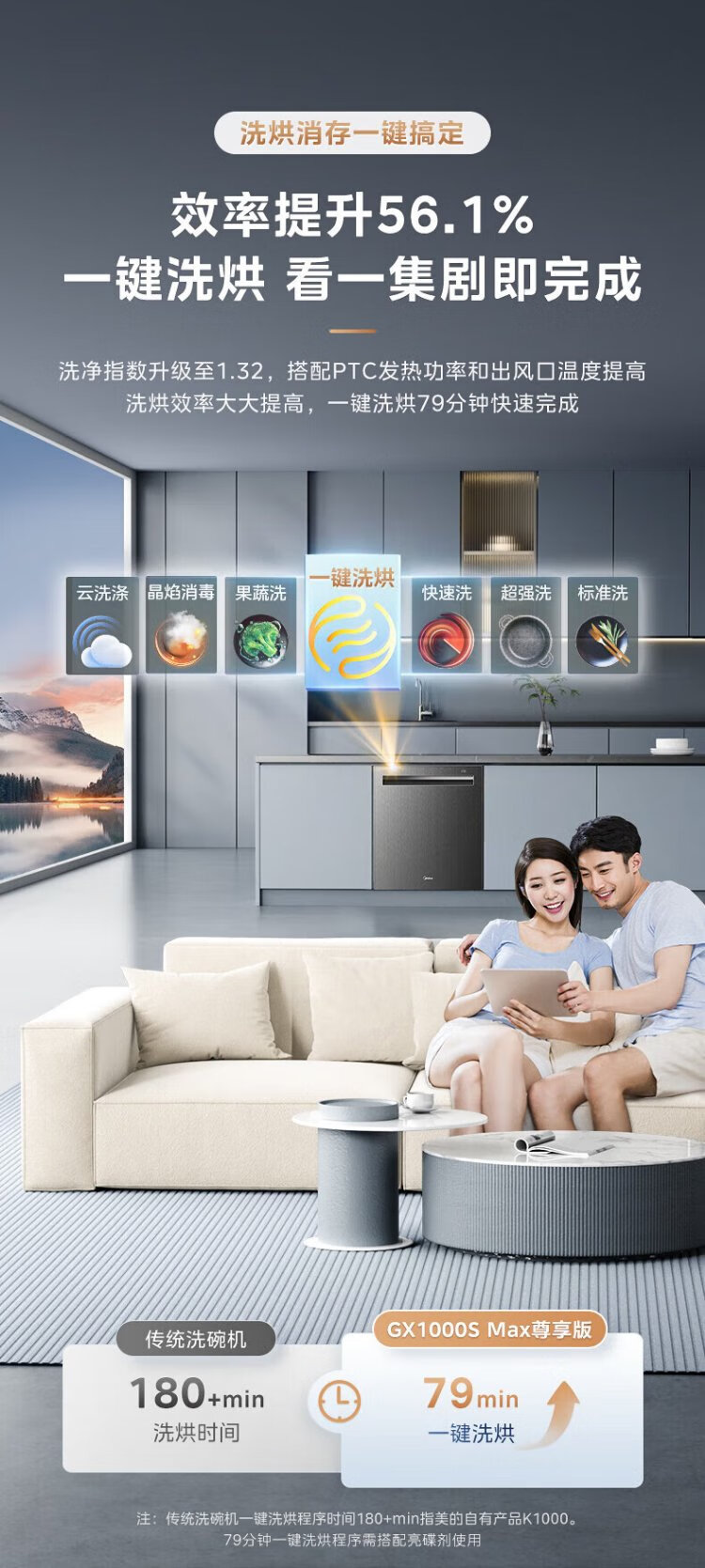 Midea 18 sets of Xiaoximei dishwashers GX1000SMax exclusive version built-in dishwasher with intelligent frequency conversion five-arm hurricane washing and internal cycle drying and disinfection
