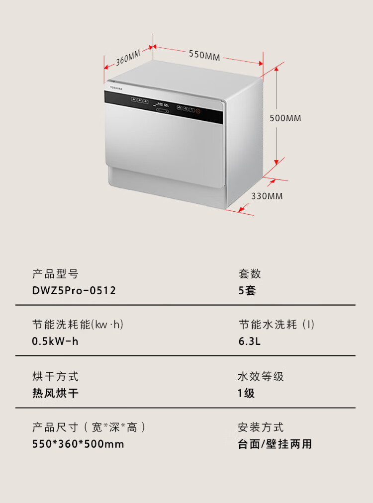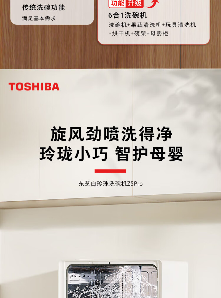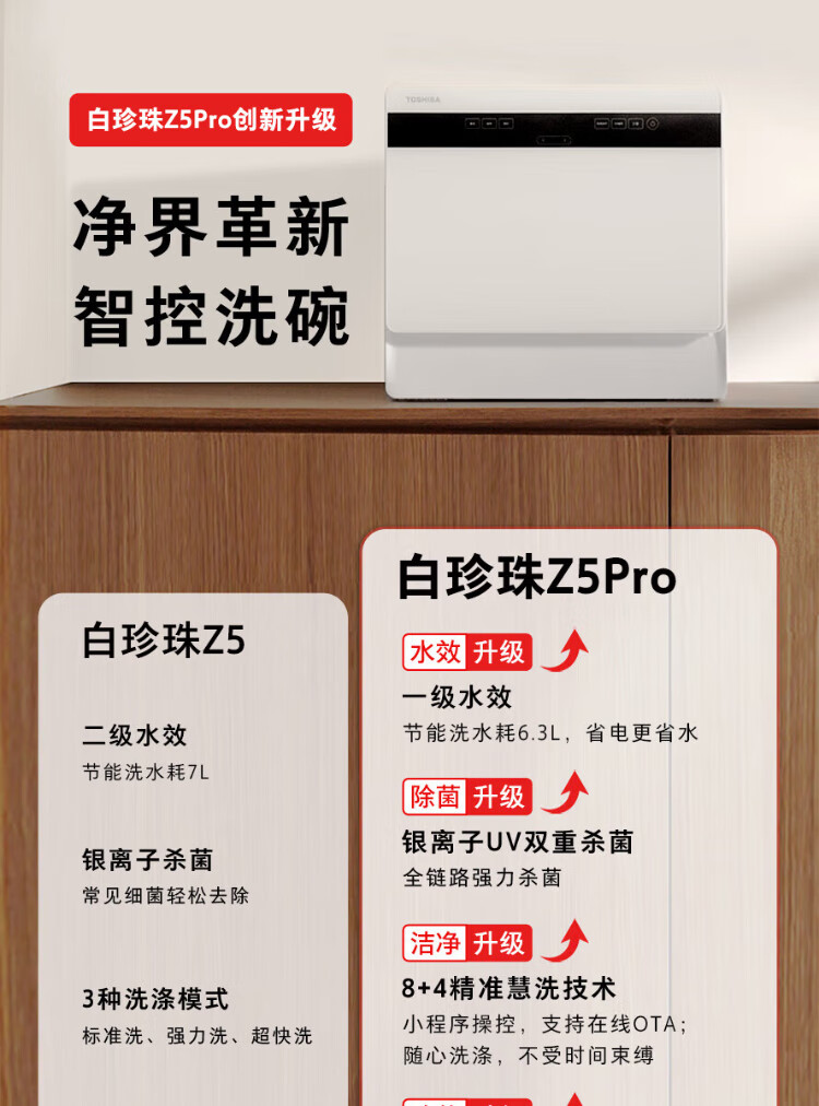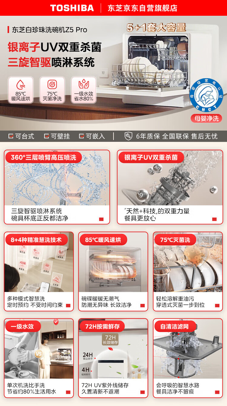 Toshiba's new product White Pearl Z5Pro desktop dishwasher, first-class water efficiency, 5+1 set, wall-mountable and embedded, UV sterilization, maternal and infant grade four-star disinfection, 20% national subsidy