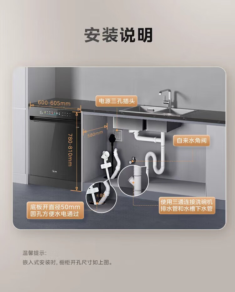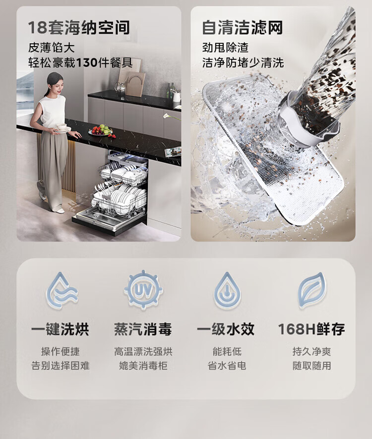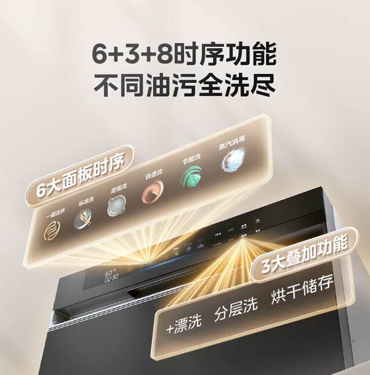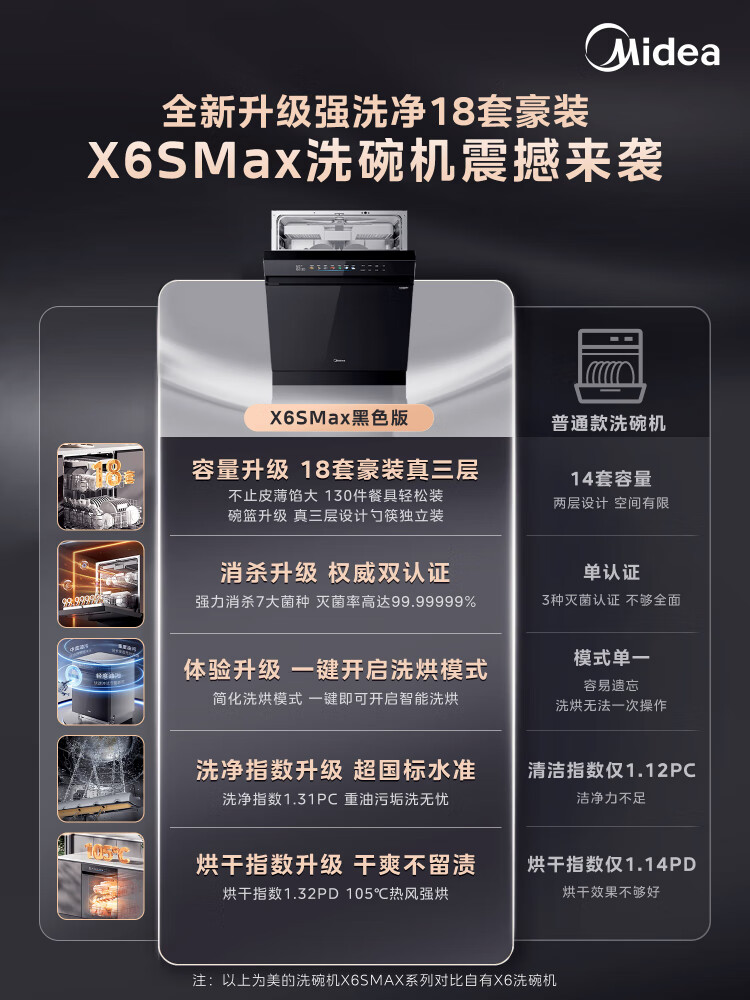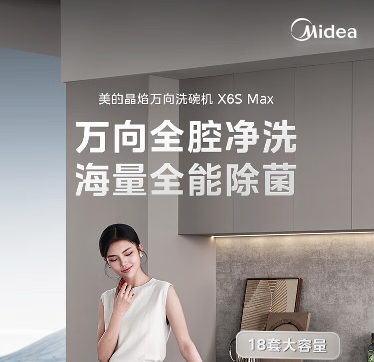 Midea Wanxiang X6S Max 18-set built-in dishwasher, universal spray arm, four-star disinfection, seven-star disinfection, one-click washing and drying, steam disinfection, same style as in stores