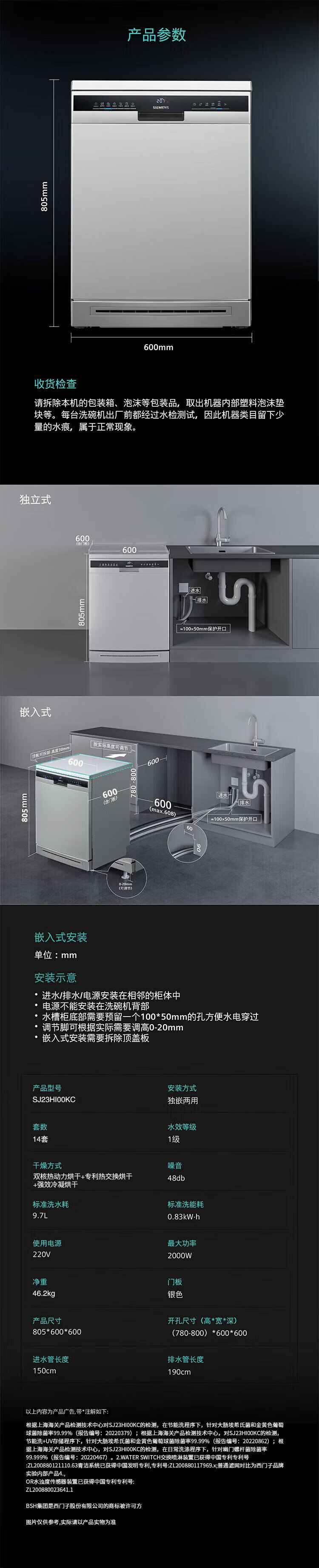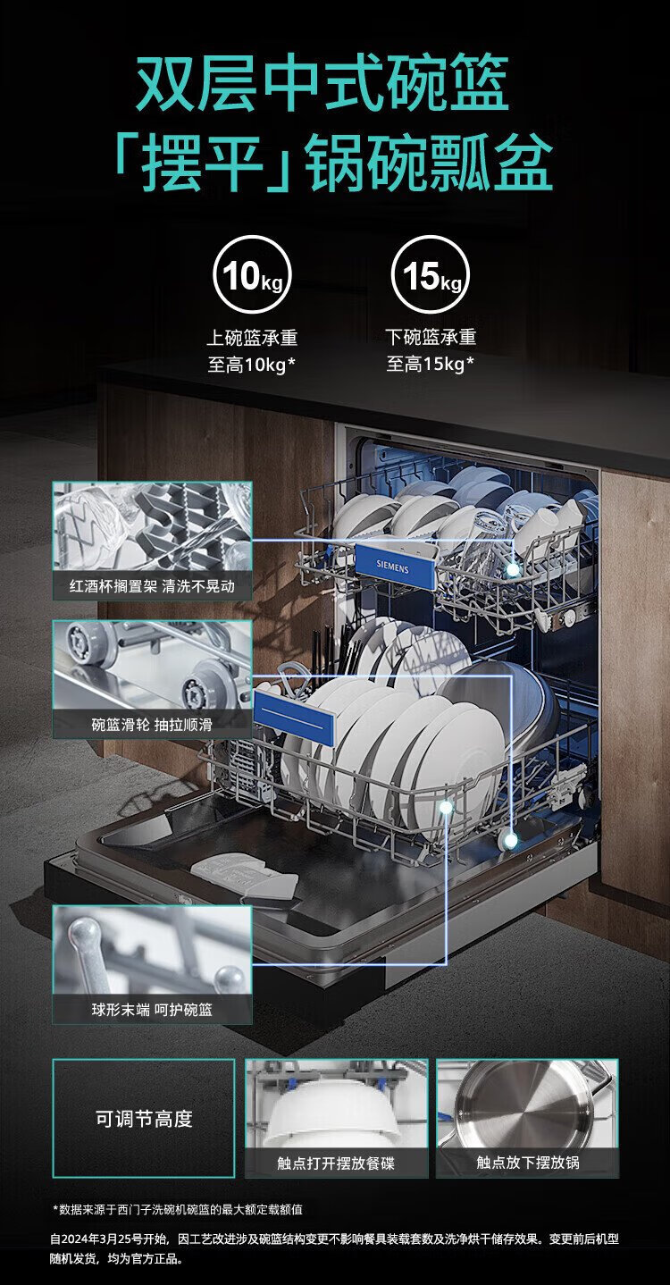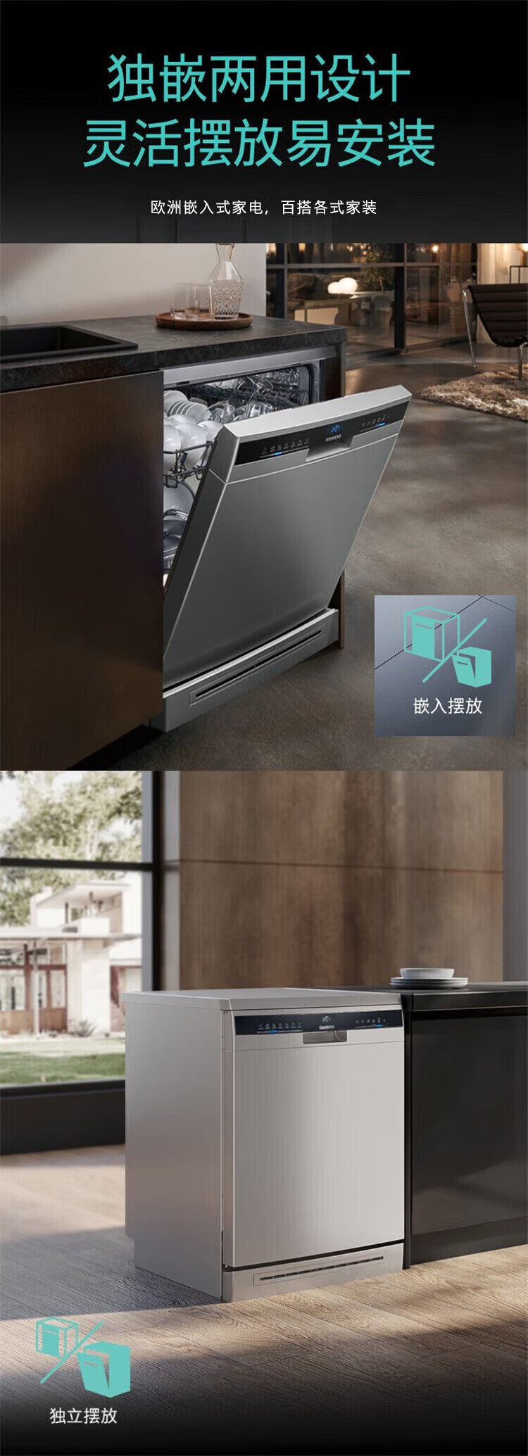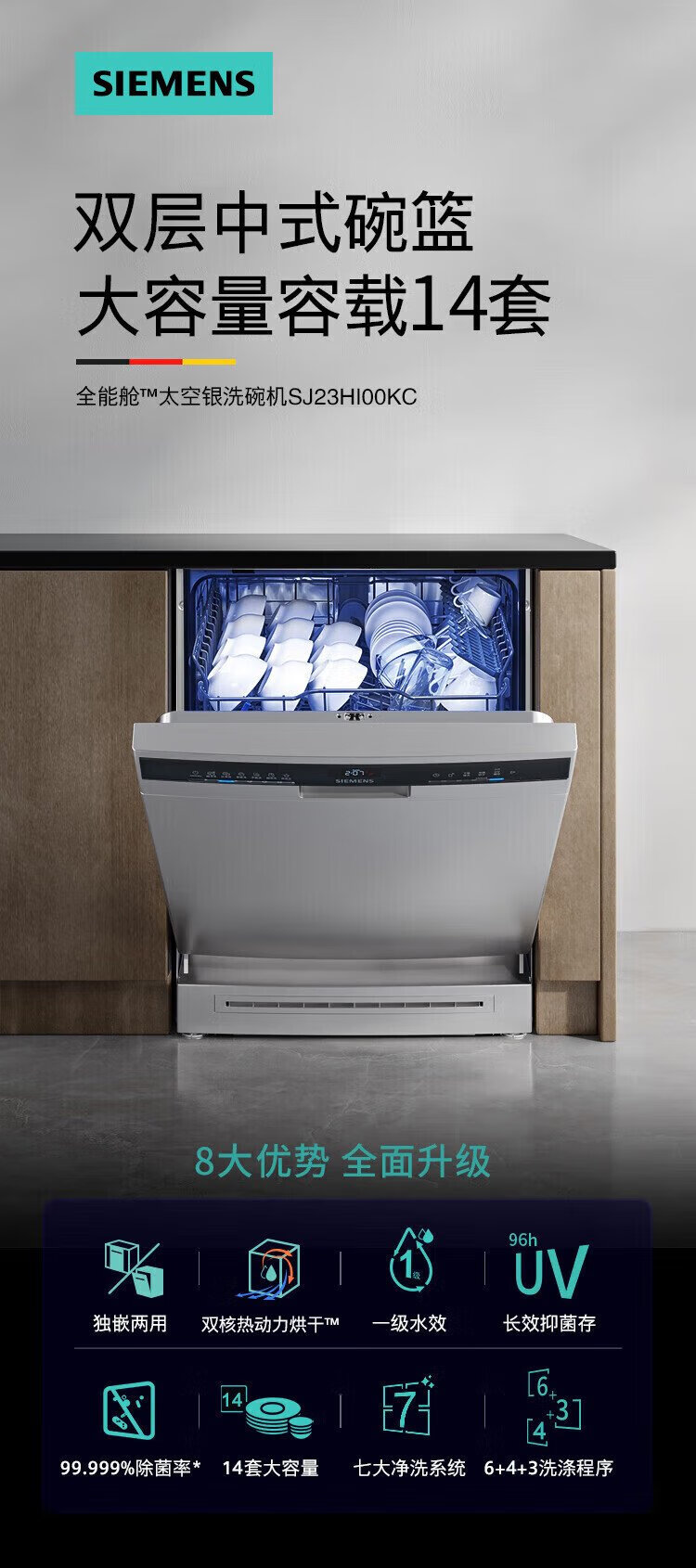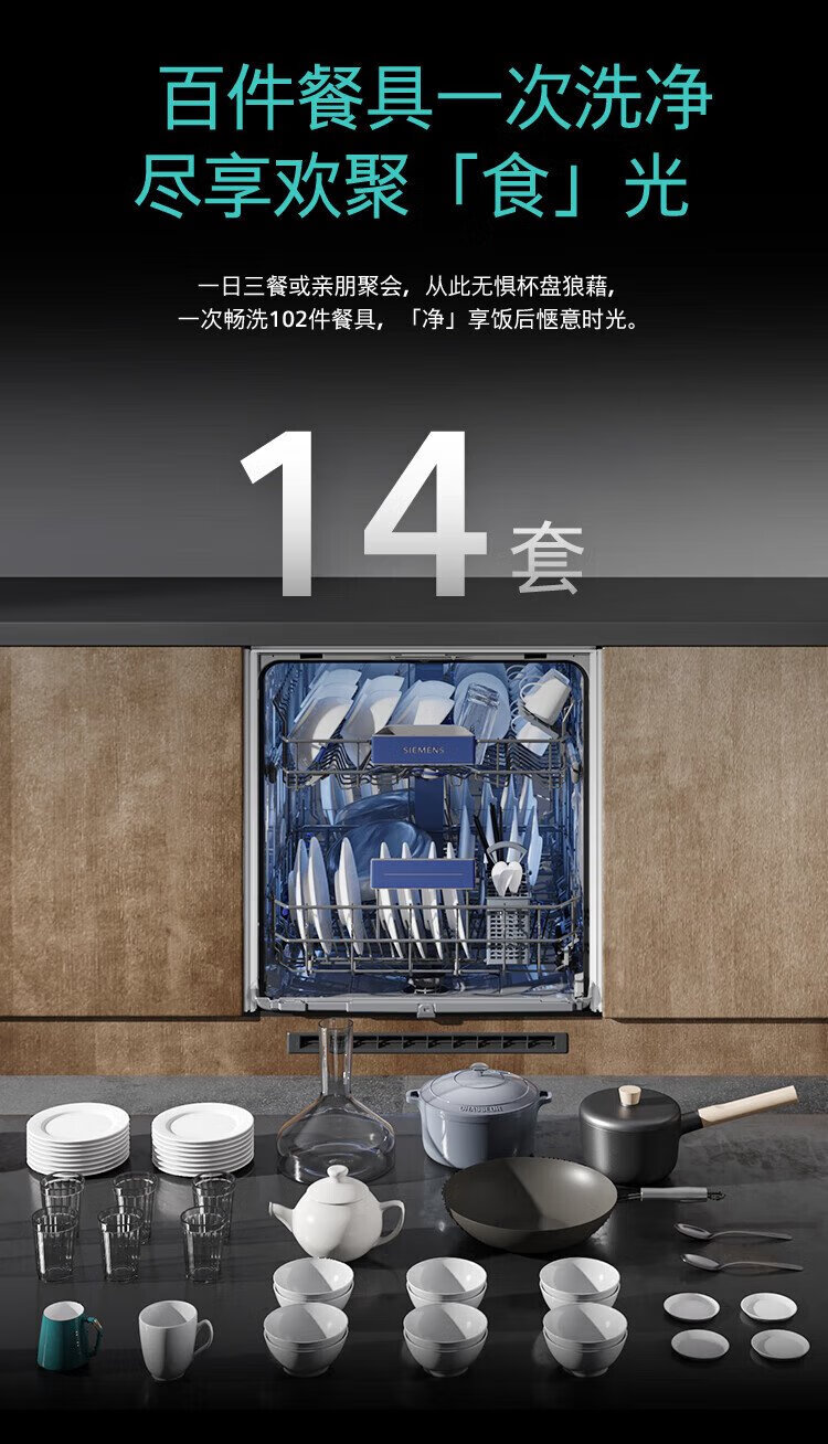 SIEMENS 14+2 sets of independent dual-purpose all-purpose cabin dishwasher, first-class water efficiency, precise vortex washing, dynamic circulation drying, 96h storage and sterilization SJ23HI00KC