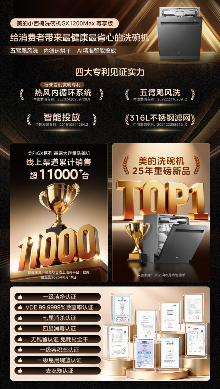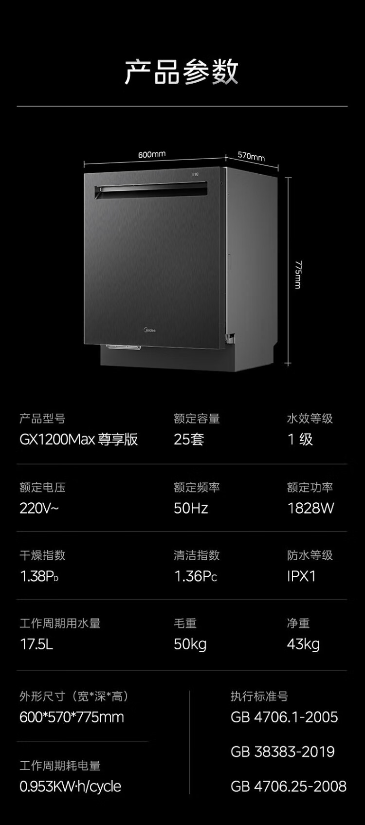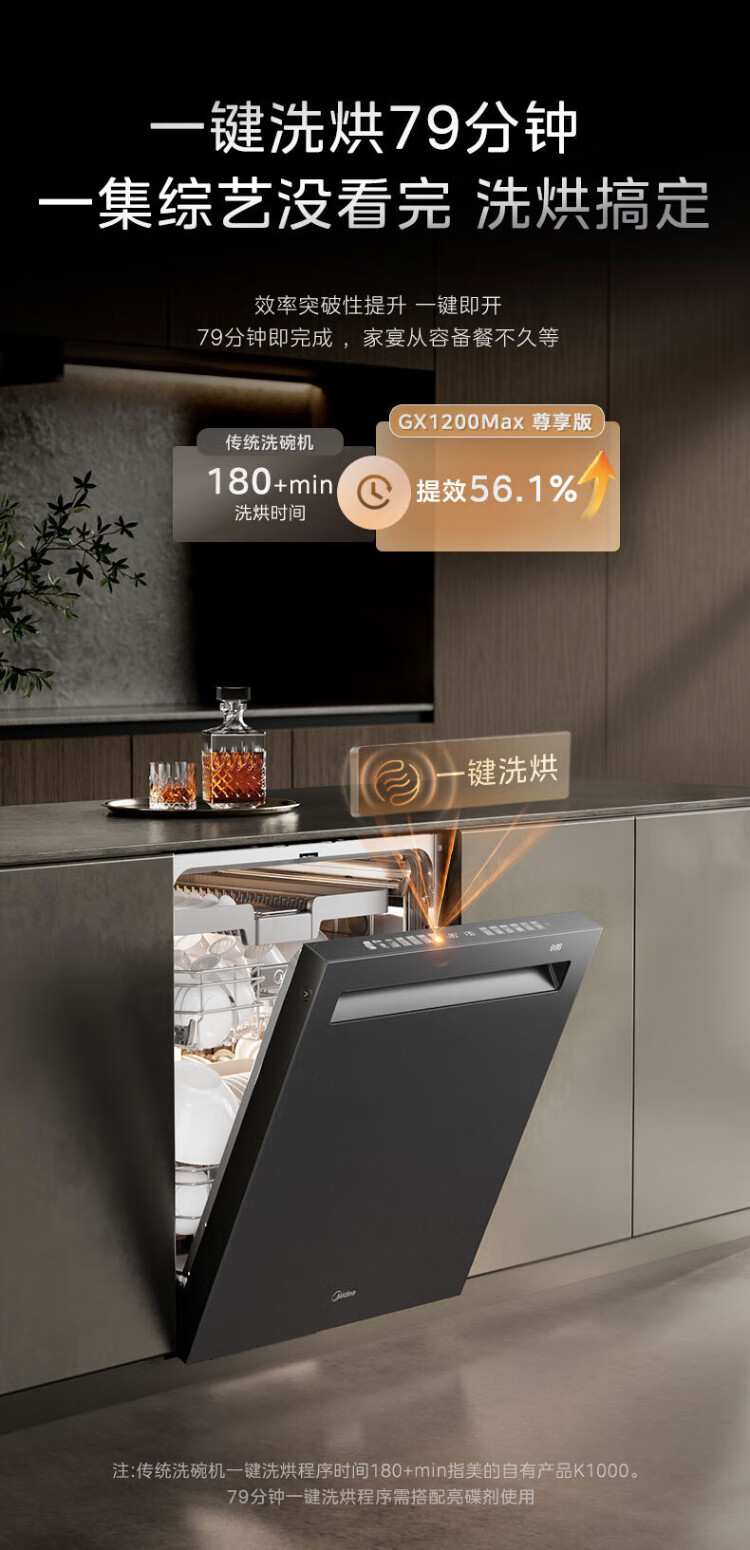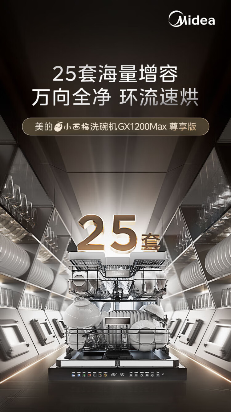 Midea (Midea) 25 sets of Xiaoximei dishwashers GX1200Max exclusive version dishwasher with embedded smart launcher, universal five-arm hurricane wash, internal cycle drying, seven-star disinfection