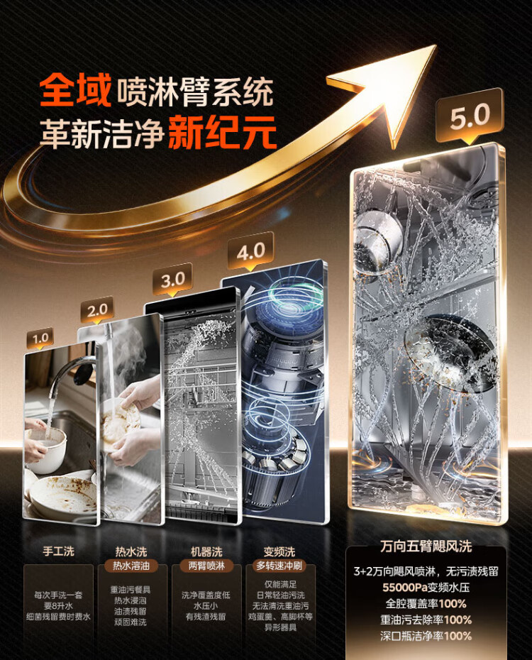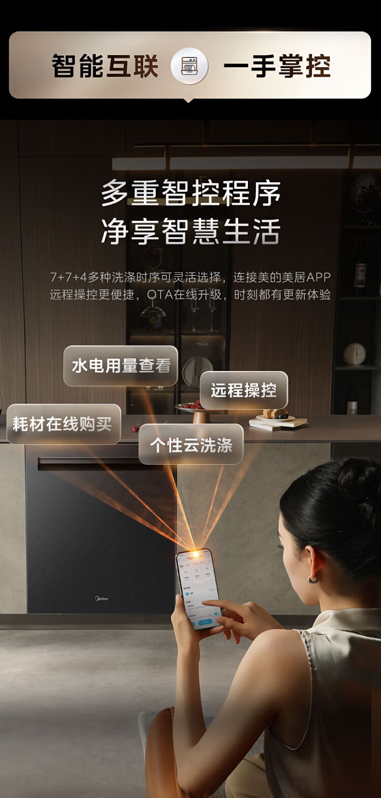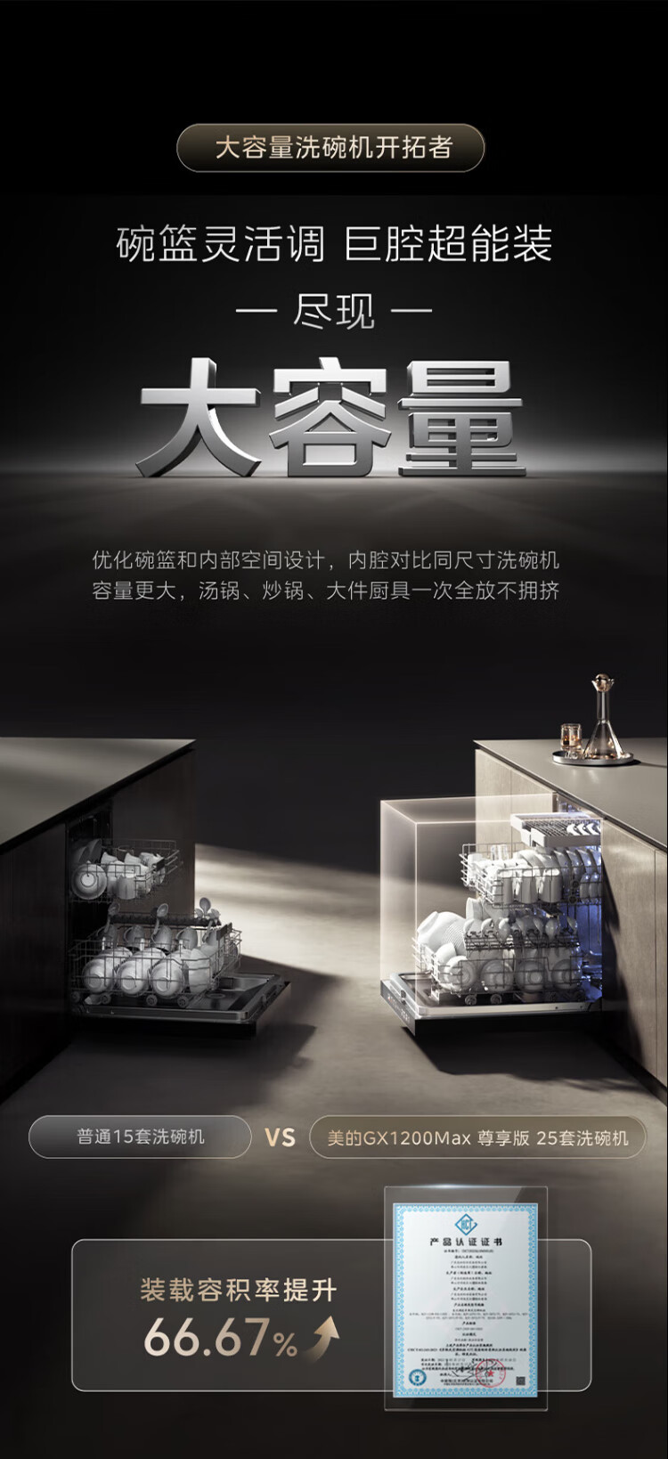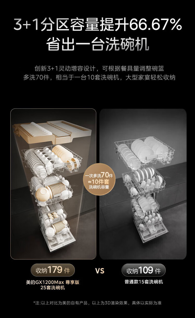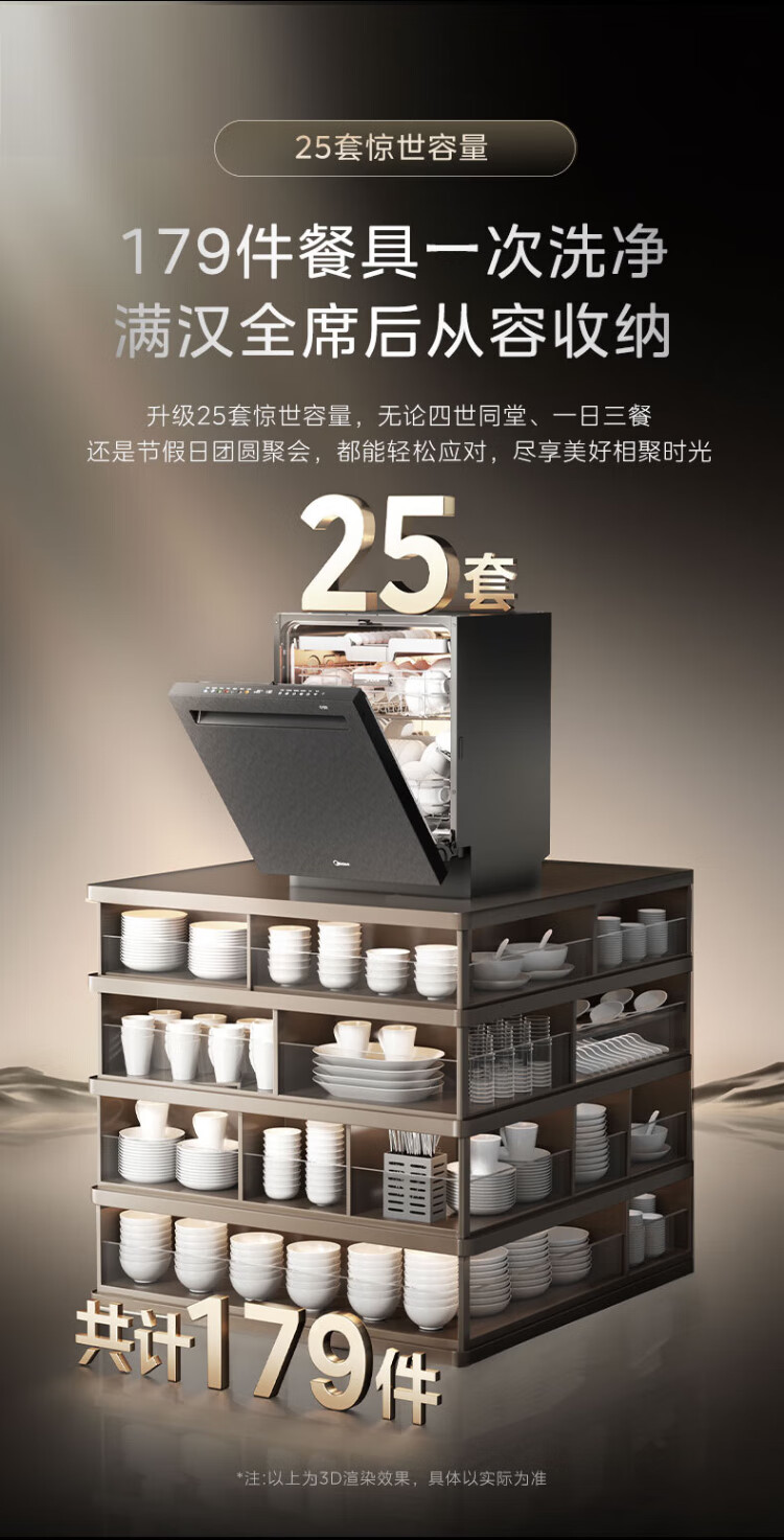 Midea (Midea) 25 sets of Xiaoximei dishwashers GX1200Max exclusive version dishwasher with embedded smart launcher, universal five-arm hurricane wash, internal cycle drying, seven-star disinfection