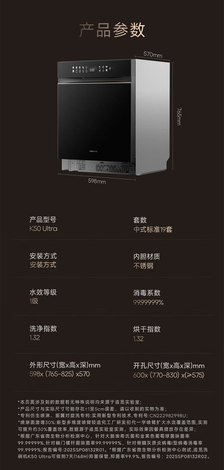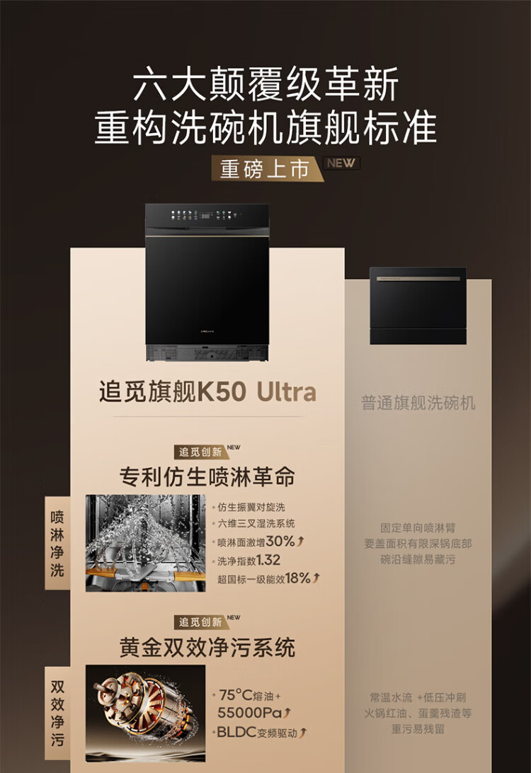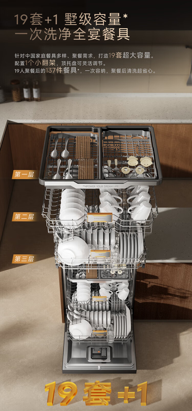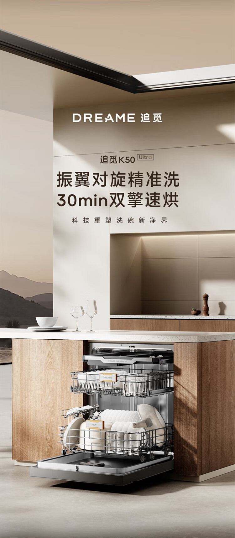 Zhuimi K50 Ultra dishwasher built-in, national subsidy, 19 sets of 3-layer first-class water-effective light plasma sterilization, patented flapping-wing spray arm, high-temperature drying, maternal and infant disinfection