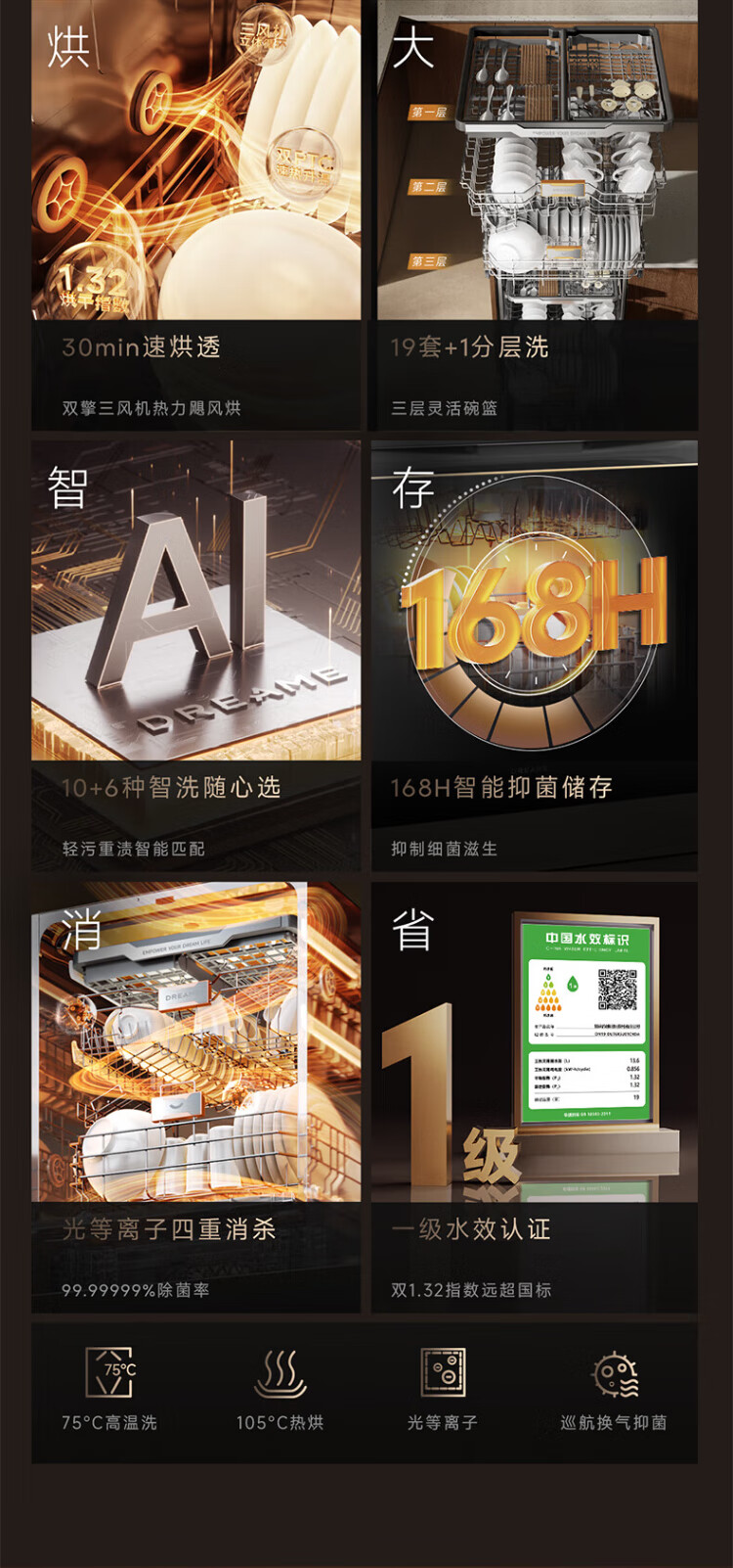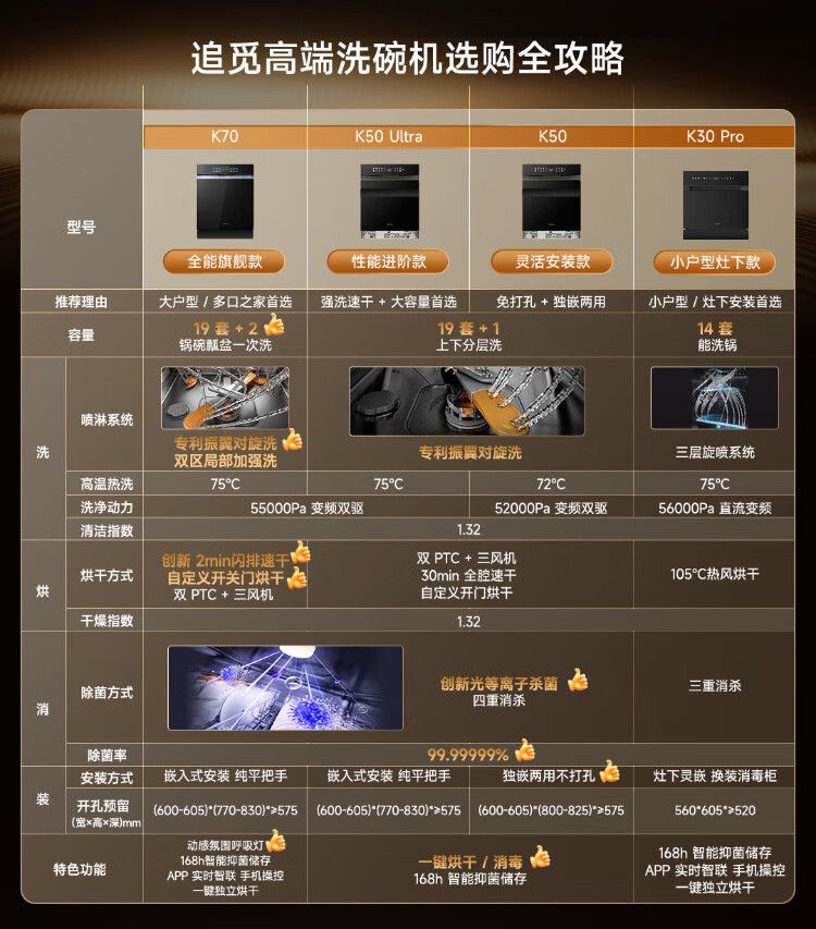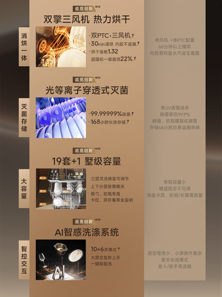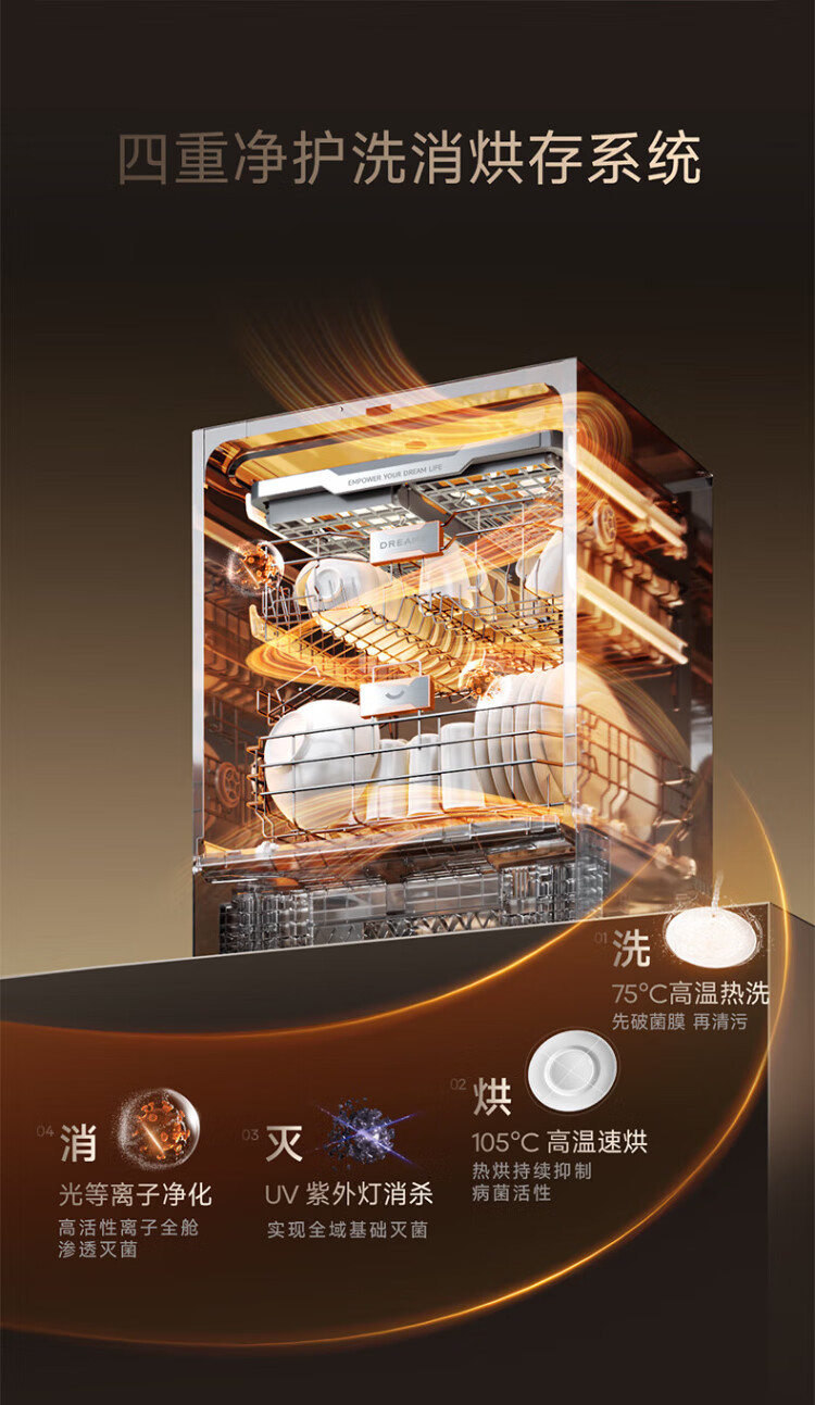 Zhuimi K50 Ultra dishwasher built-in, national subsidy, 19 sets of 3-layer first-class water-effective light plasma sterilization, patented flapping-wing spray arm, high-temperature drying, maternal and infant disinfection