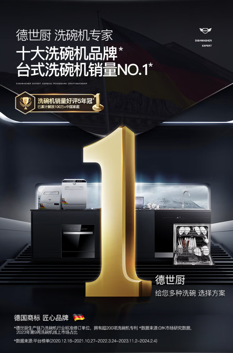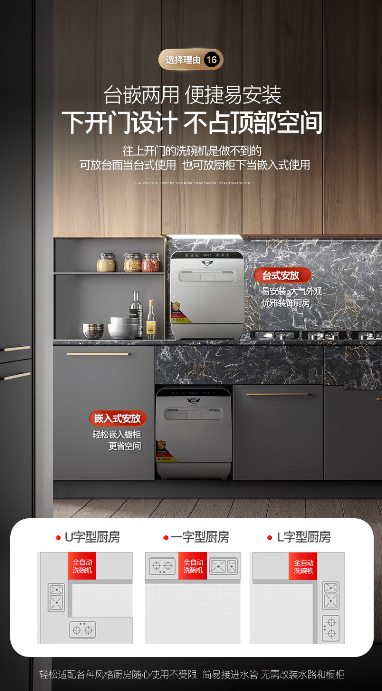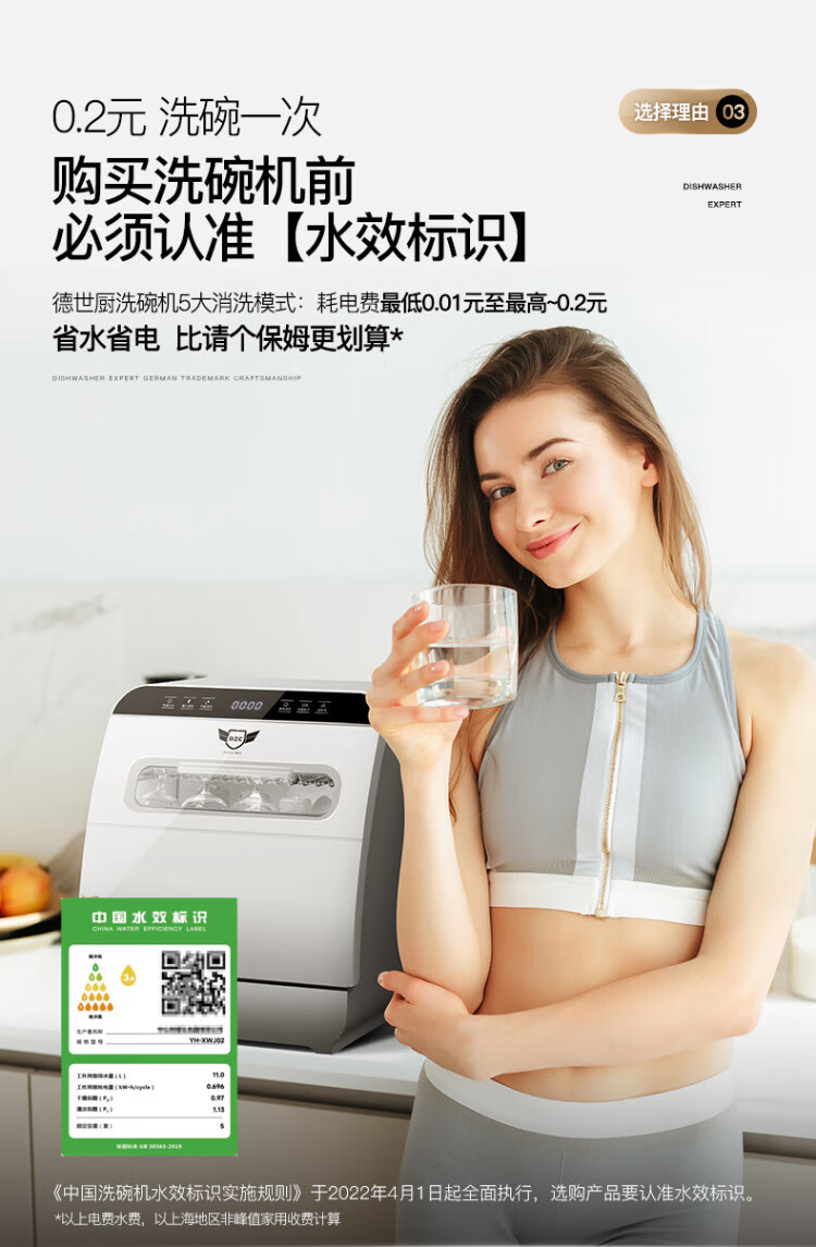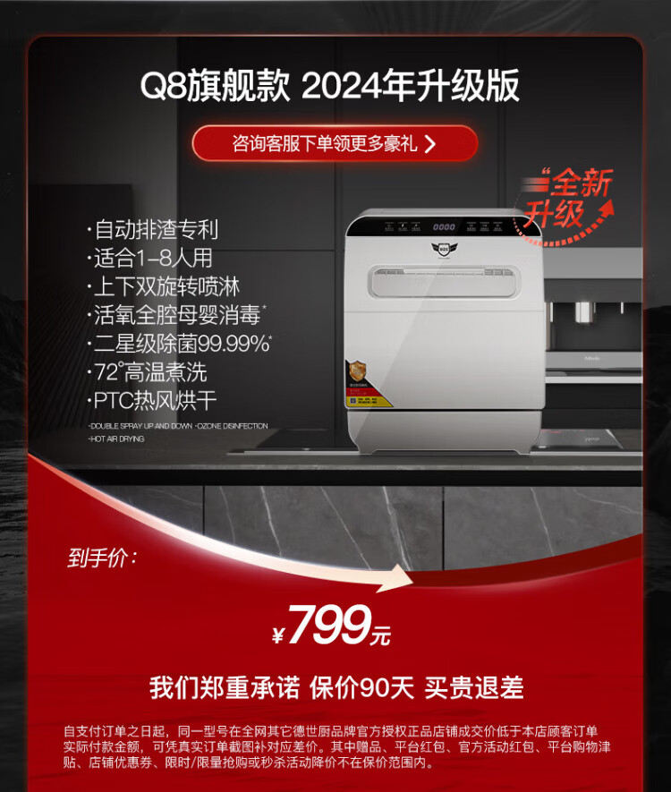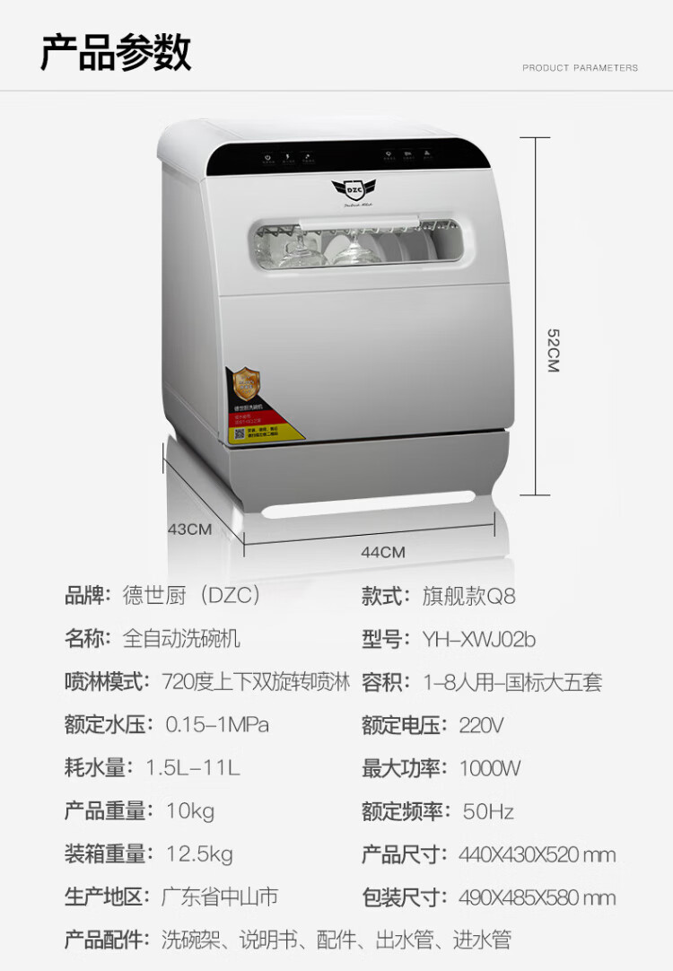 Deshi Kitchen Dishwasher 8 people large capacity set upper and lower double spray small household intelligent fully automatic desktop embedded hot air drying active oxygen sterilization and disinfection Q8 energy saving and water saving dishwasher Q8 automatic water supply easy to install suitable for 1-8 people