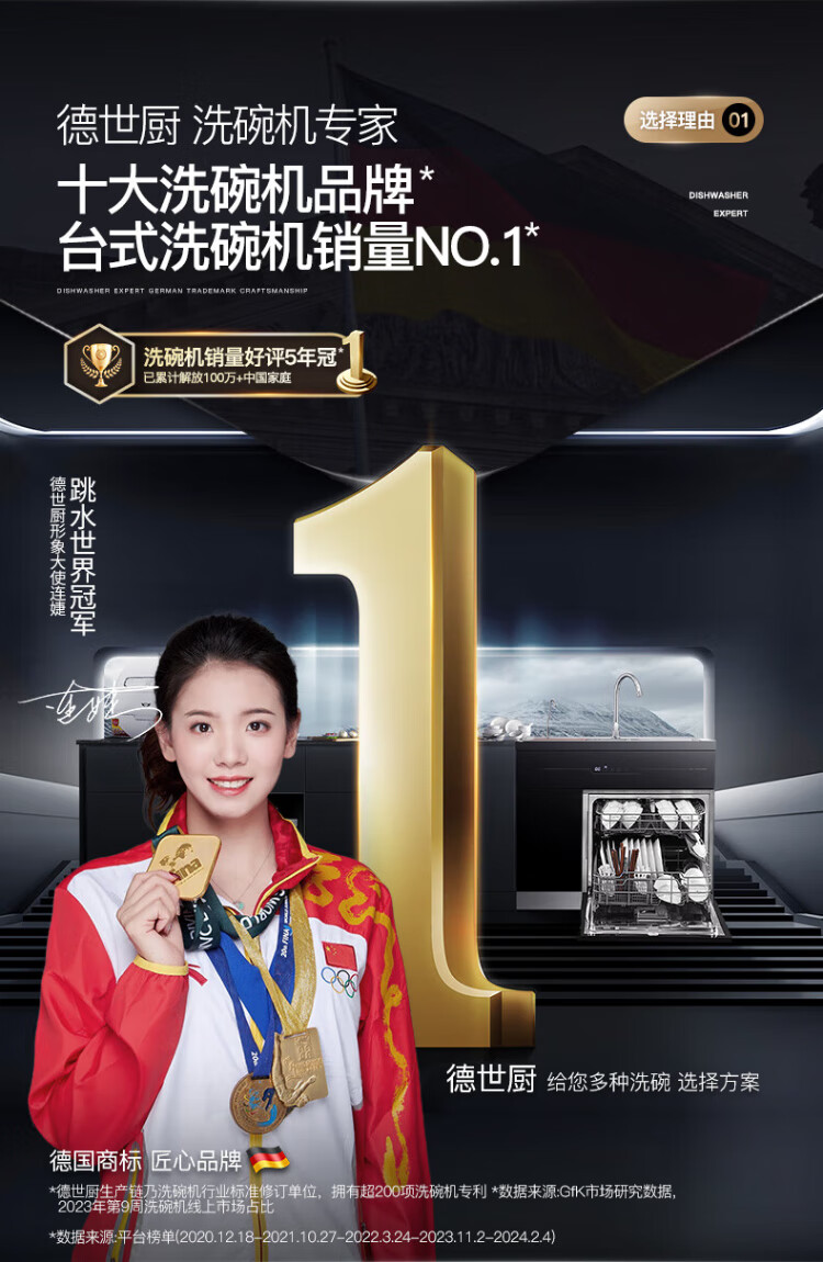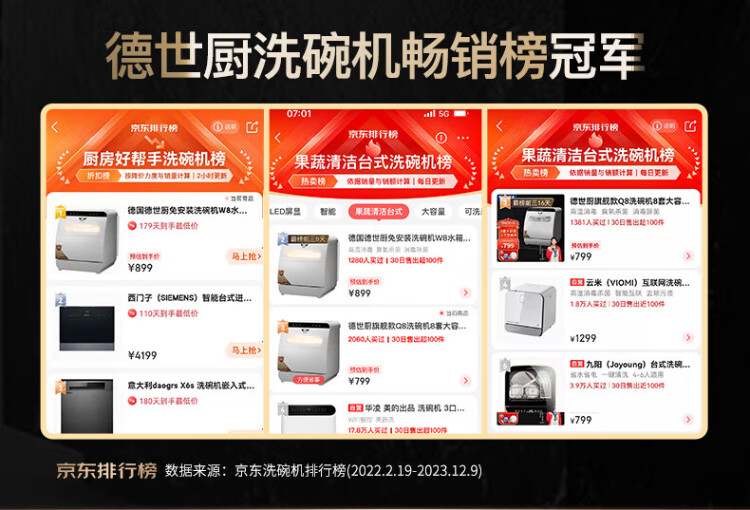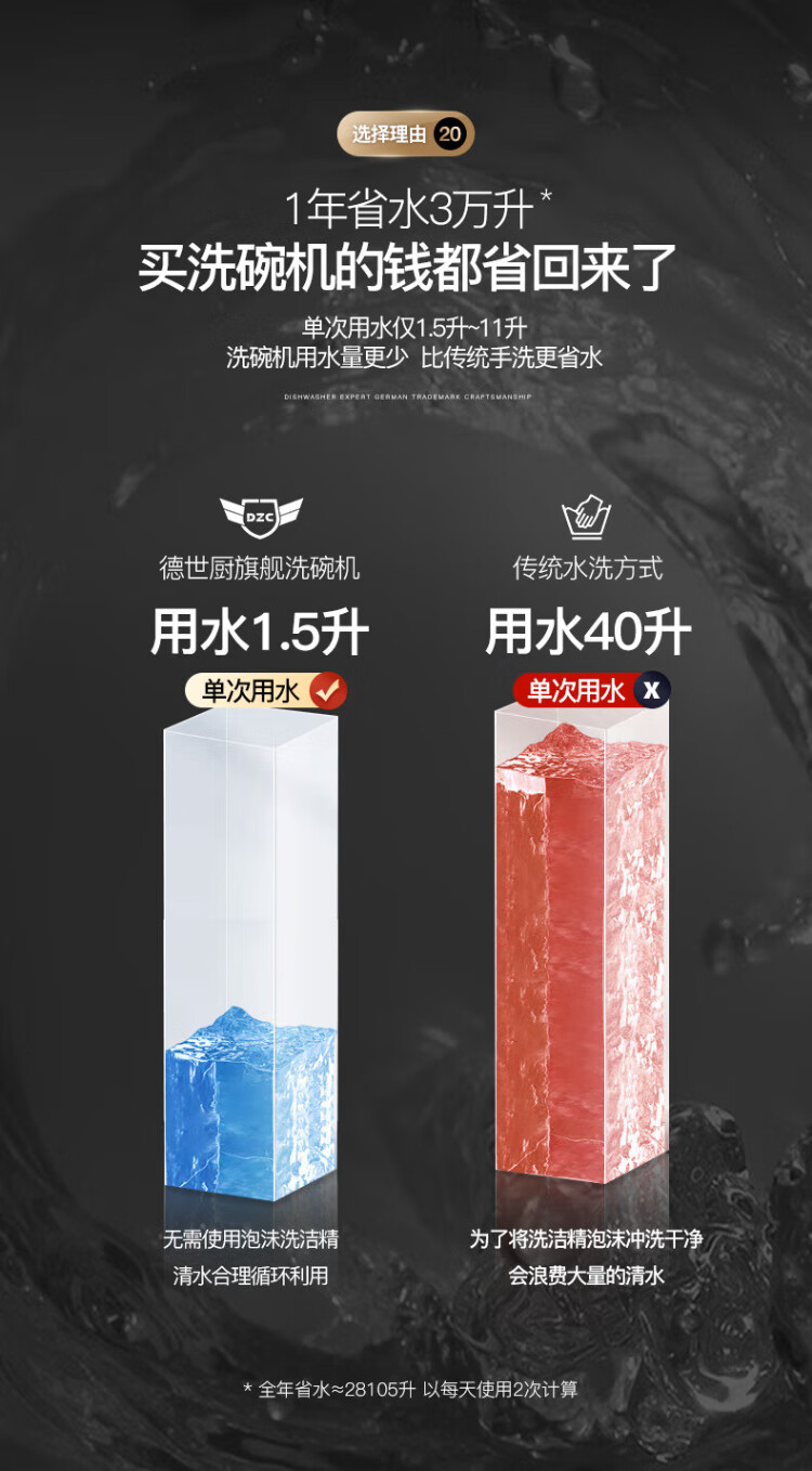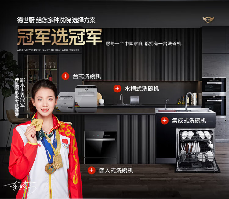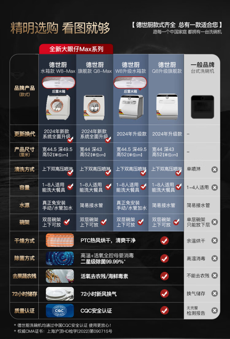 Deshi Kitchen Dishwasher 8 people large capacity set upper and lower double spray small household intelligent fully automatic desktop embedded hot air drying active oxygen sterilization and disinfection Q8 energy saving and water saving dishwasher Q8 automatic water supply easy to install suitable for 1-8 people