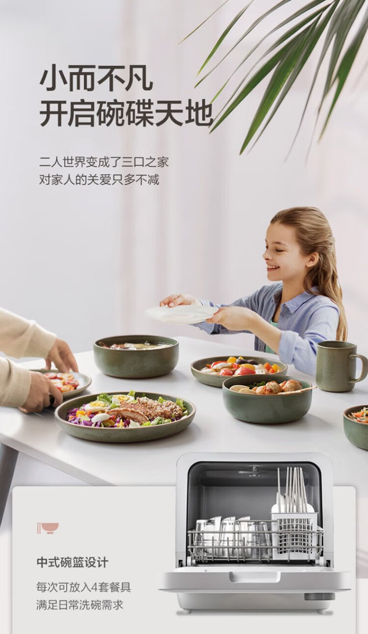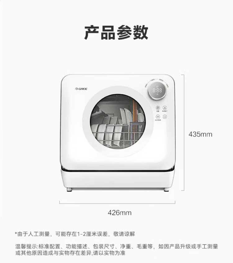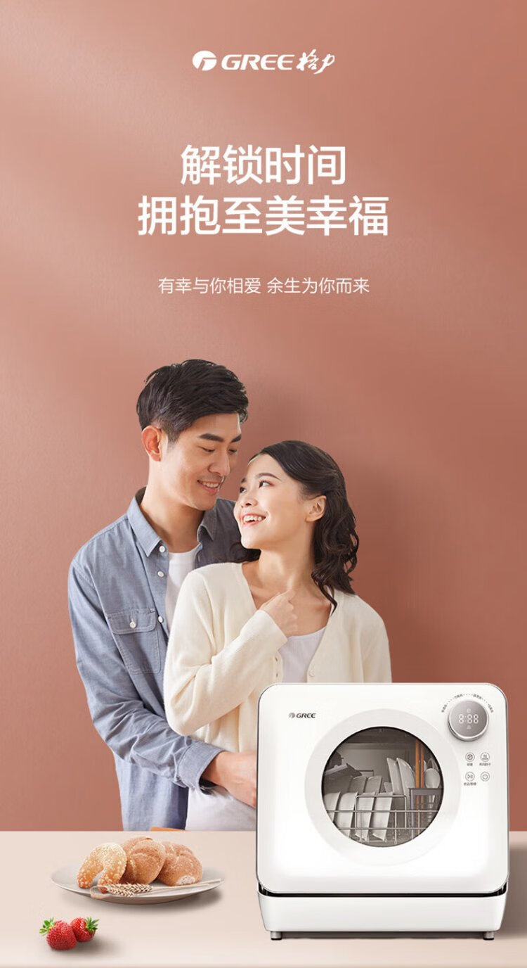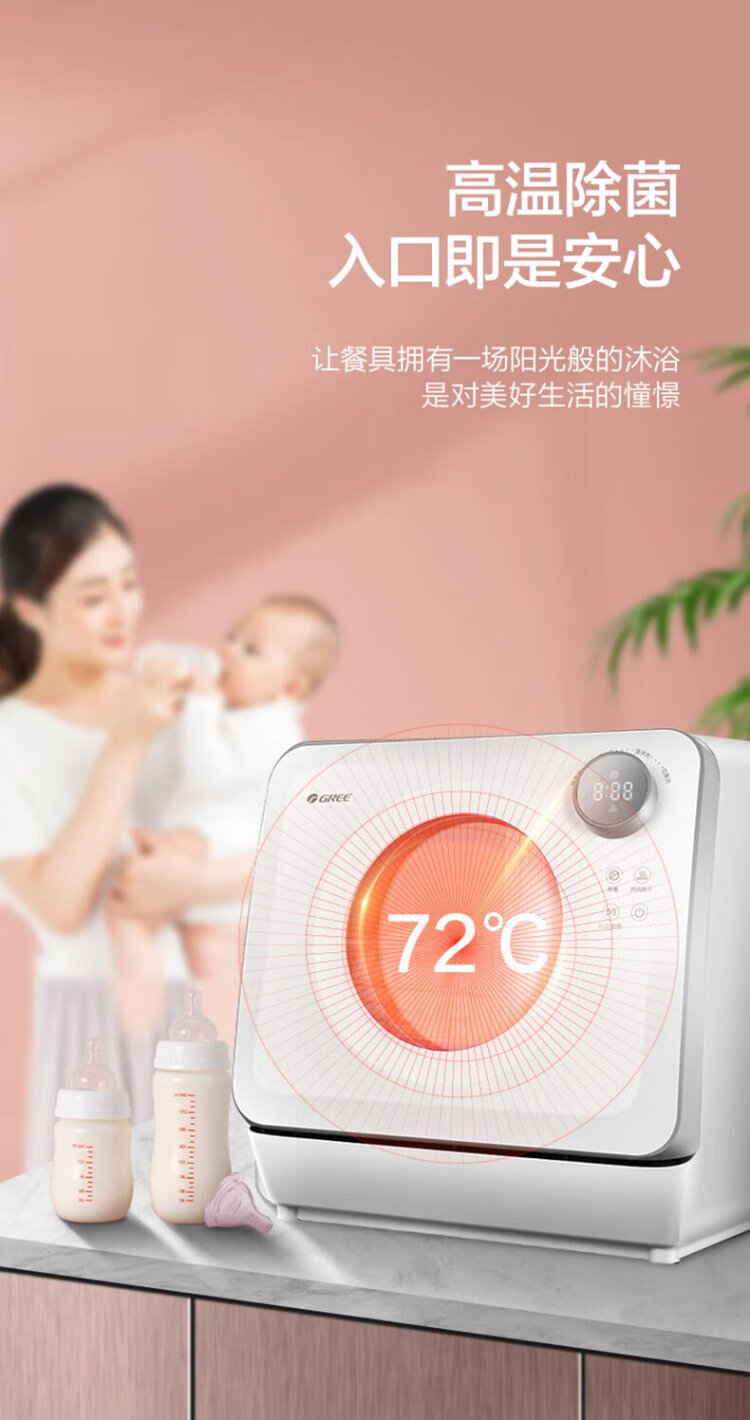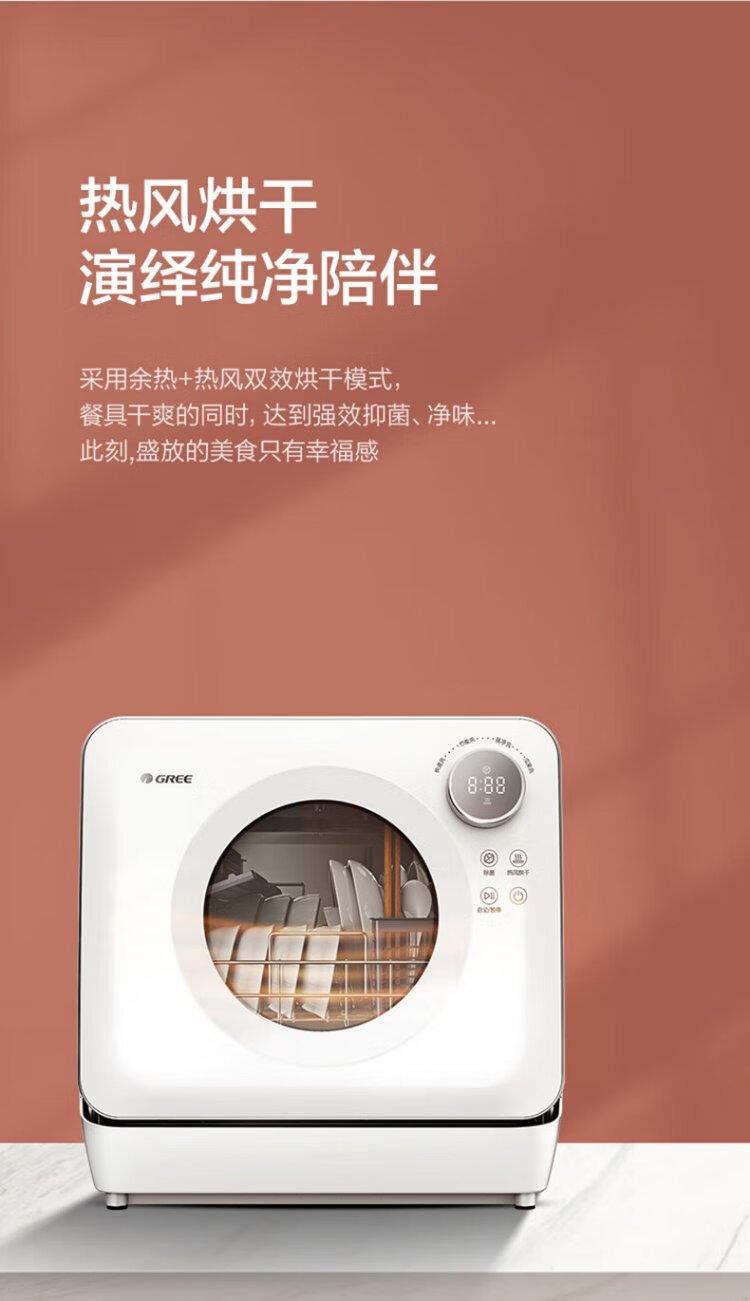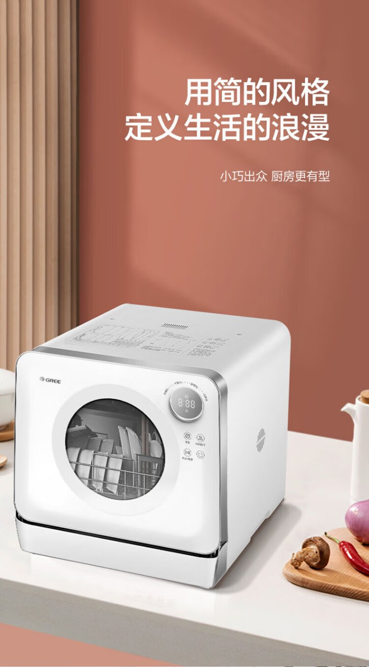 Gree fully automatic household mini desktop dishwasher 3/4 sets of high temperature hot air drying, sterilization, deodorization and easy installation low consumption and water saving integrated washing and drying dishwasher WQP4-04bR