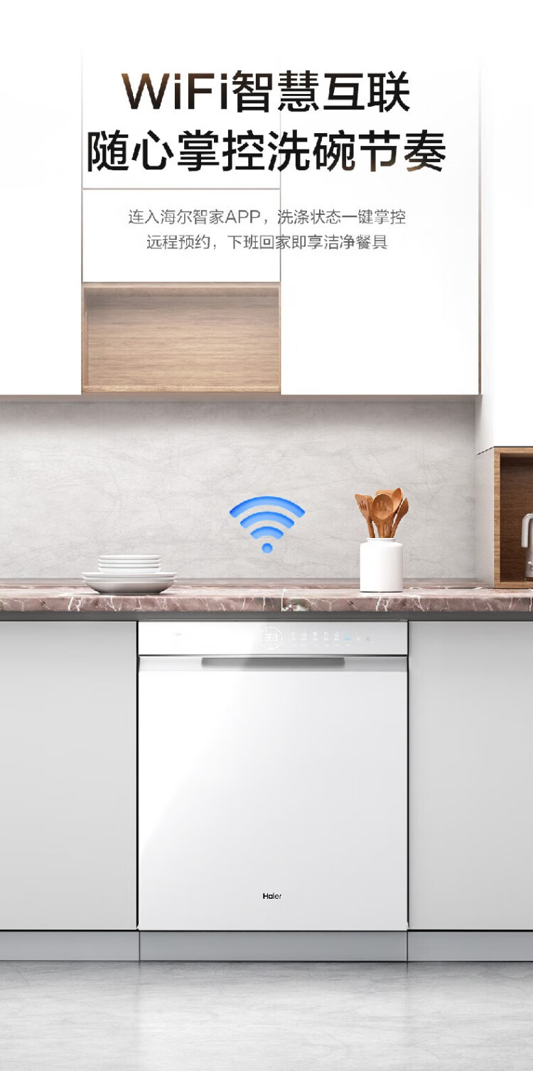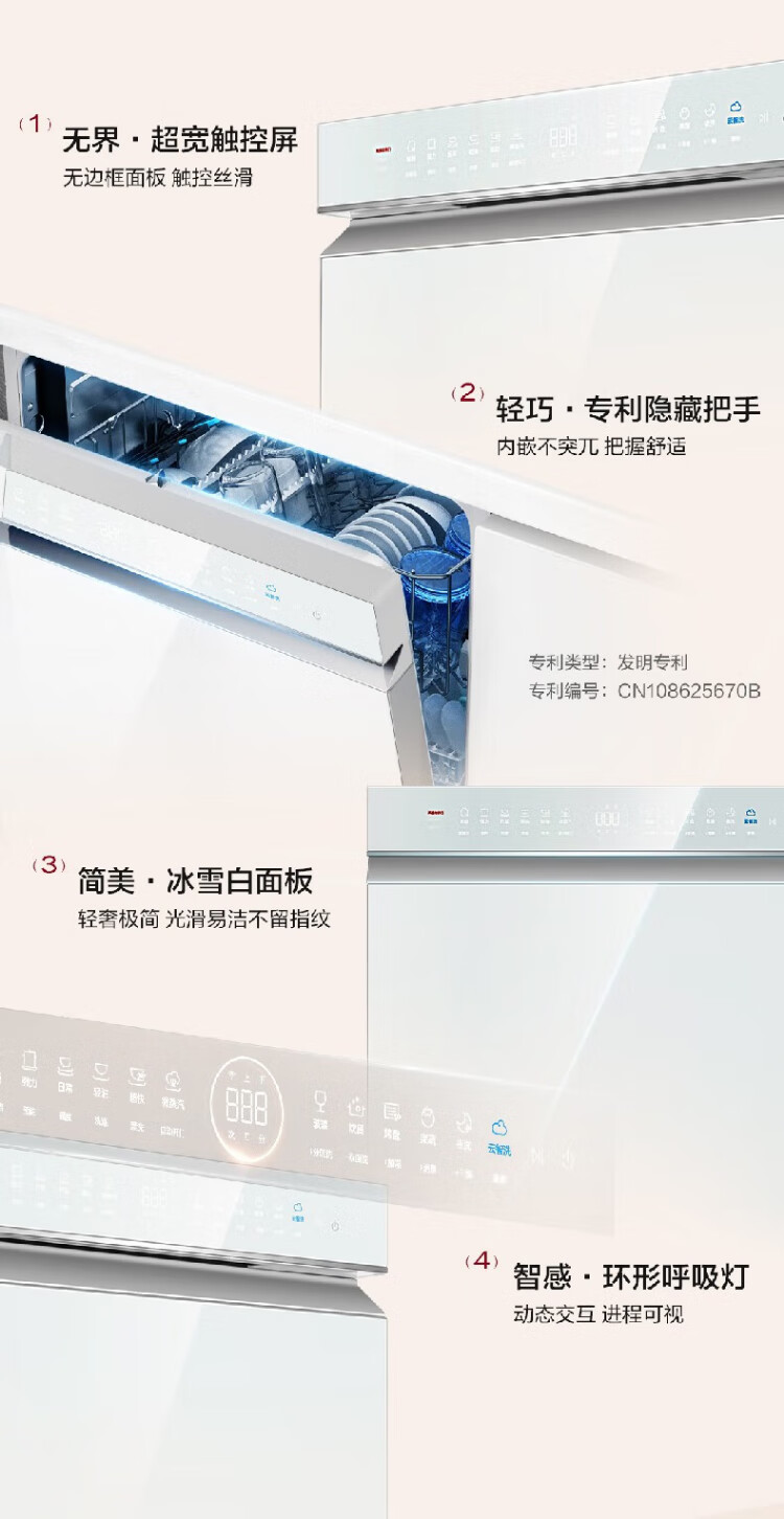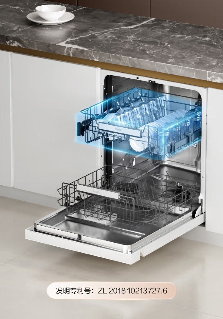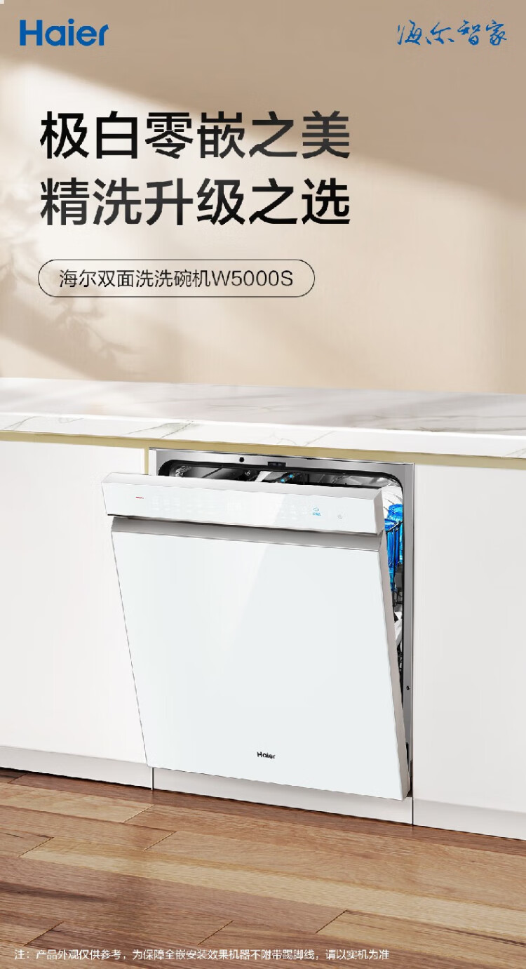 Haier white 15 sets double-sided dishwasher Yunxi W5000S embedded large-capacity fully automatic home smart frequency conversion first-level energy consumption automatic door opening EYBW152266WE Haier double-sided dishwasher W5000S white