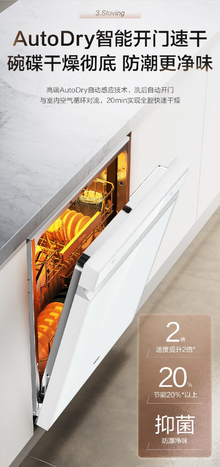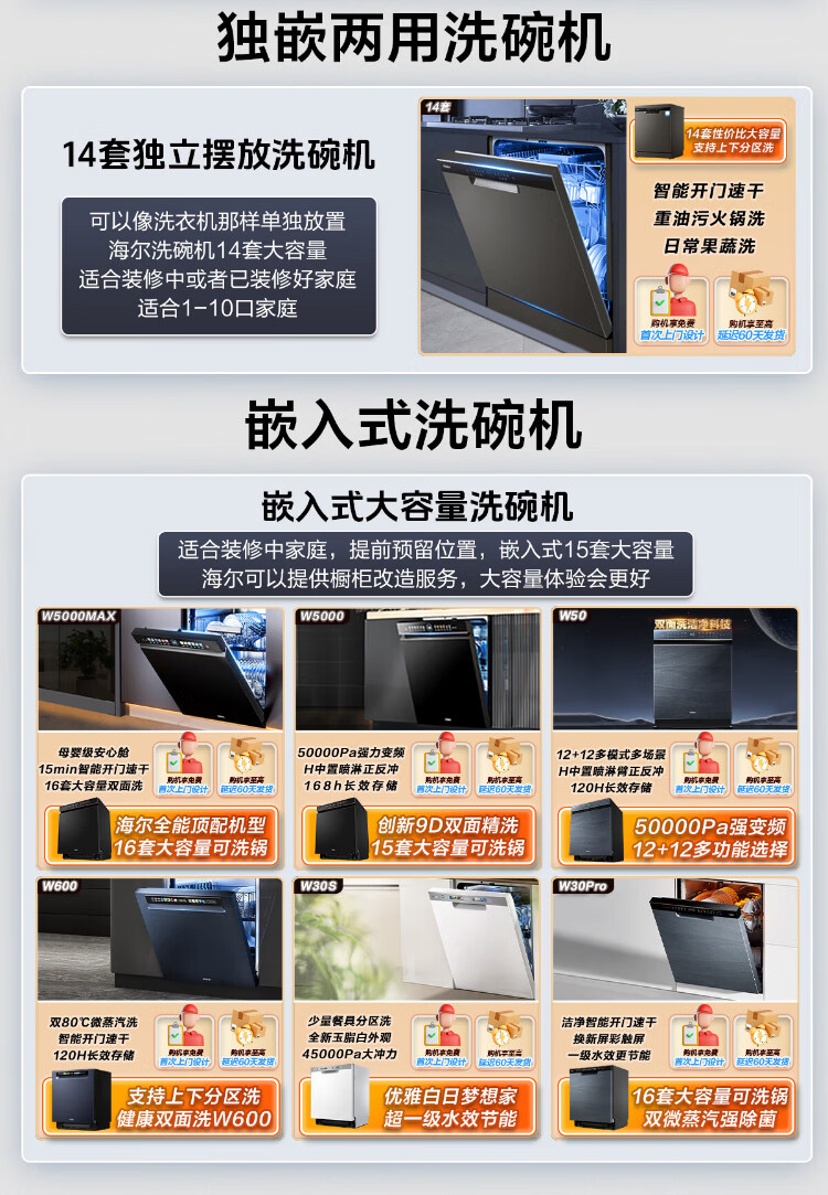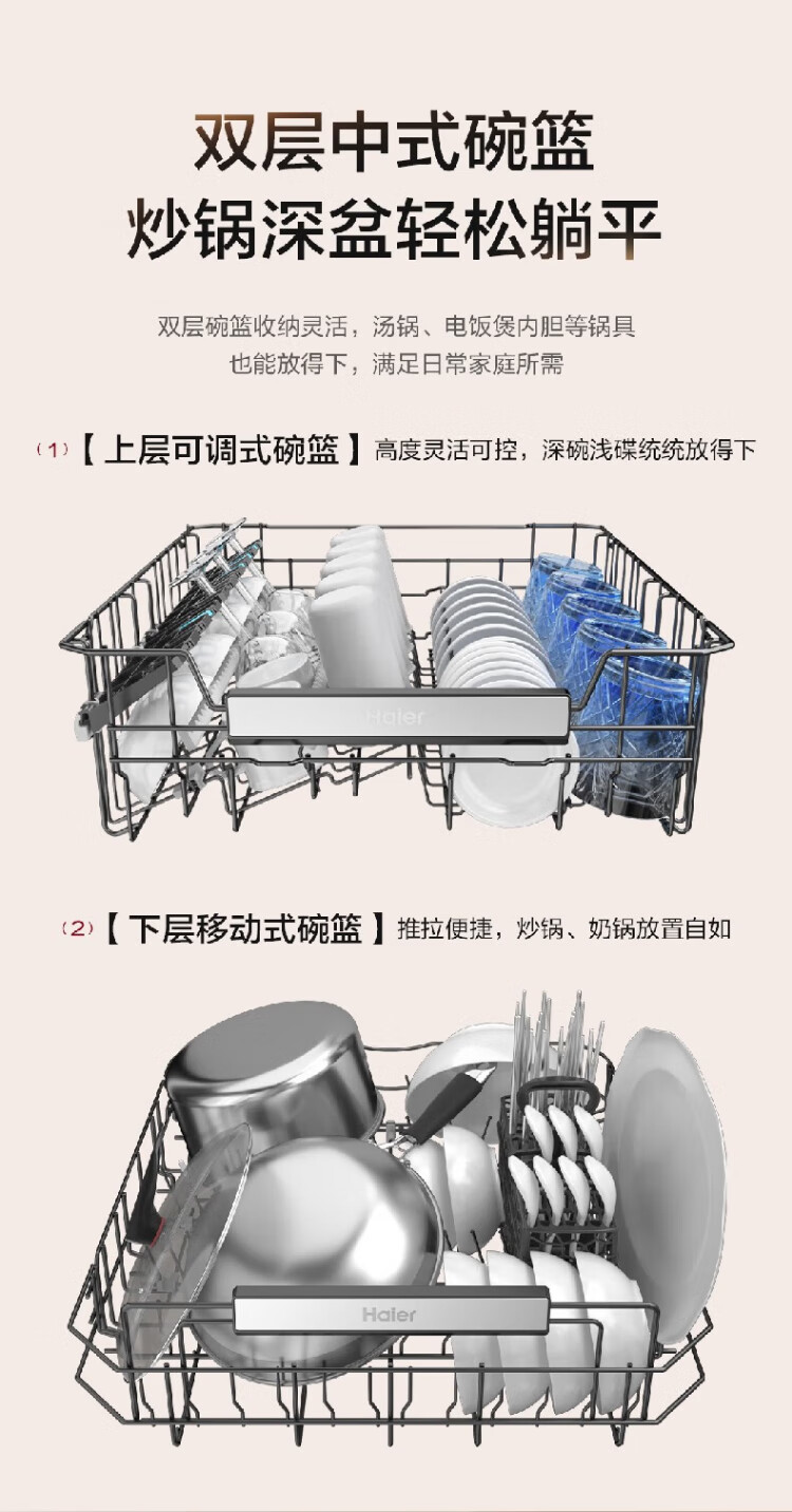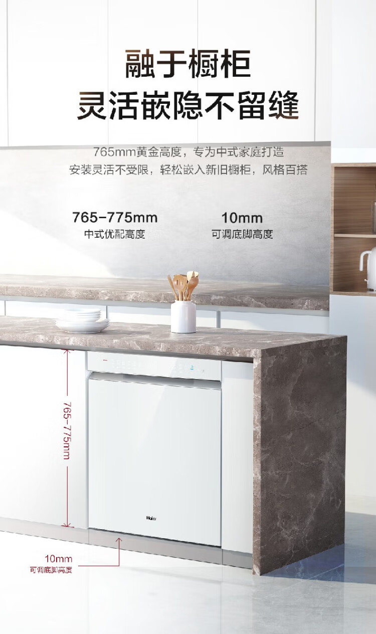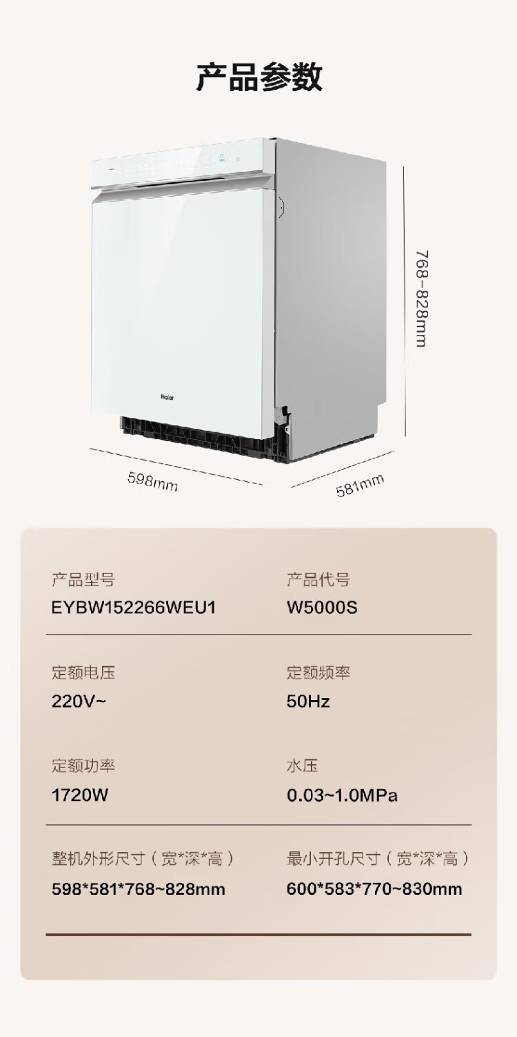 Haier white 15 sets double-sided dishwasher Yunxi W5000S embedded large-capacity fully automatic home smart frequency conversion first-level energy consumption automatic door opening EYBW152266WE Haier double-sided dishwasher W5000S white