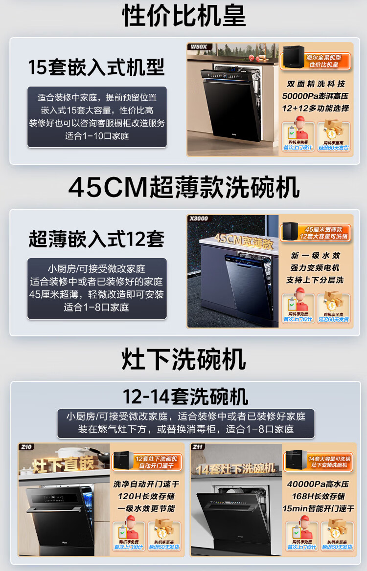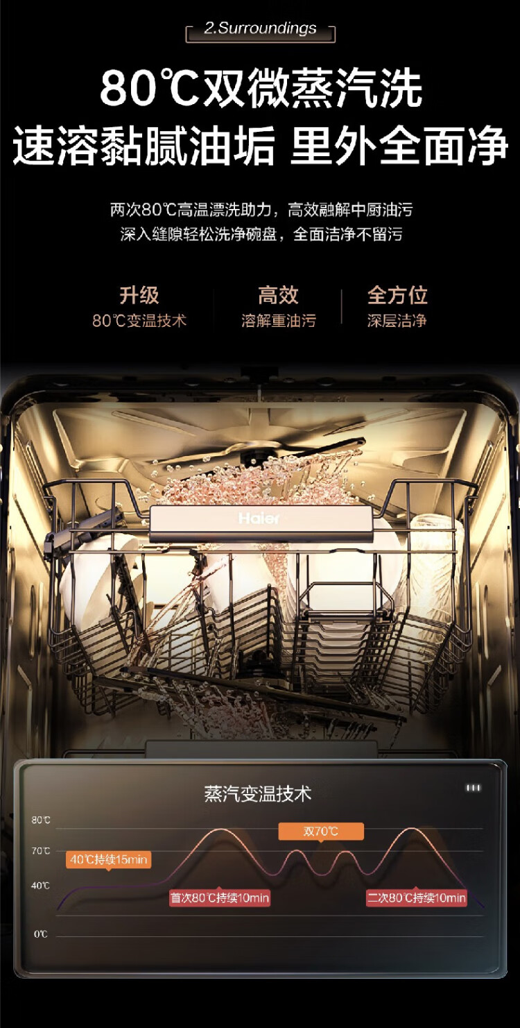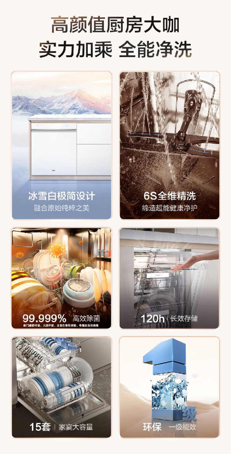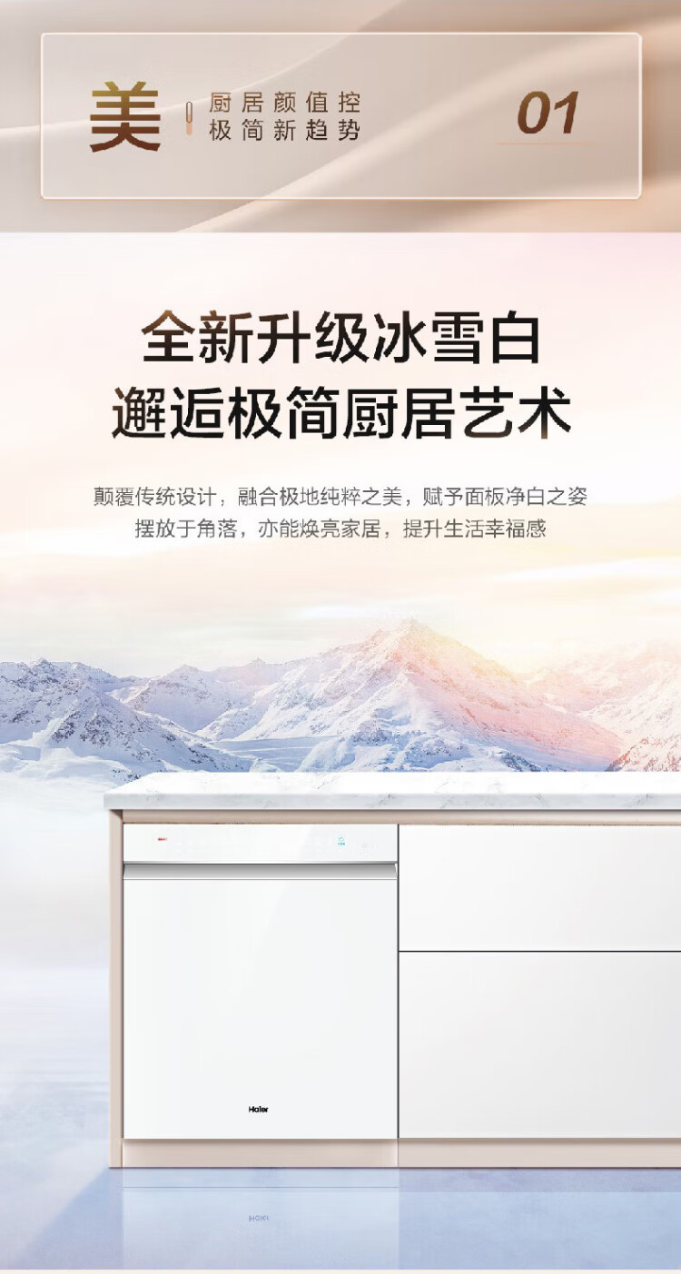 Haier white 15 sets double-sided dishwasher Yunxi W5000S embedded large-capacity fully automatic home smart frequency conversion first-level energy consumption automatic door opening EYBW152266WE Haier double-sided dishwasher W5000S white