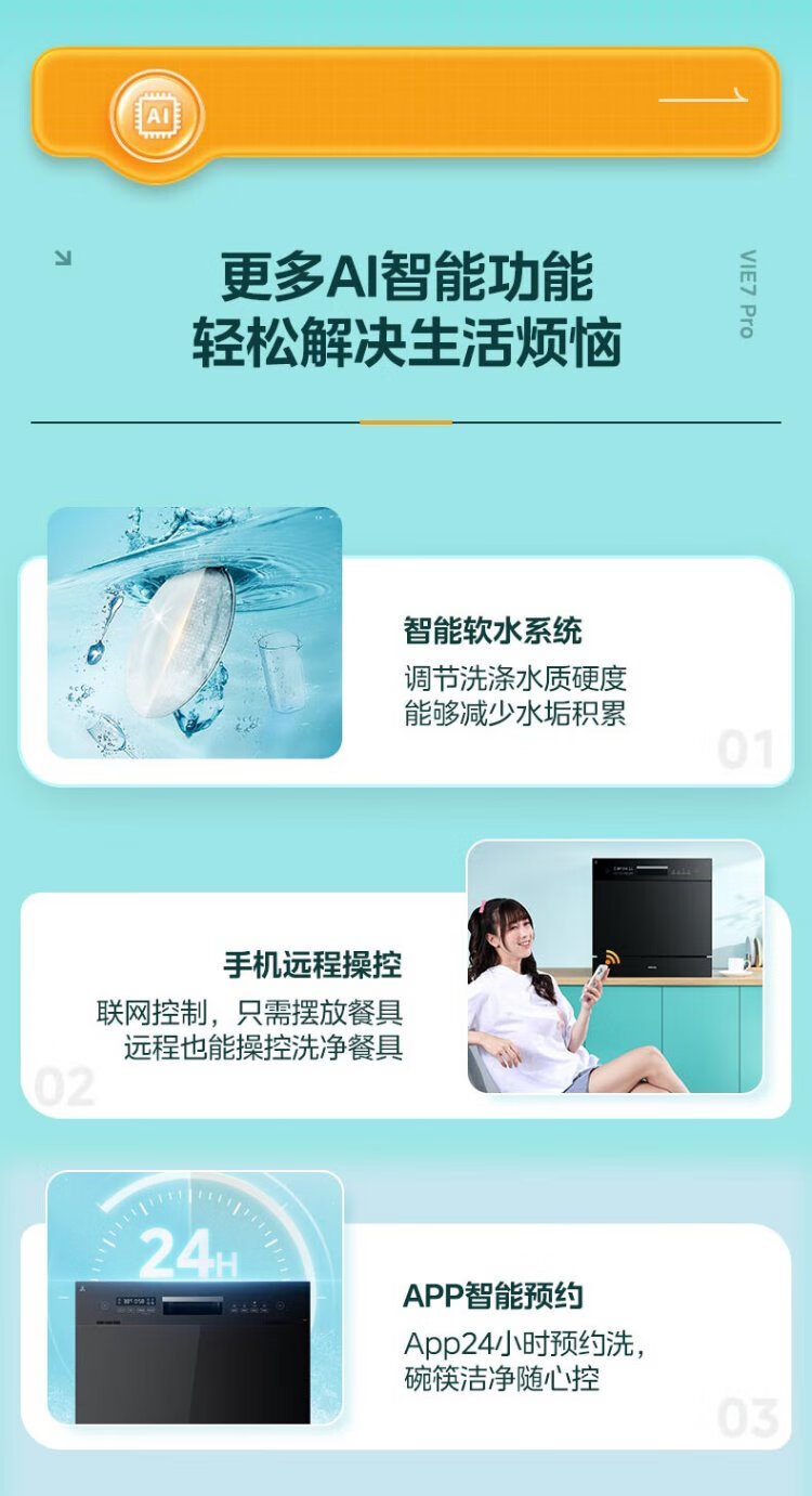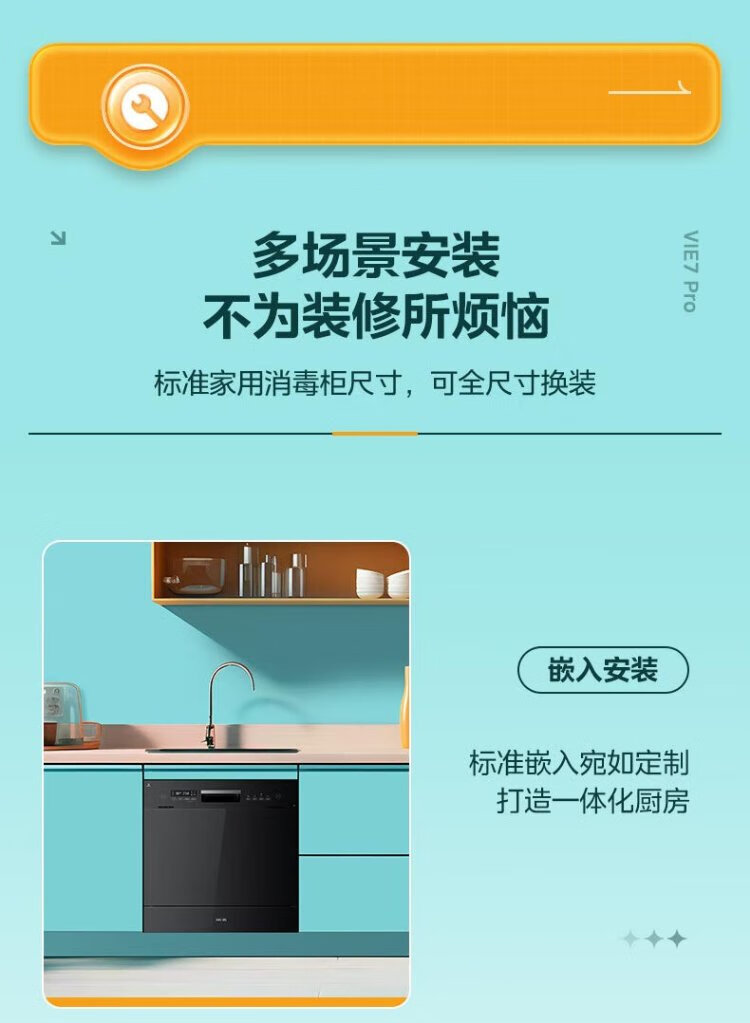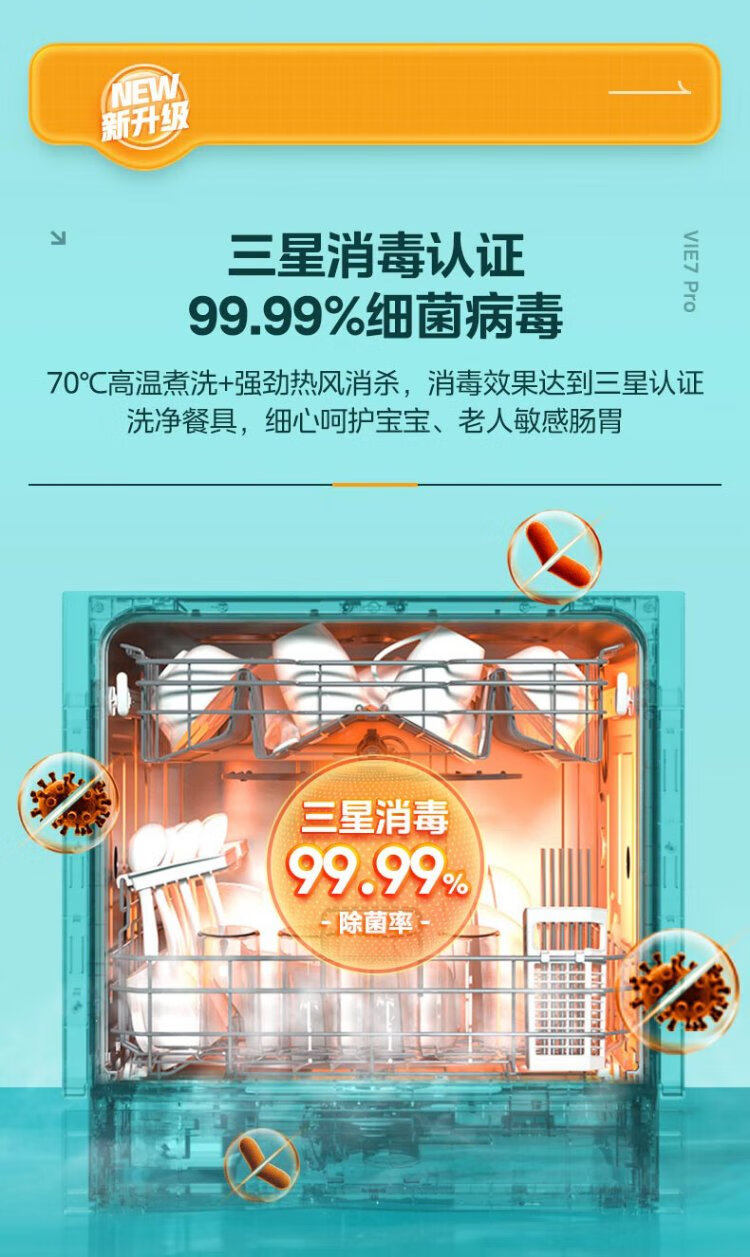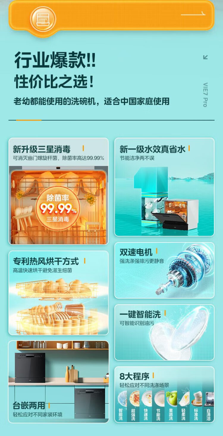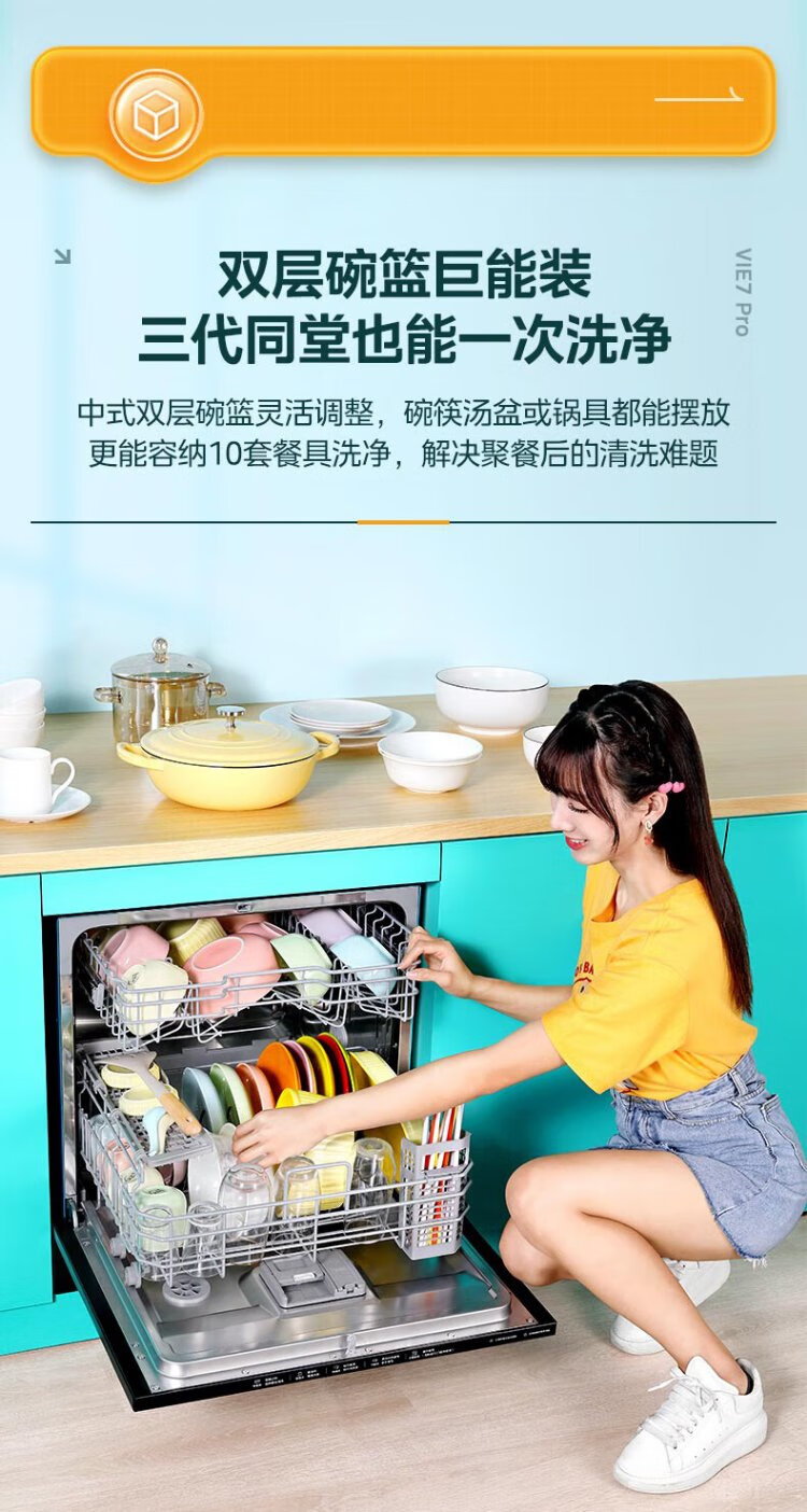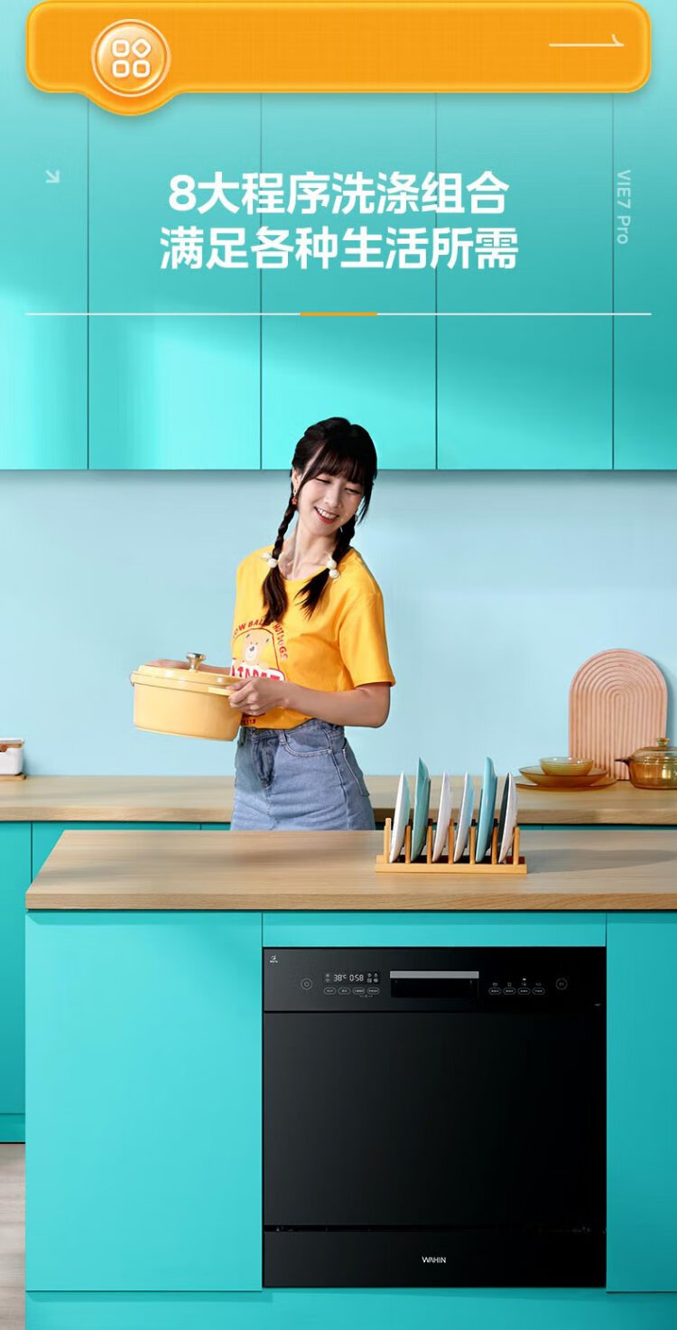 Hualing Vie7Pro dishwasher built-in desktop dual-purpose stove installed under 10 sets of household super-grade water efficiency hot air drying Samsung disinfection, washing, drying and storage all-in-one machine three-purpose desktop built-in stove vie7pro dishwasher