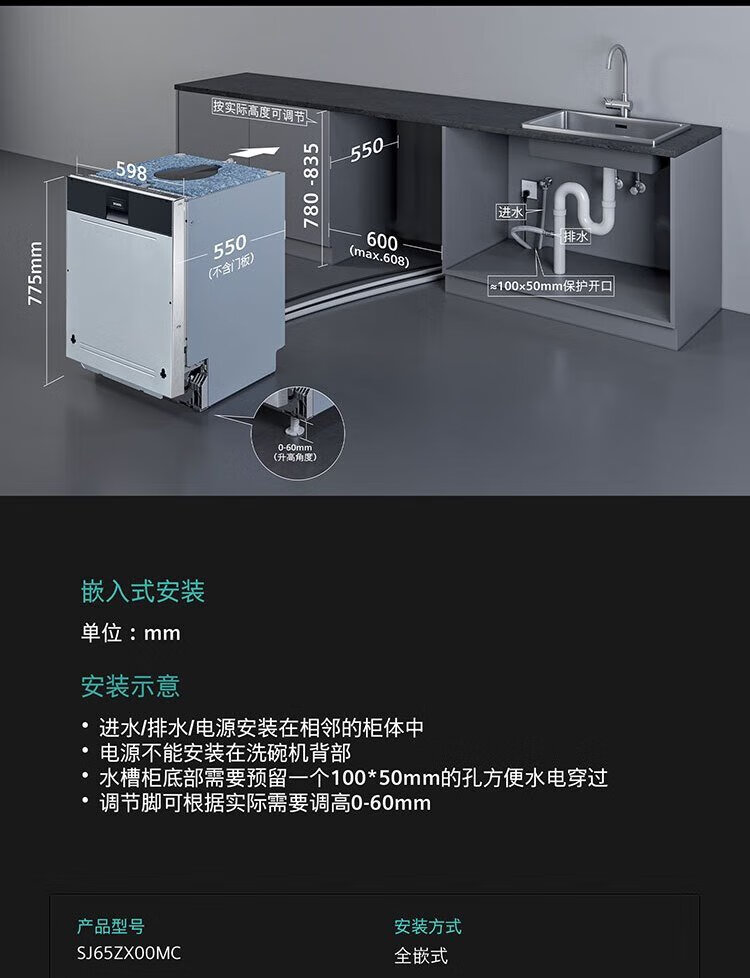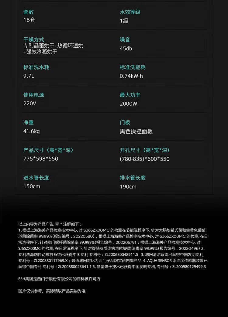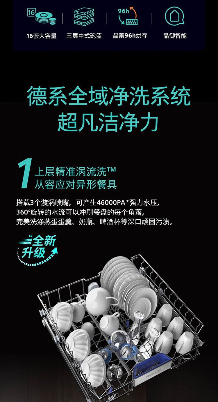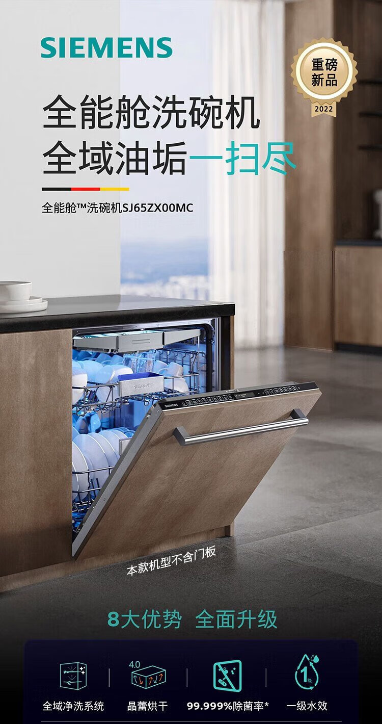 SIEMENS all-purpose cabin dishwasher 16 sets large capacity household built-in crystal bud drying 99.99% sterilization rate 65Z SJ65ZX00MC+ black door panel