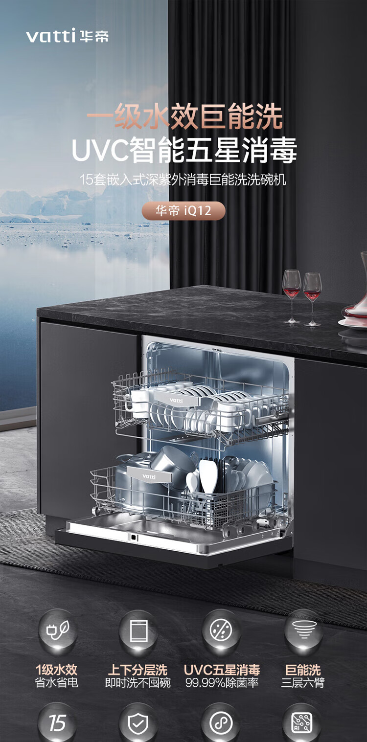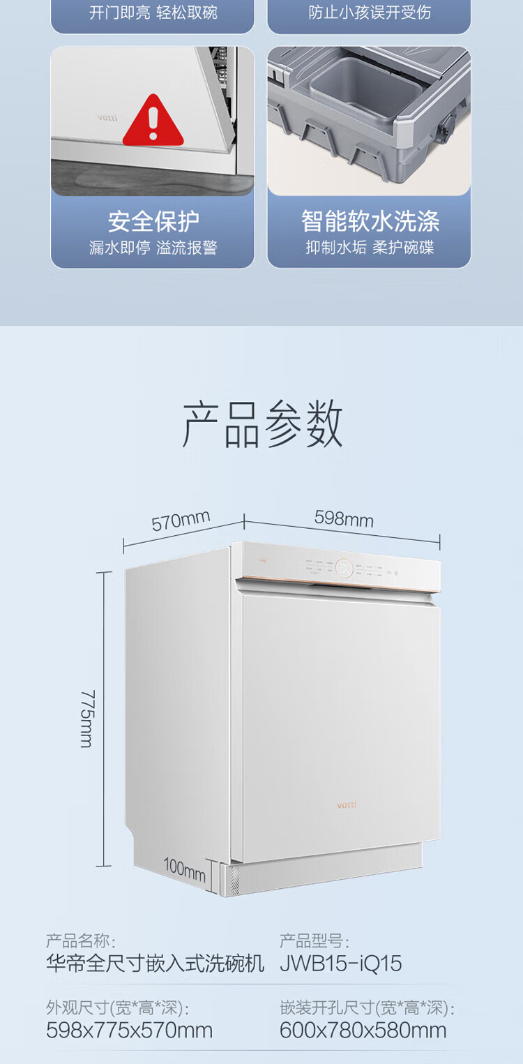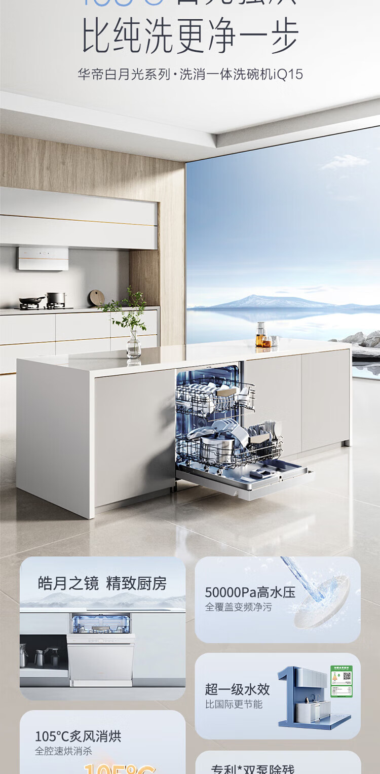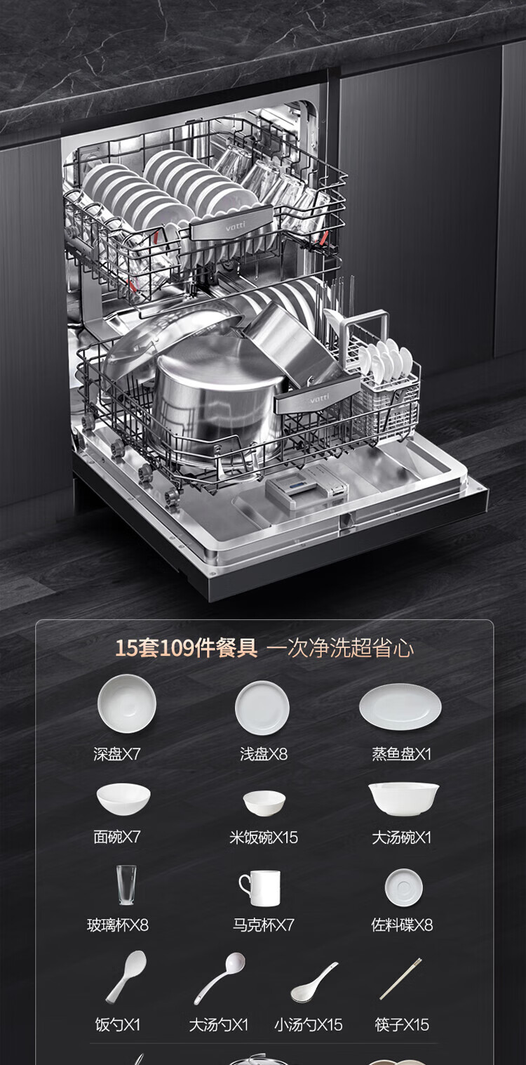 Vantage official dishwasher built-in 15 sets large-capacity spray-type first-class water efficiency high-temperature five-star disinfection 7-day long-lasting storage washing, disinfecting and drying in one White Moonlight washing, disinfecting and drying in one iQ15 single product