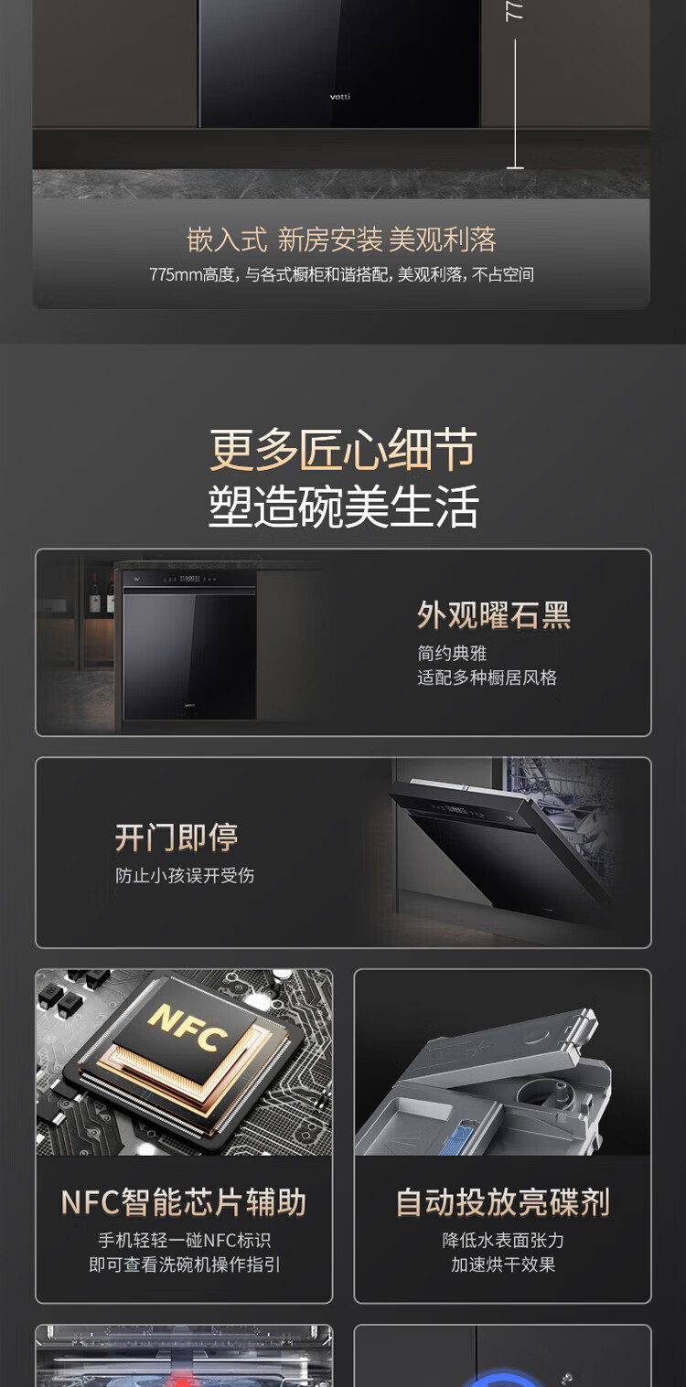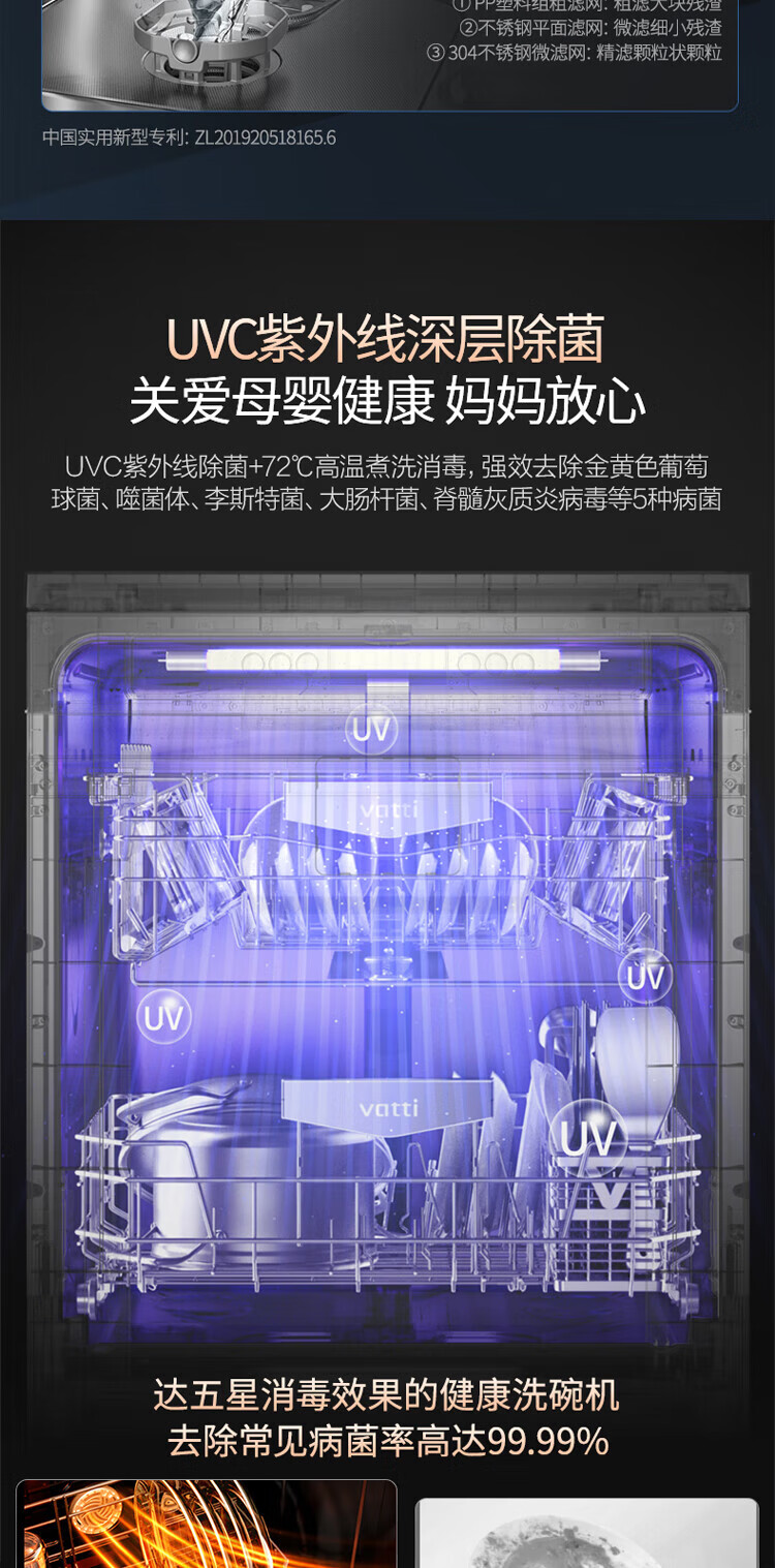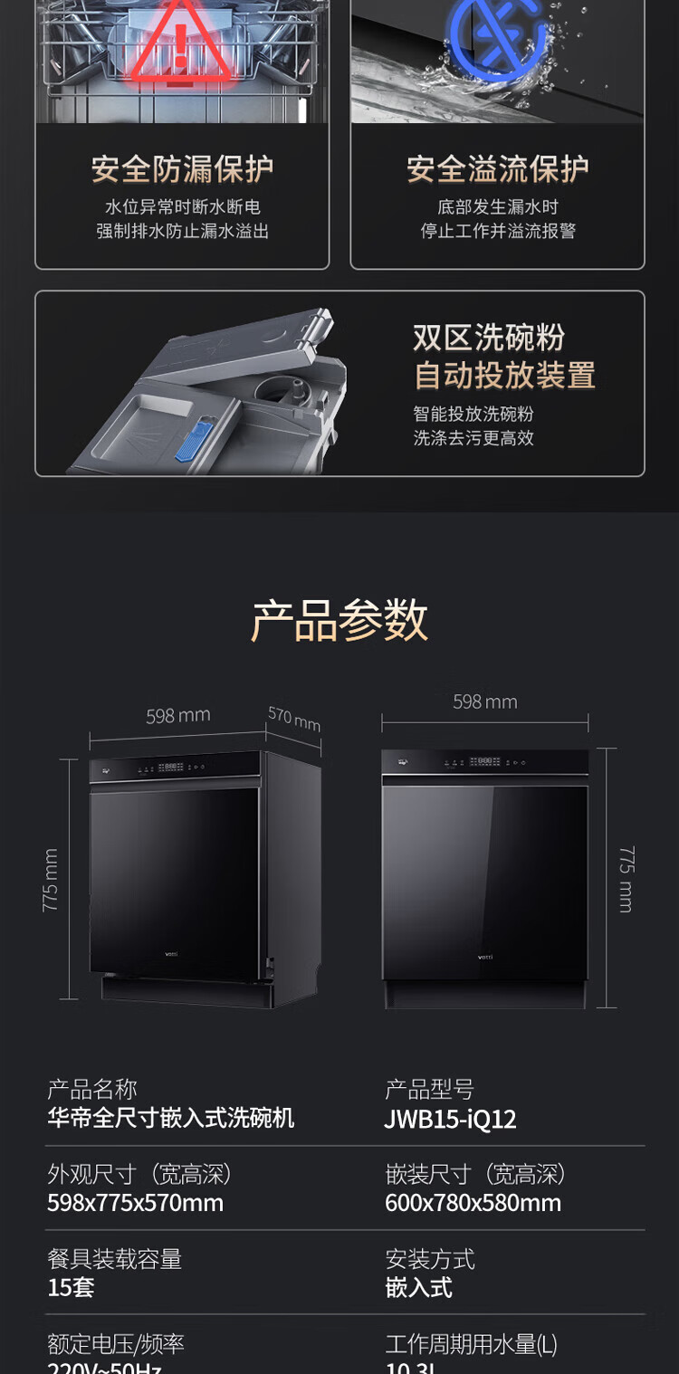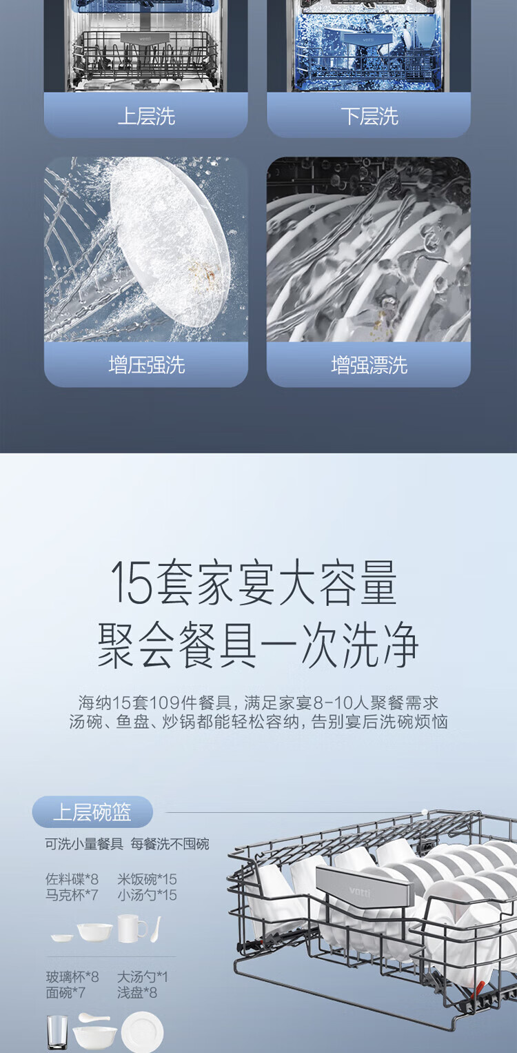 Vantage official dishwasher built-in 15 sets large-capacity spray-type first-class water efficiency high-temperature five-star disinfection 7-day long-lasting storage washing, disinfecting and drying in one White Moonlight washing, disinfecting and drying in one iQ15 single product