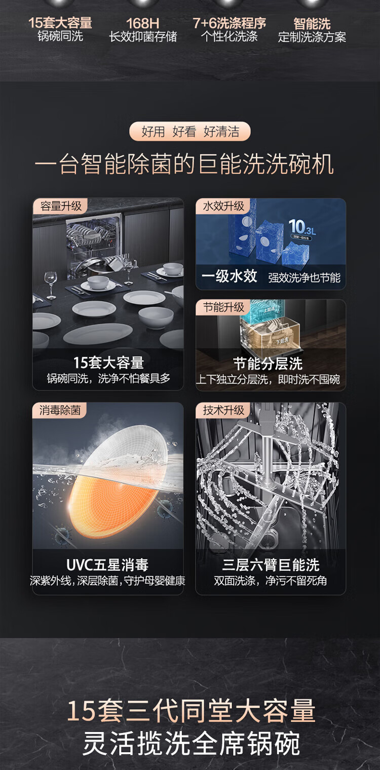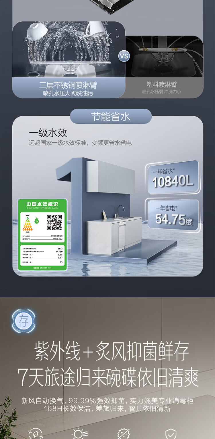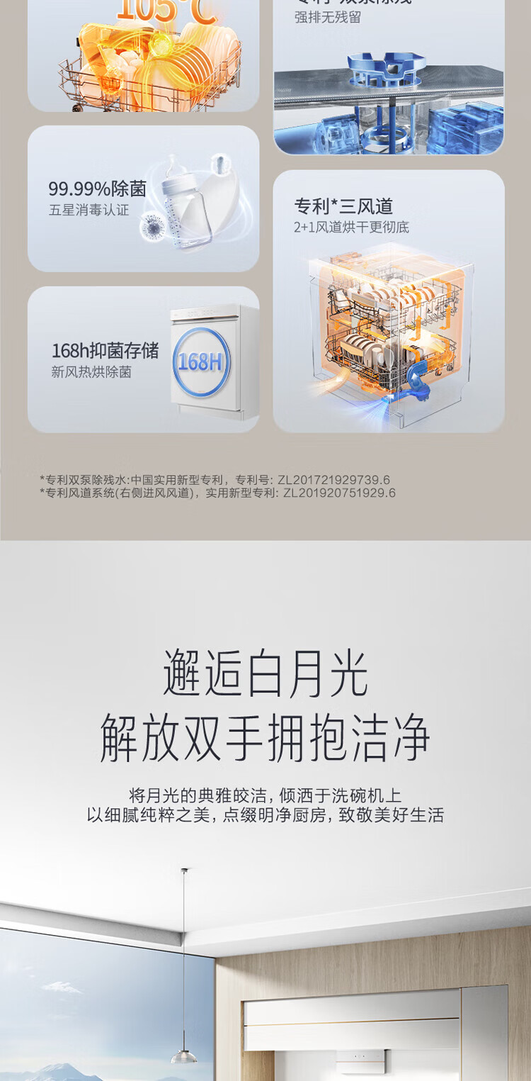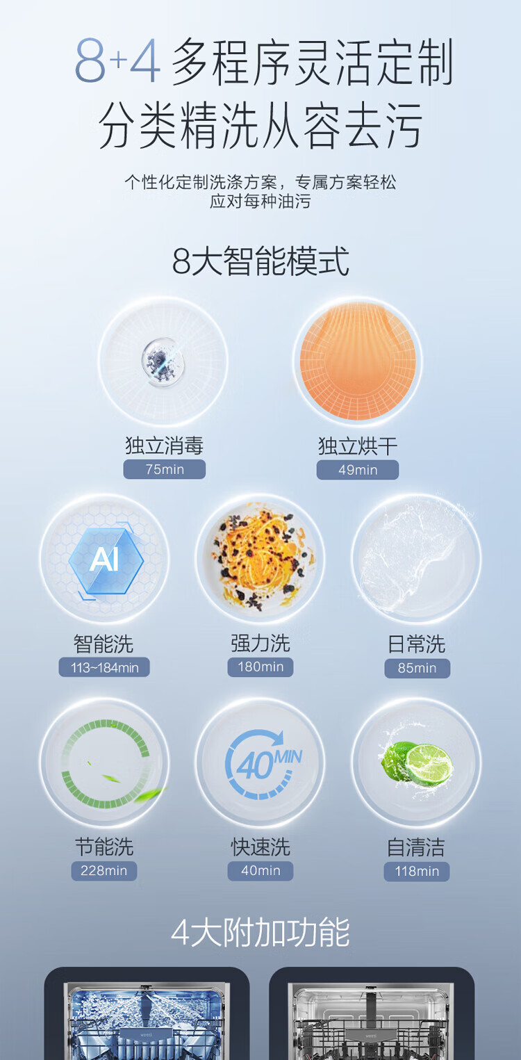 Vantage official dishwasher built-in 15 sets large-capacity spray-type first-class water efficiency high-temperature five-star disinfection 7-day long-lasting storage washing, disinfecting and drying in one White Moonlight washing, disinfecting and drying in one iQ15 single product