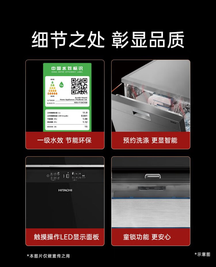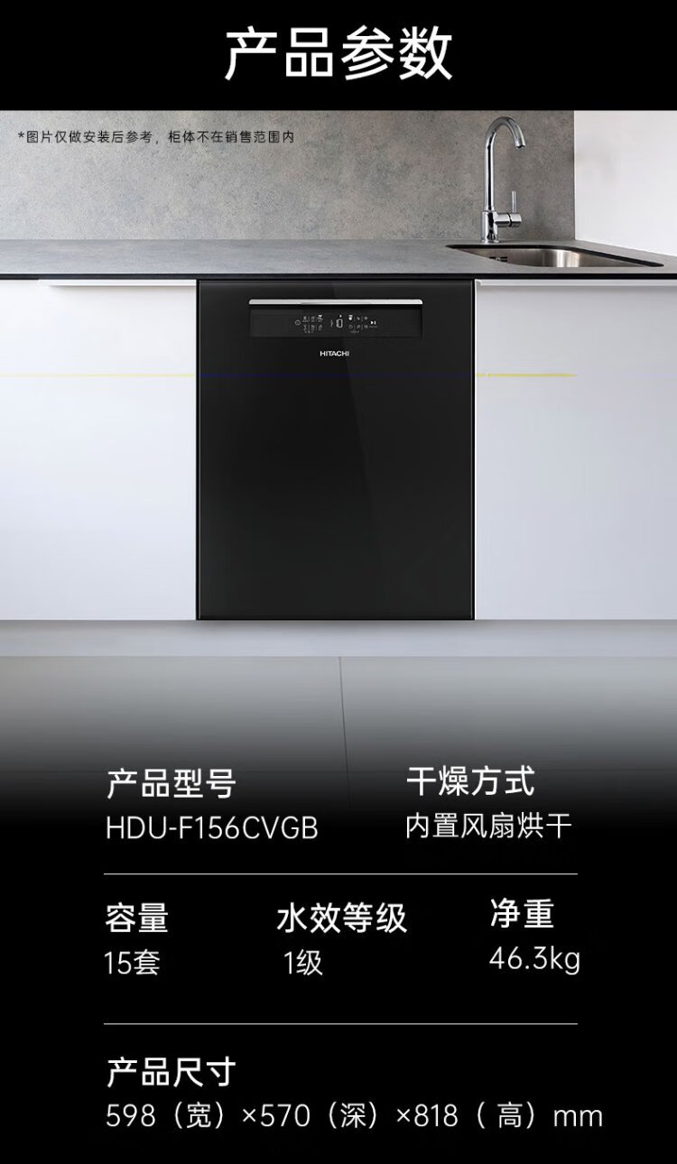Hitachi Dishwasher Large Capacity Fully Automatic Household Sterilization and Drying Frequency Conversion Level One Water Efficiency 15 Sets HDU-F156CVGB