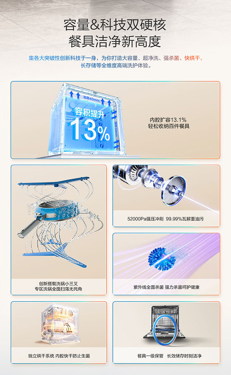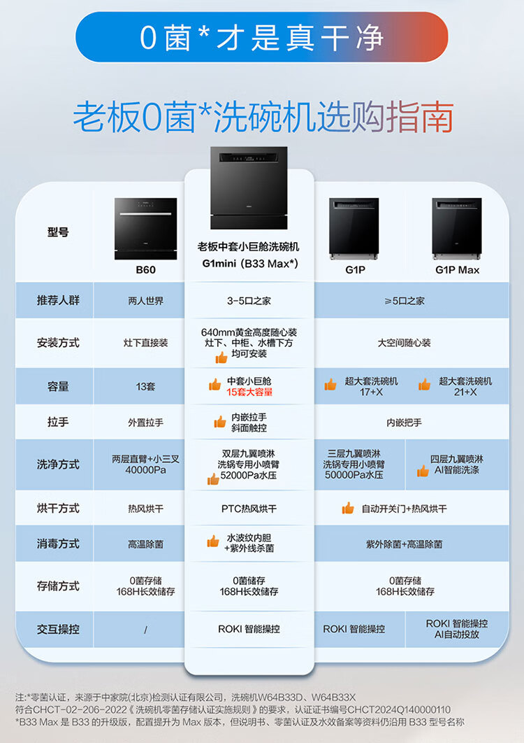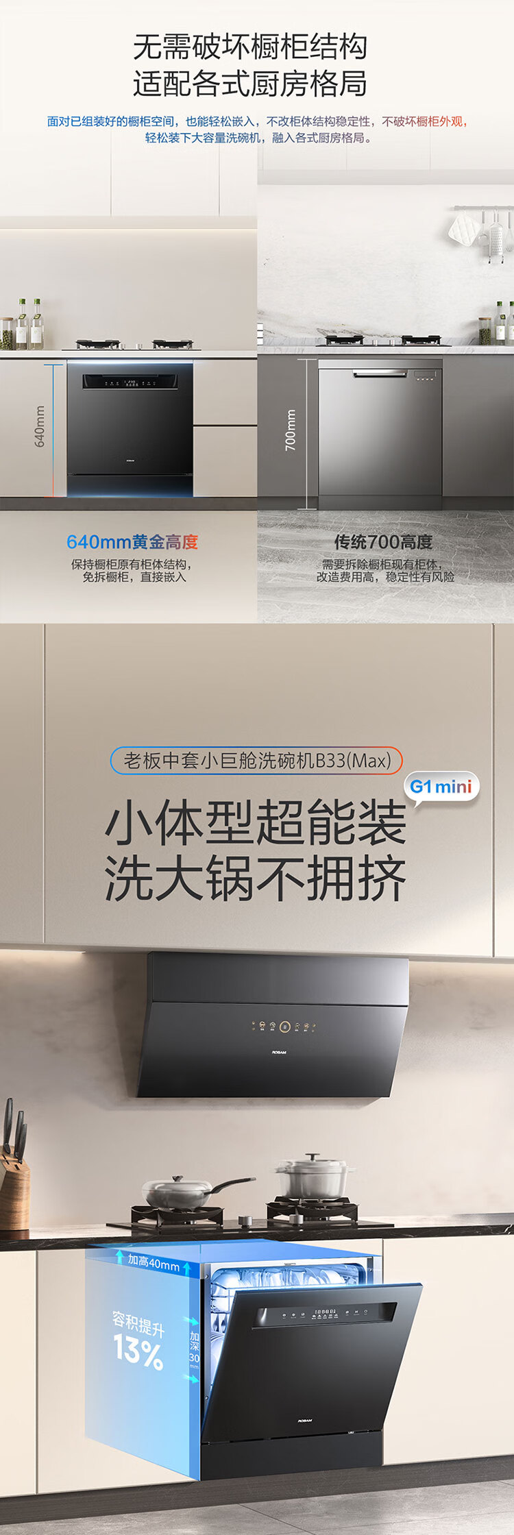 Robam G1mini dishwasher medium set small giant cabin B33X 15 sets large capacity embedded 0-bacteria UV sterilization hot air drying and disinfection all-in-one machine APP Zhilian 15 sets dishwasher