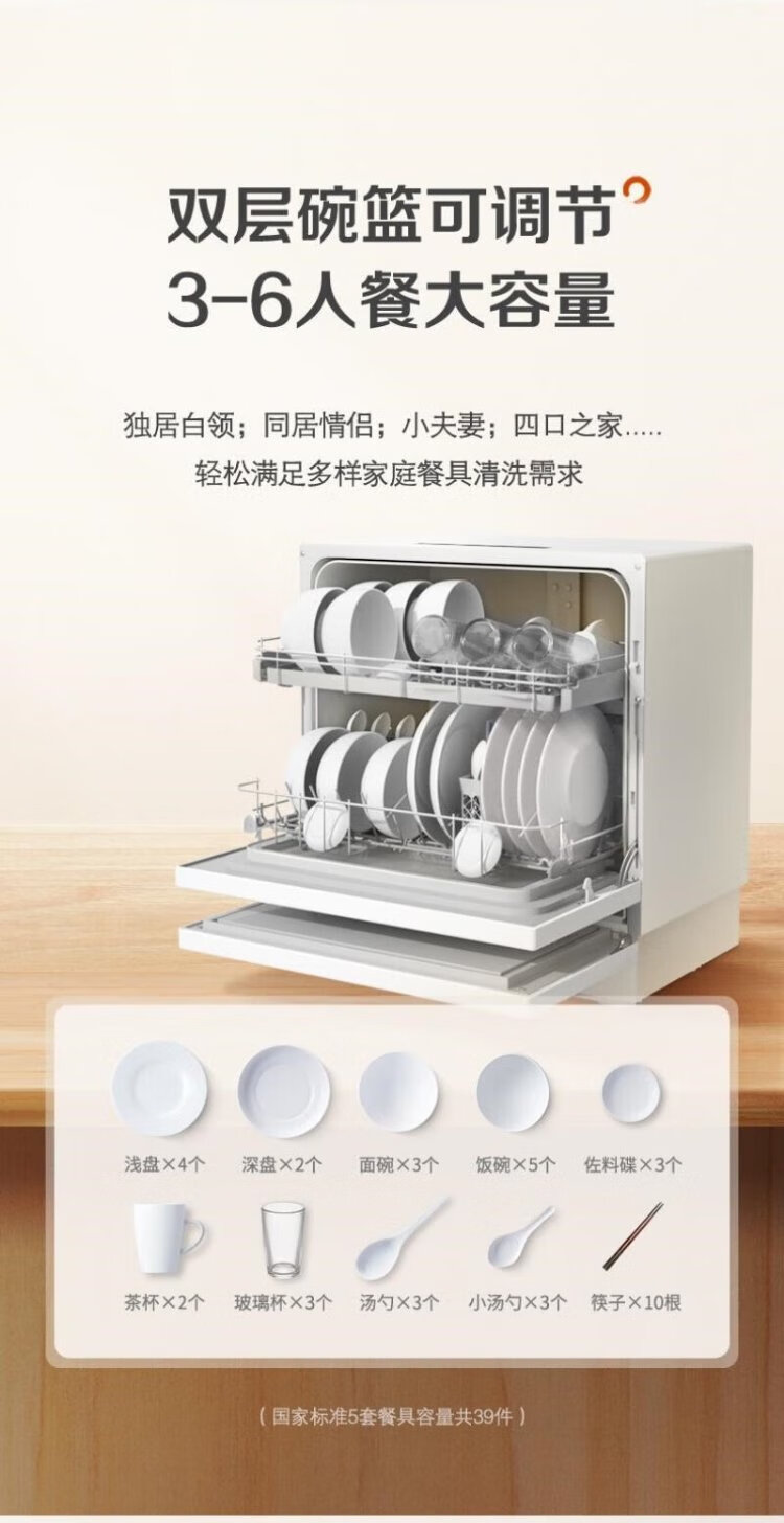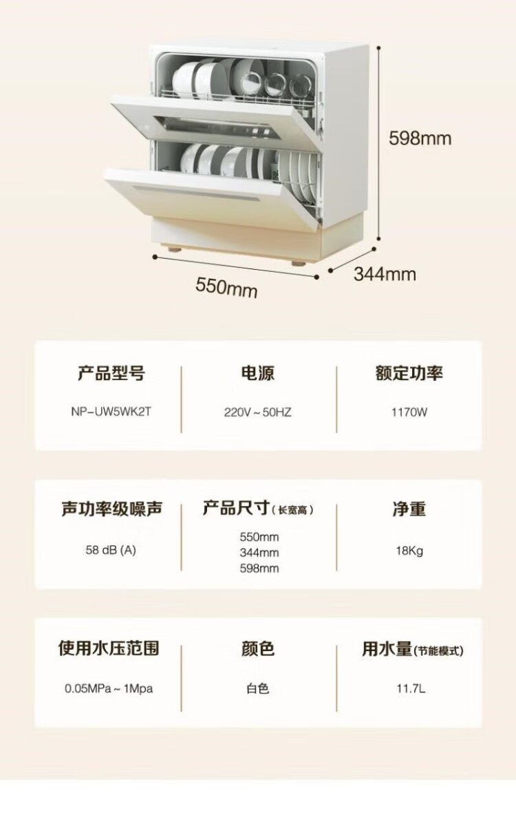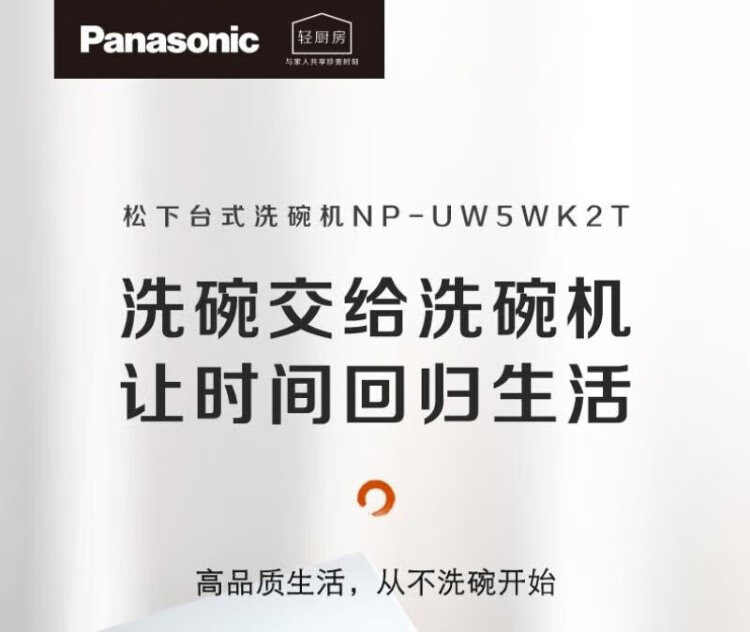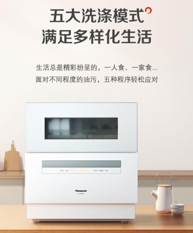 Panasonic dishwasher for home use, 5 sets, large capacity, high temperature sterilization, visual window, adjustable double-layer basket, air drying dishwasher, national subsidy, small footprint, NP-UW5WK2T (same model in stores)