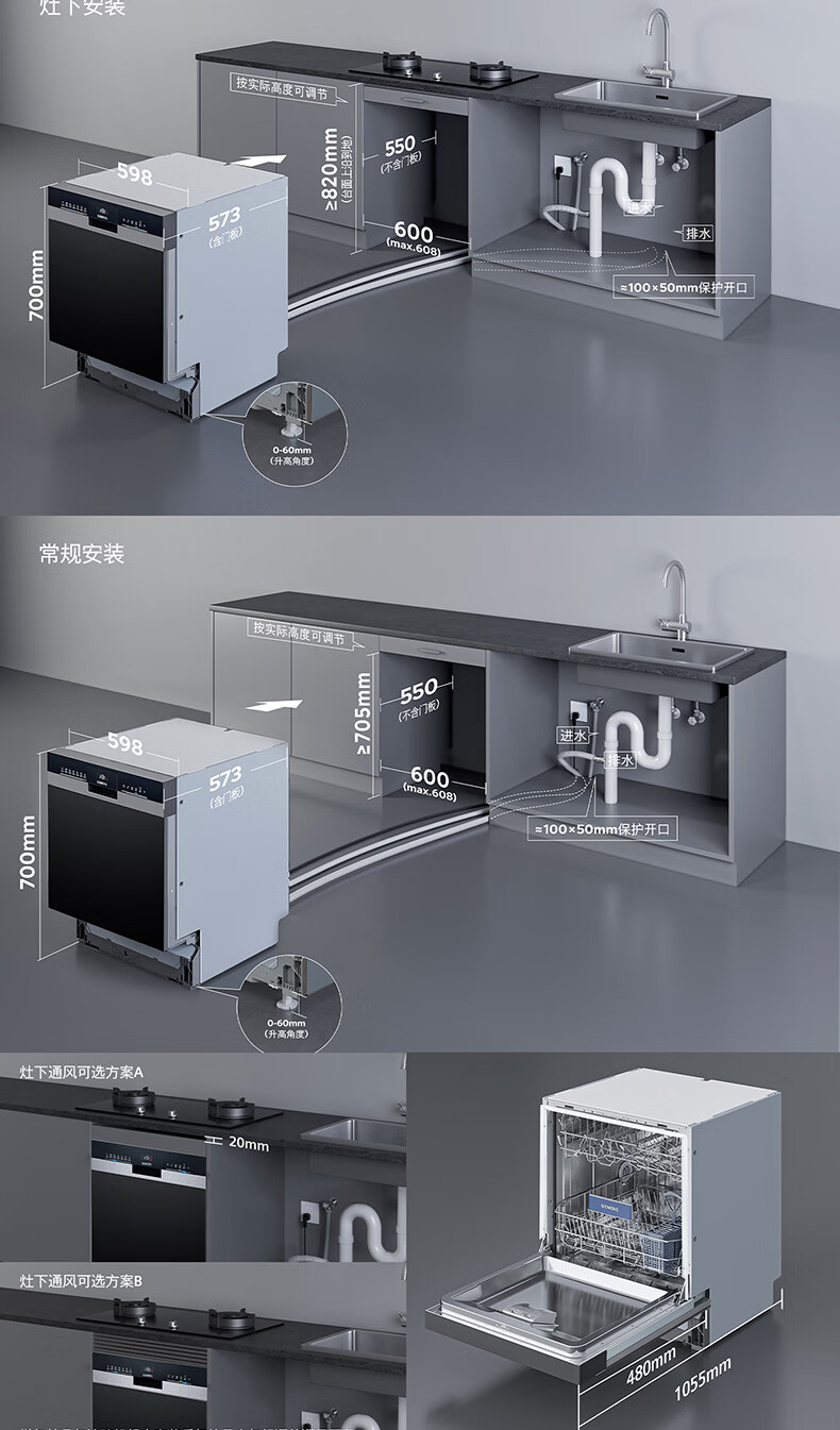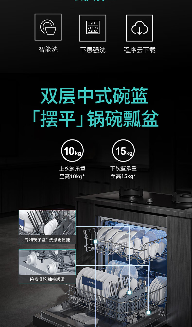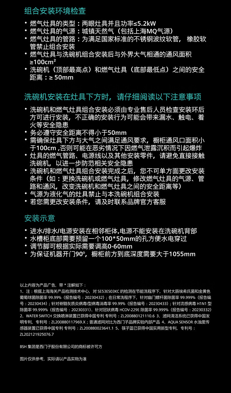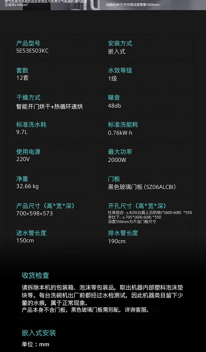 Siemens stove installed under the large inner cavity 12 sets of embedded dishwashers A flow disinfection high 700 small SE53ES03KC