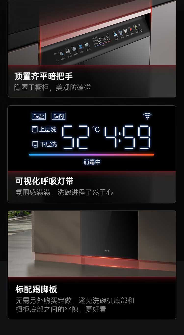 VATTI dishwasher Gemini new product National subsidy 20% independent dual-purpose embedded under the stove dishwasher official full-range washing and variable frequency five-star disinfection and drying super first-class water efficiency Gemini iD3000Max 18+2 sets of holographic color screen full-range dishwasher with integrated heating, drying and disinfection