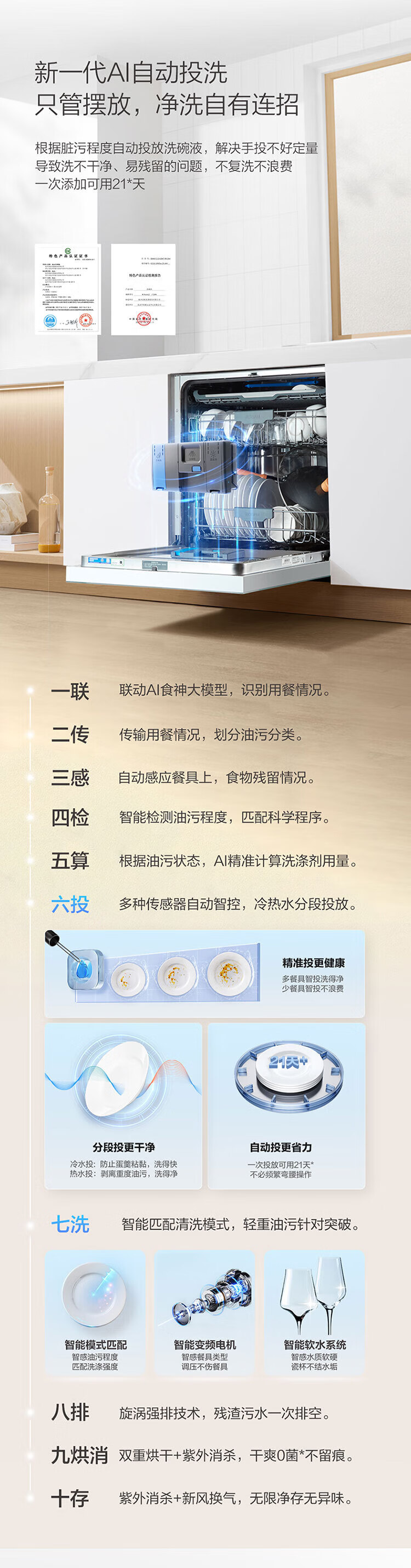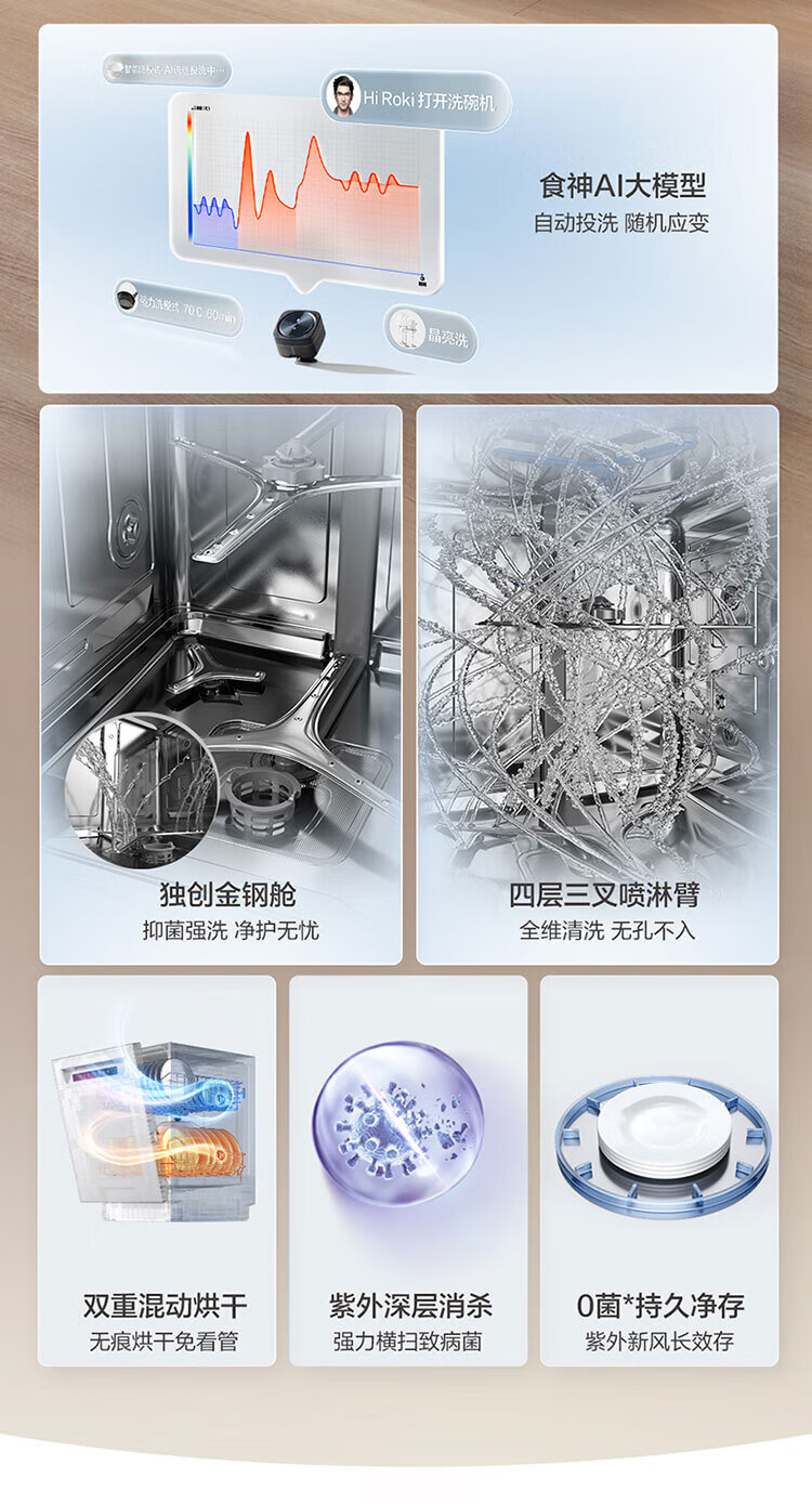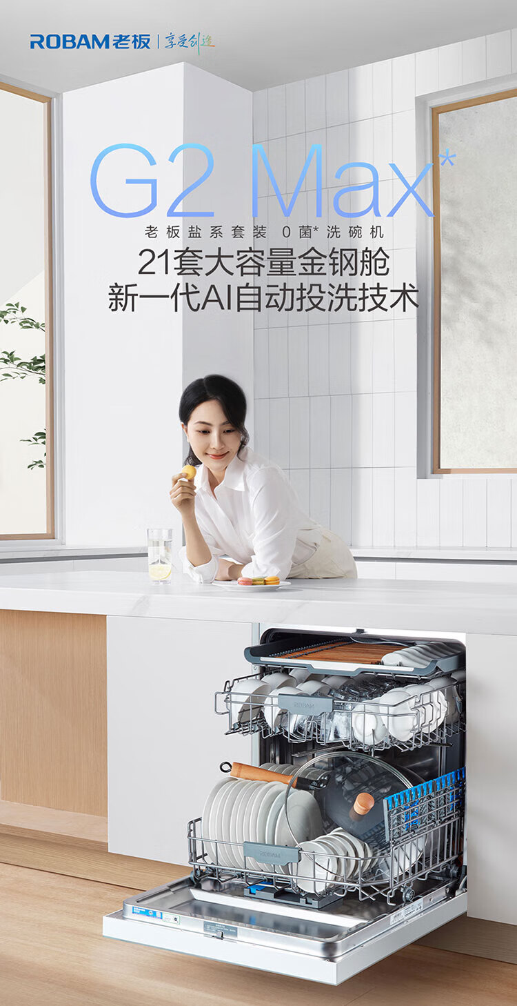 Robam’s 21-day smart wash service Salt system G2 dishwasher 21 sets + 3 built-in dishwashers National subsidies Automatic opening and closing doors Stainless steel spray arms Independent UV disinfection New products 21 sets of all-steel cabin Salt system G2 automatic opening and closing doors Automatic delivery