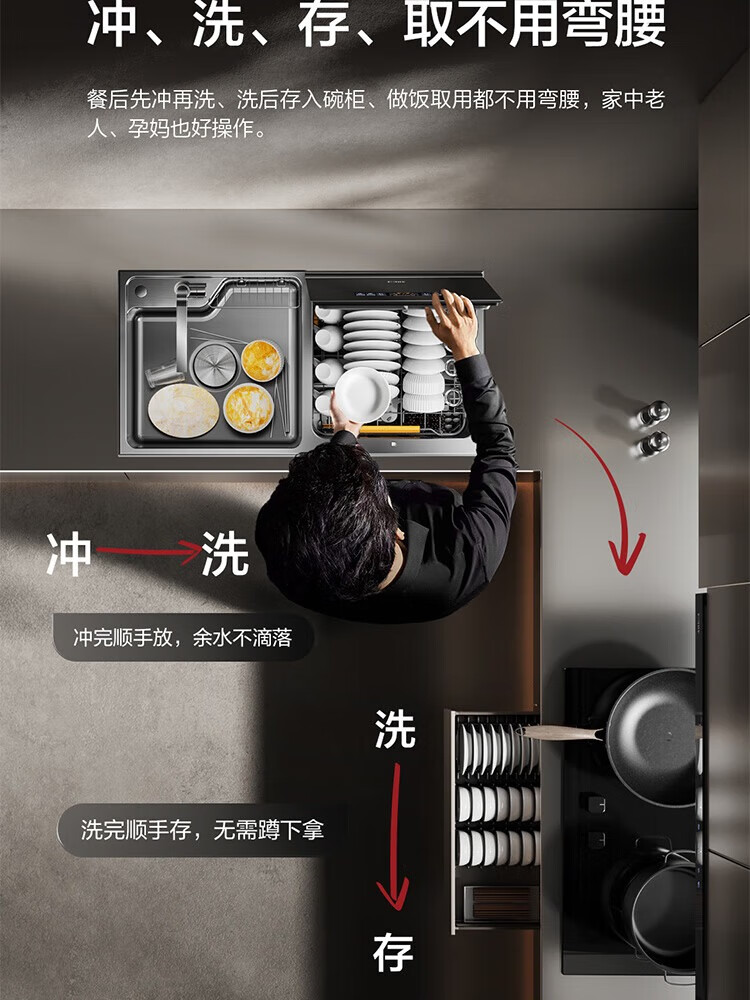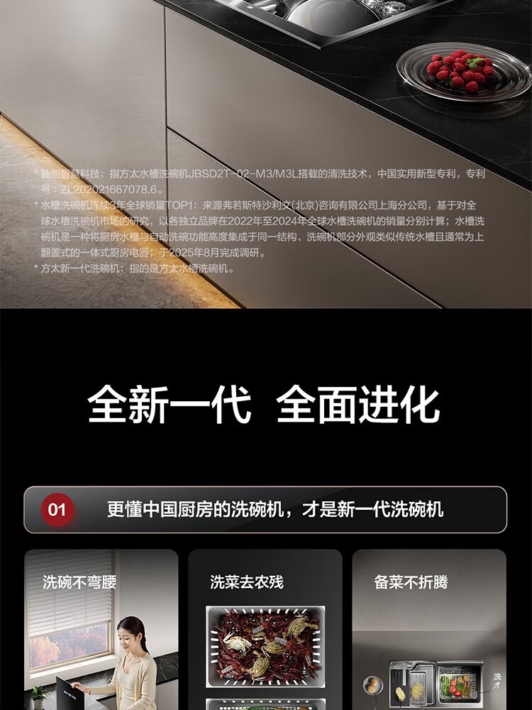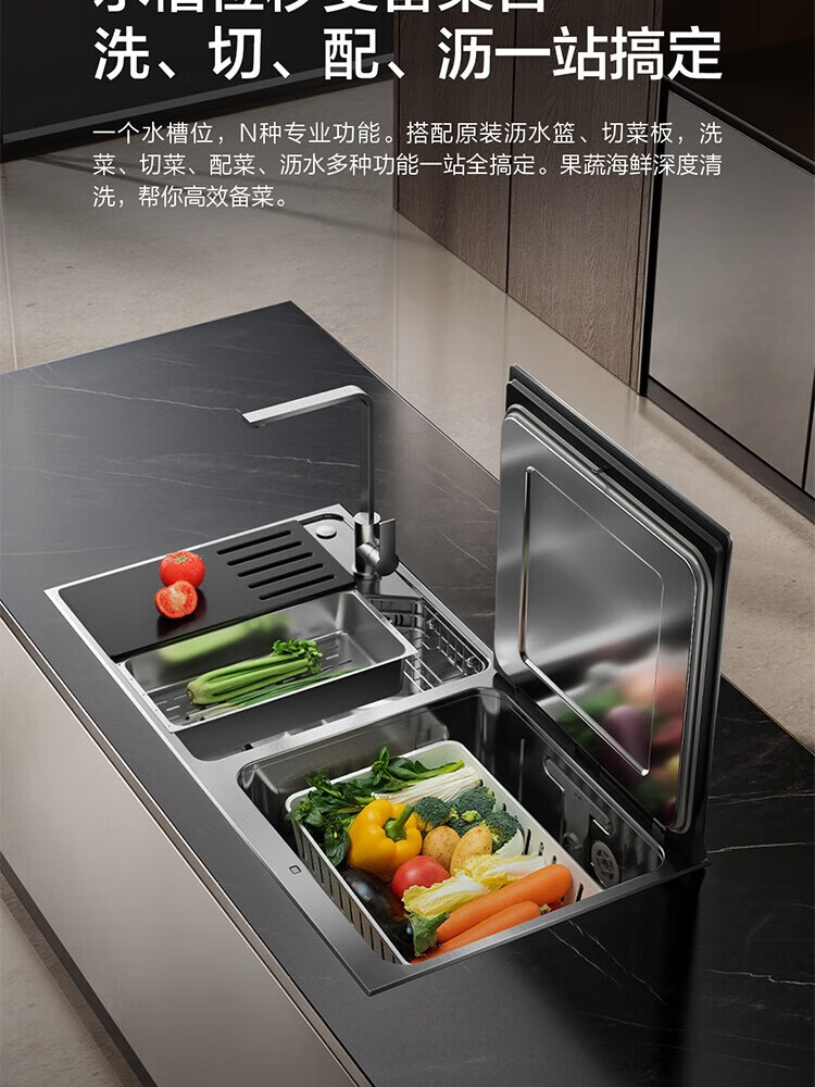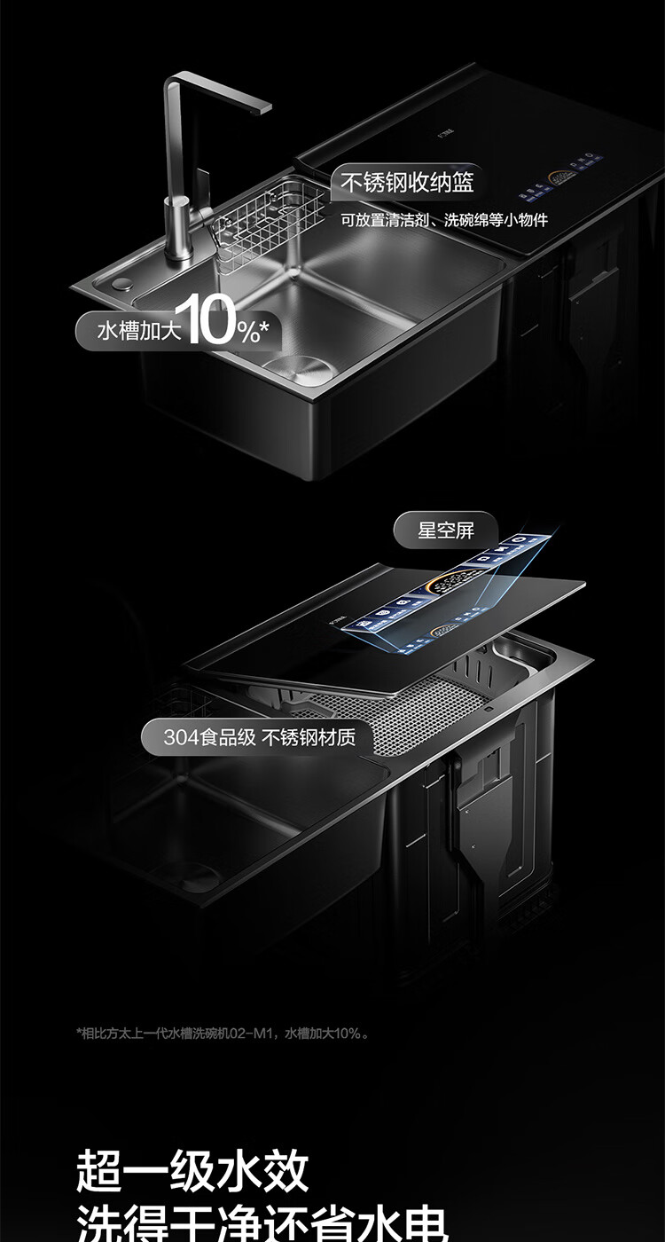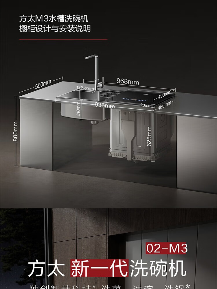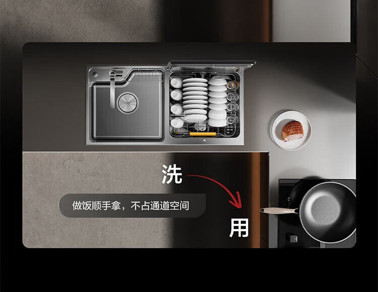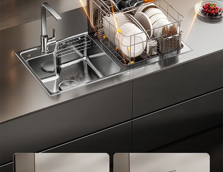 FOTILE FOTILE 02-M3 sink dishwasher with double-layered washable pots for more flexible access without bending over to wash seafood, fruit and vegetable residues, water forced drainage, stainless steel sink, integrated 10 sets, dishwasher on the right 02-M3 (10 sets)