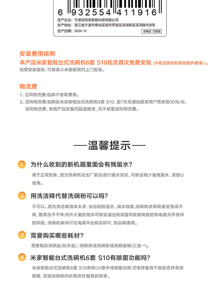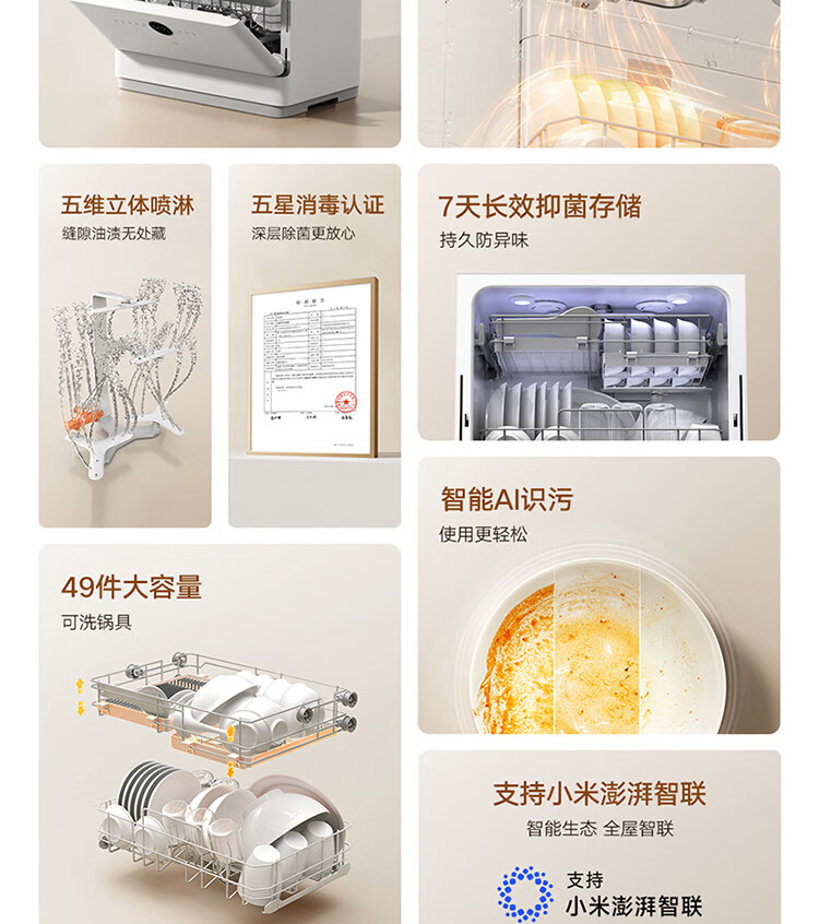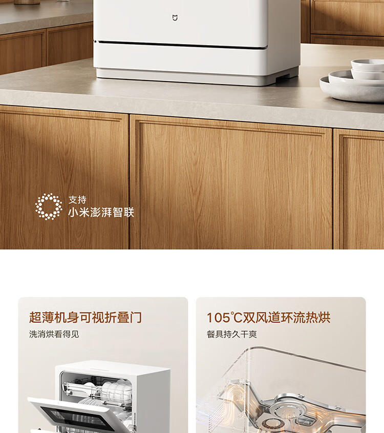 Mijia Xiaomi Dishwasher 6 Sets S10 Desktop Dishwasher for Household Maternal and Infant Washing with Visual Disinfection 105 Hot Air Drying Intelligent Dirt Recognition APP Control Mijia Smart Desktop Dishwasher 6 Sets S10